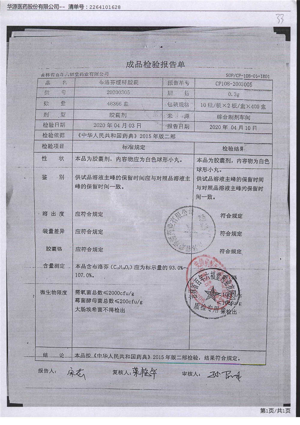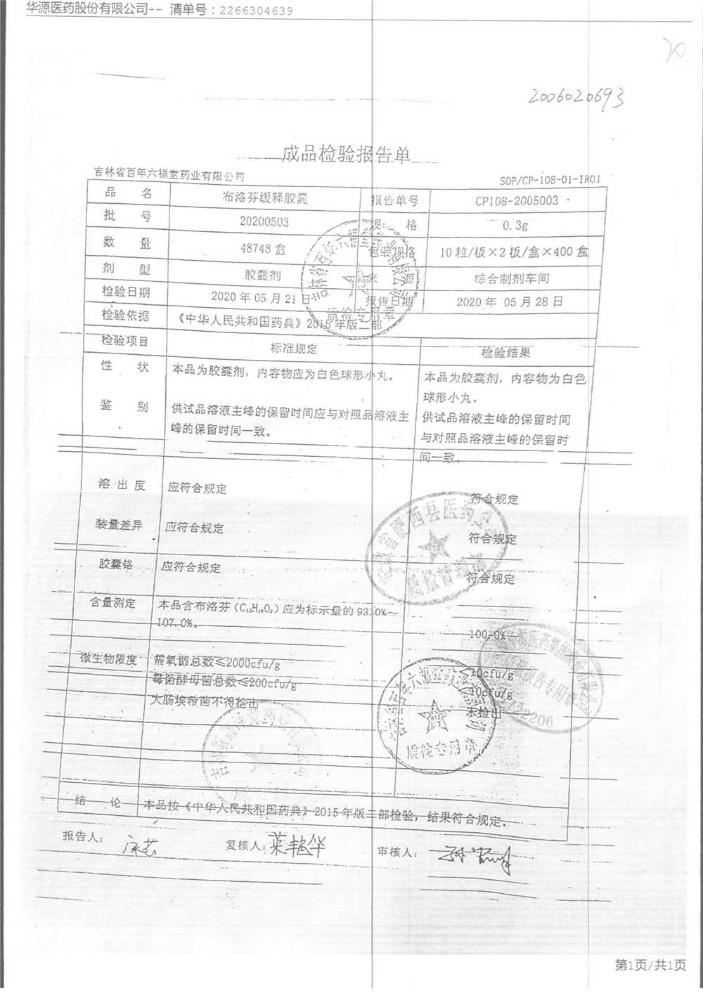 | 布洛芬緩釋膠囊 | 0.3g*12s | 20200503 | 查看詳情 |