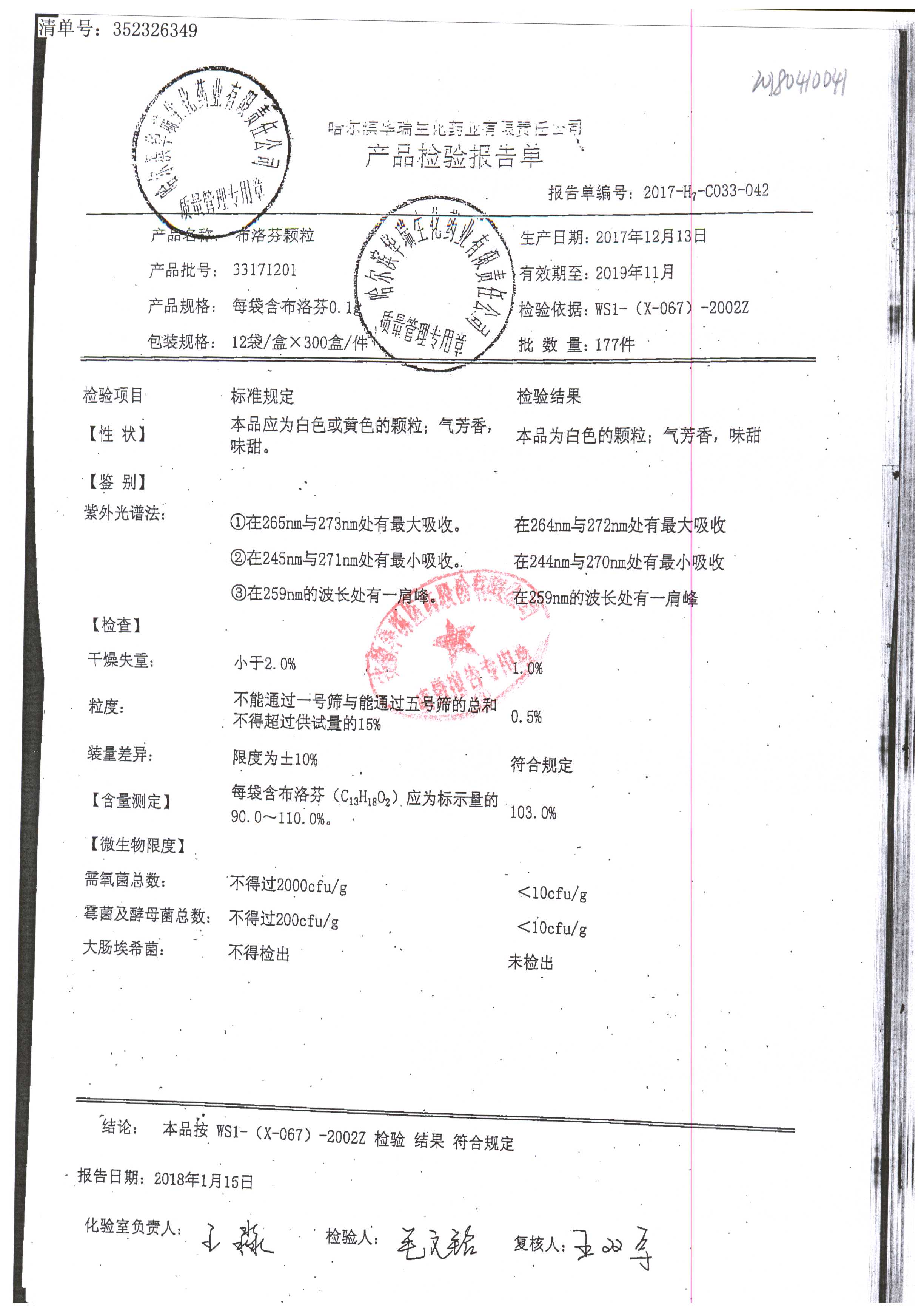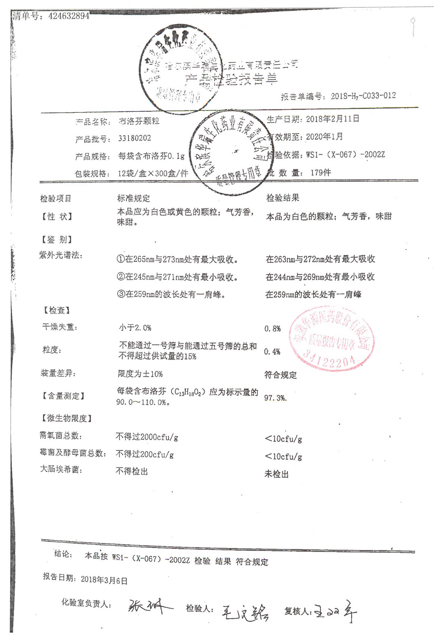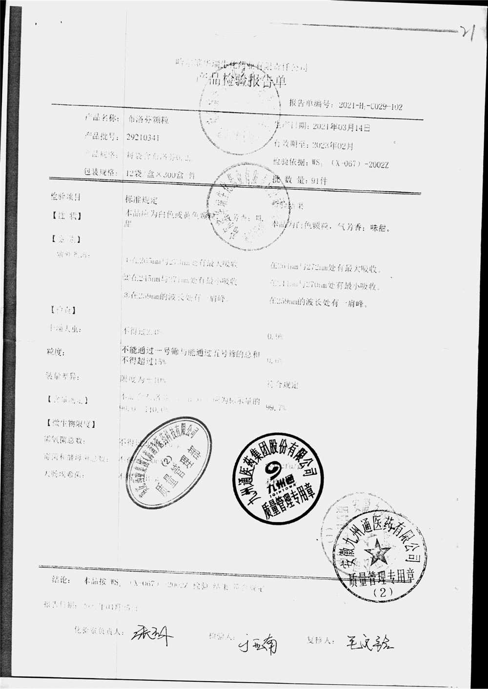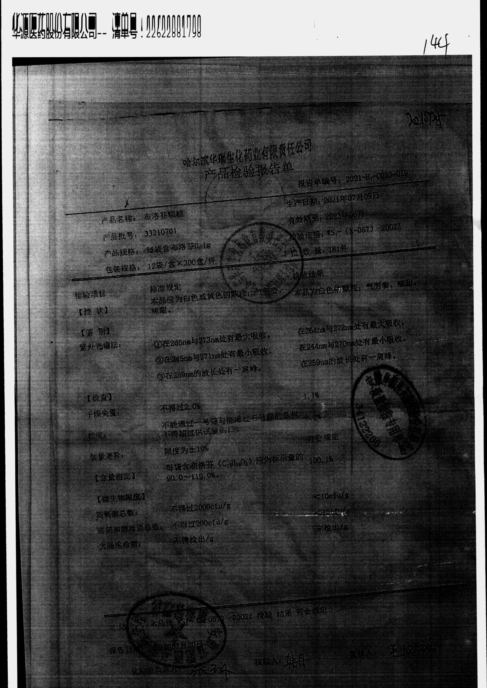 | 名稱 | 規(guī)格 | 批號 | 藥檢報告 |