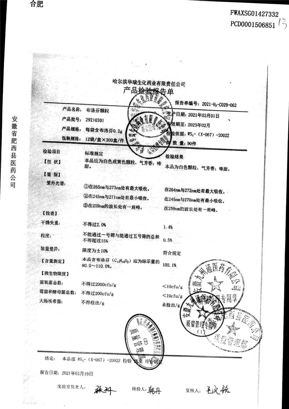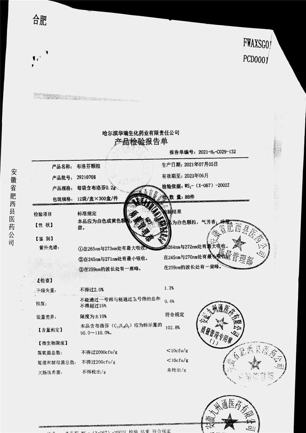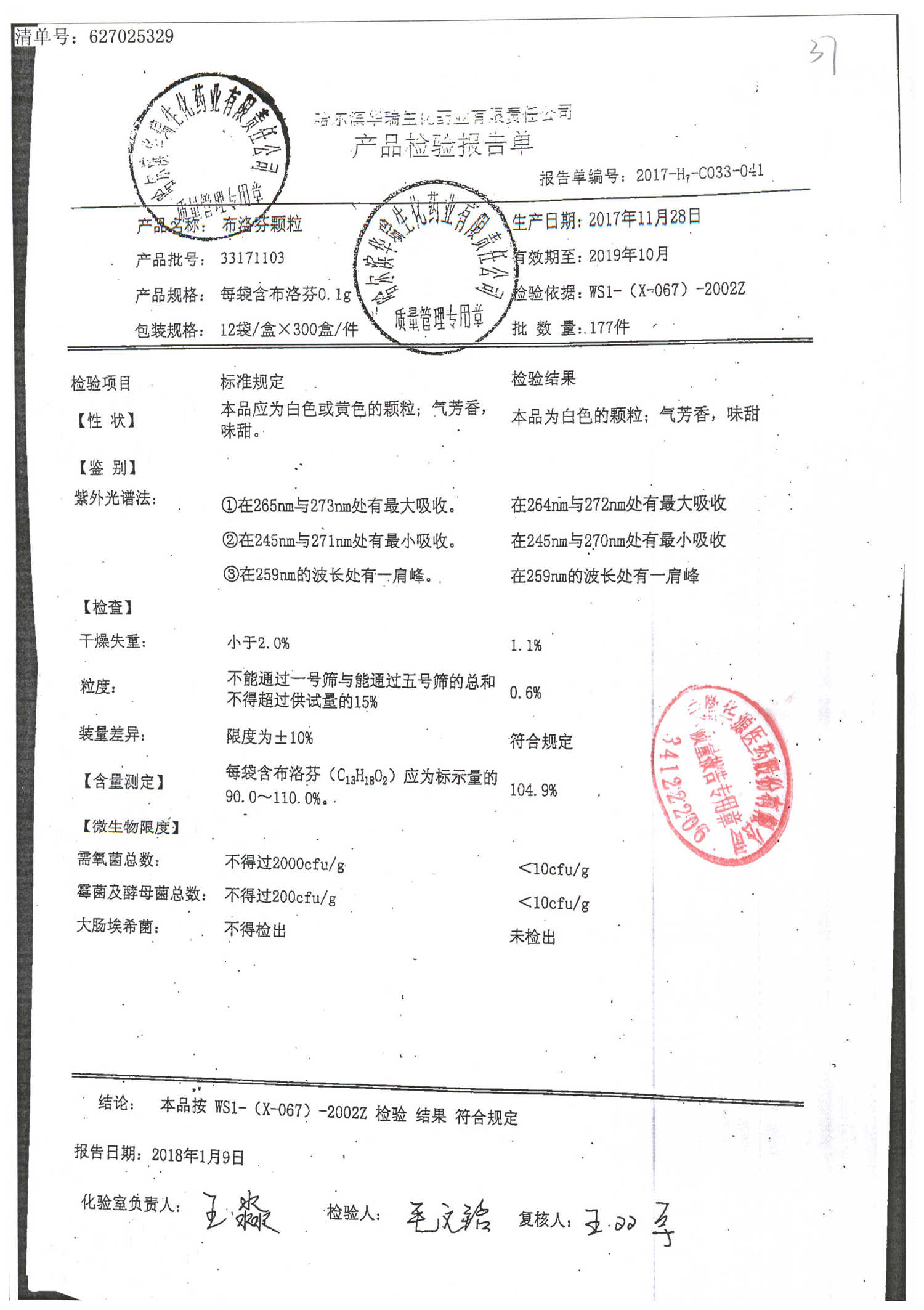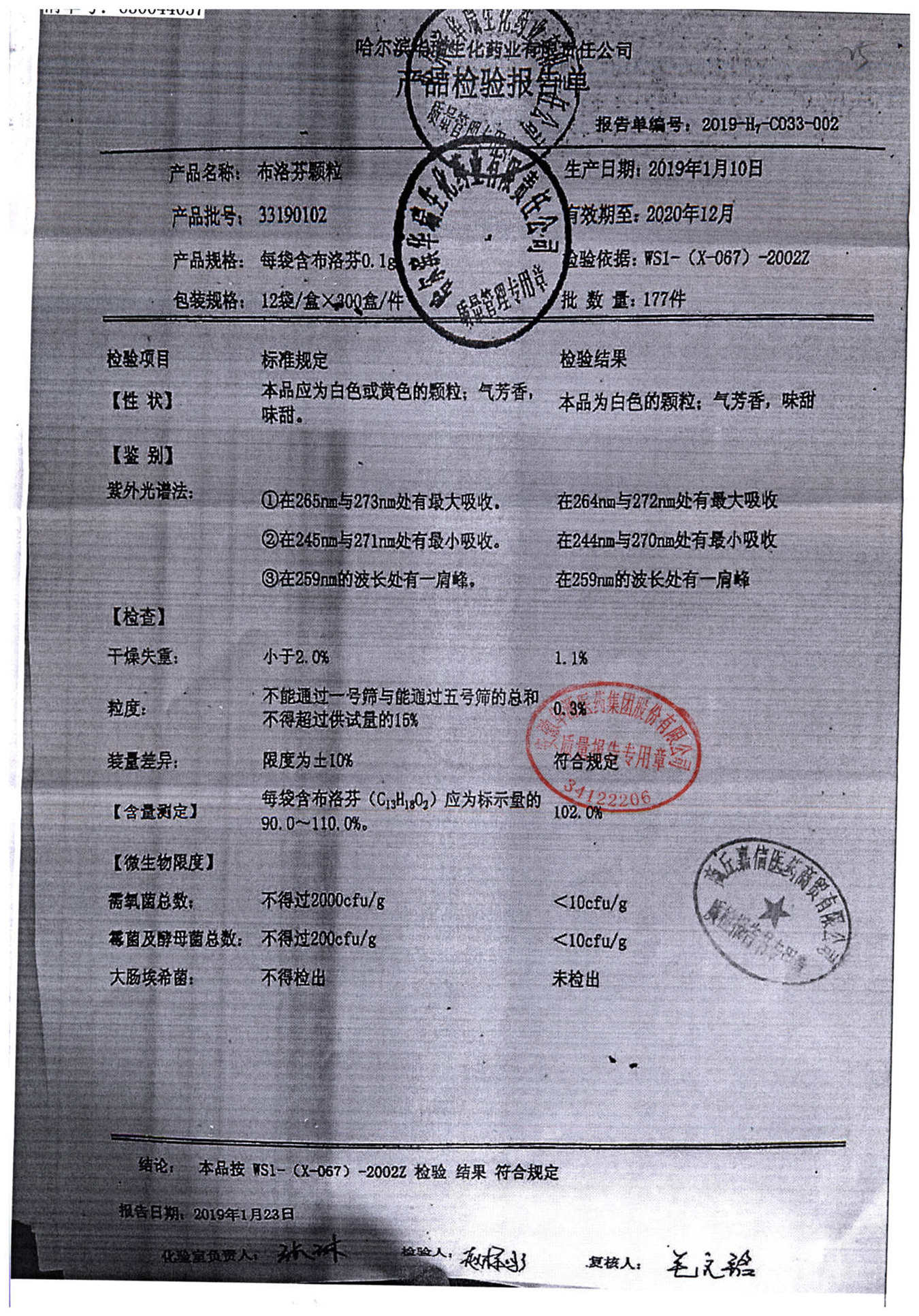 | 名稱 | 規(guī)格 | 批號 | 藥檢報告 |