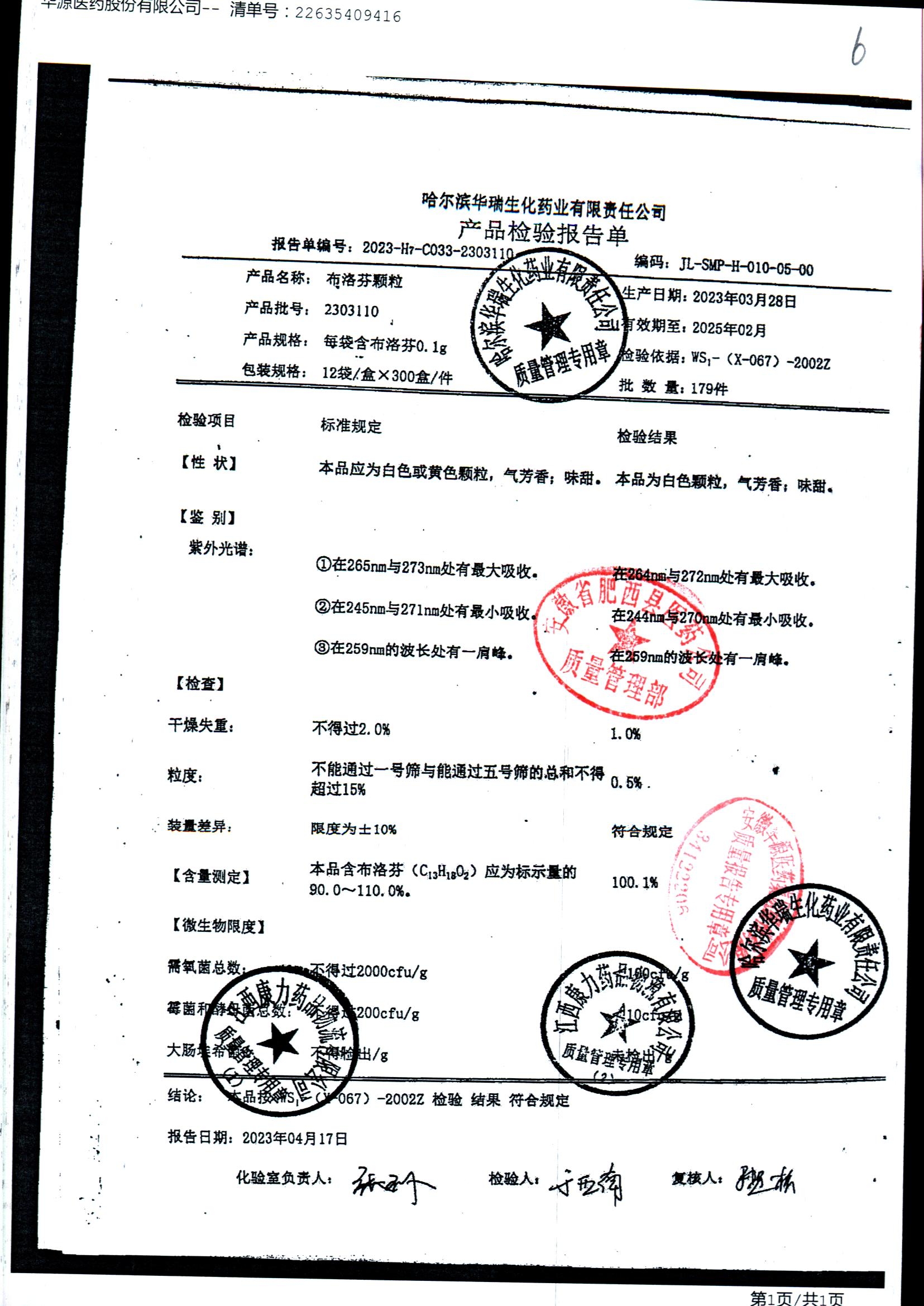 | 布洛芬顆粒 | 0.1g*12袋 | 29210301 | 查看詳情 |