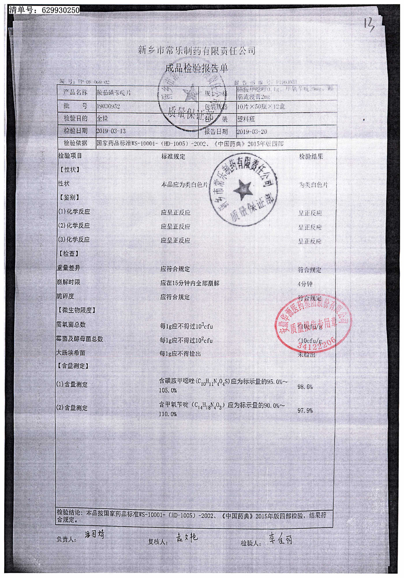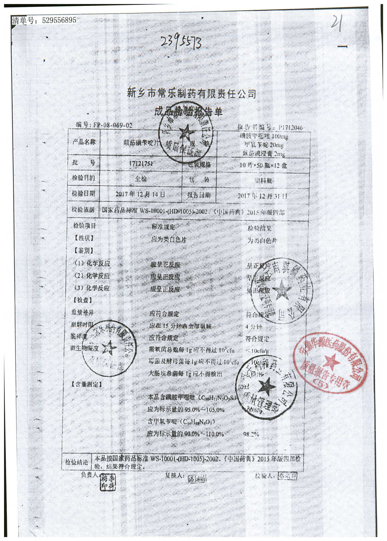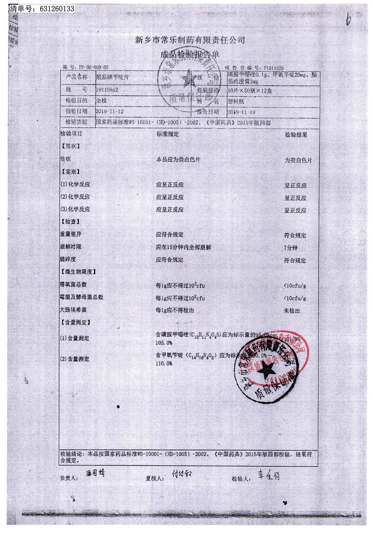 | 名稱 | 規(guī)格 | 批號 | 藥檢報告 |