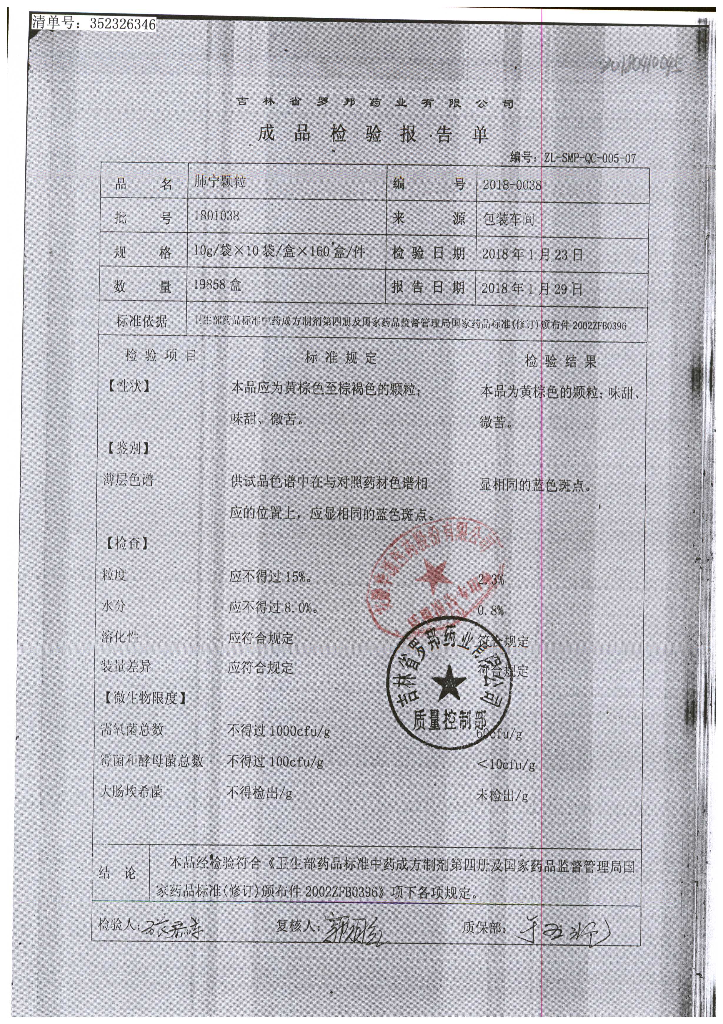 | 肺寧顆粒 | 10g*10袋 | 1801038 | 查看詳情 |