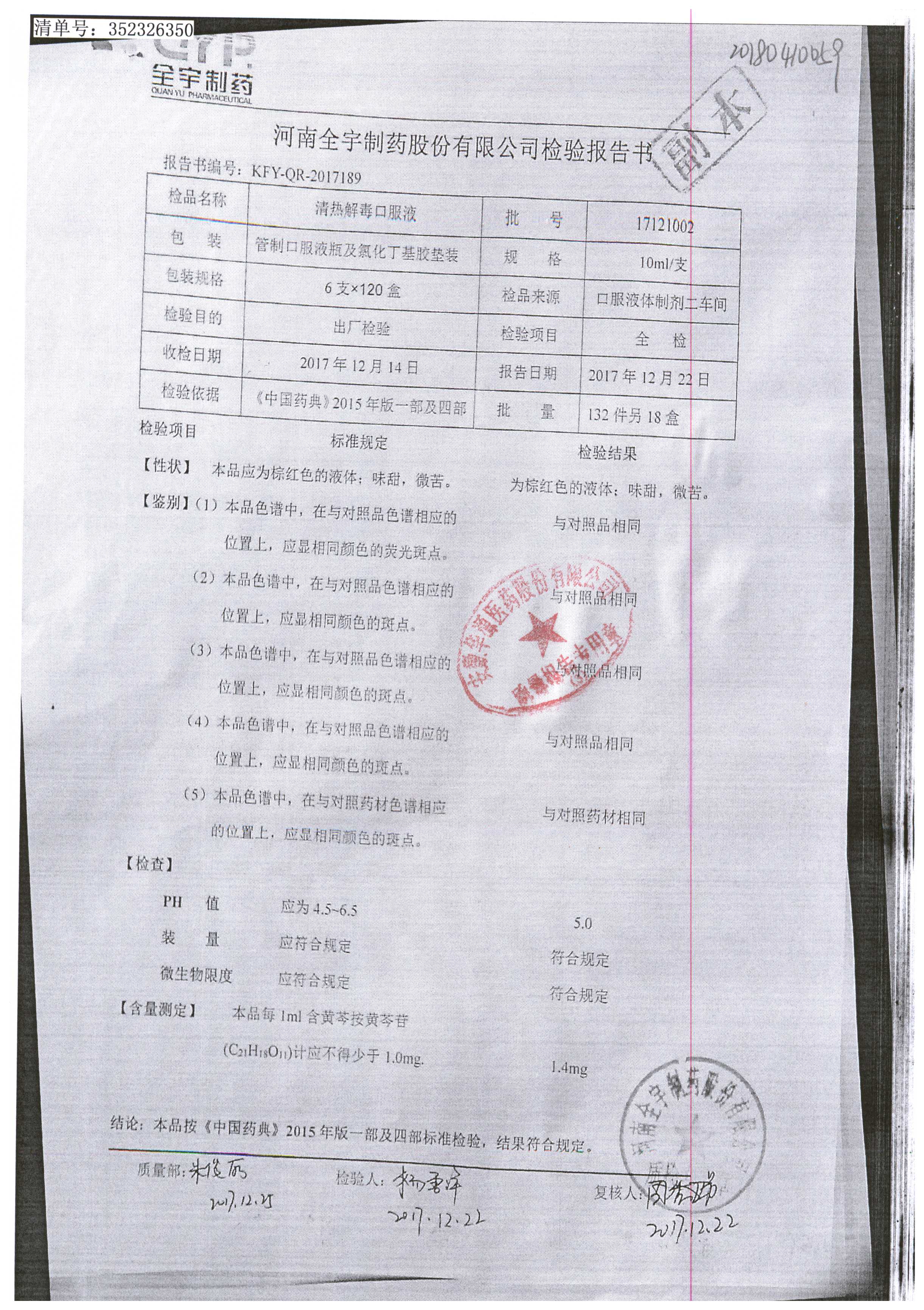 名稱 規(guī)格 批號 藥檢報告
