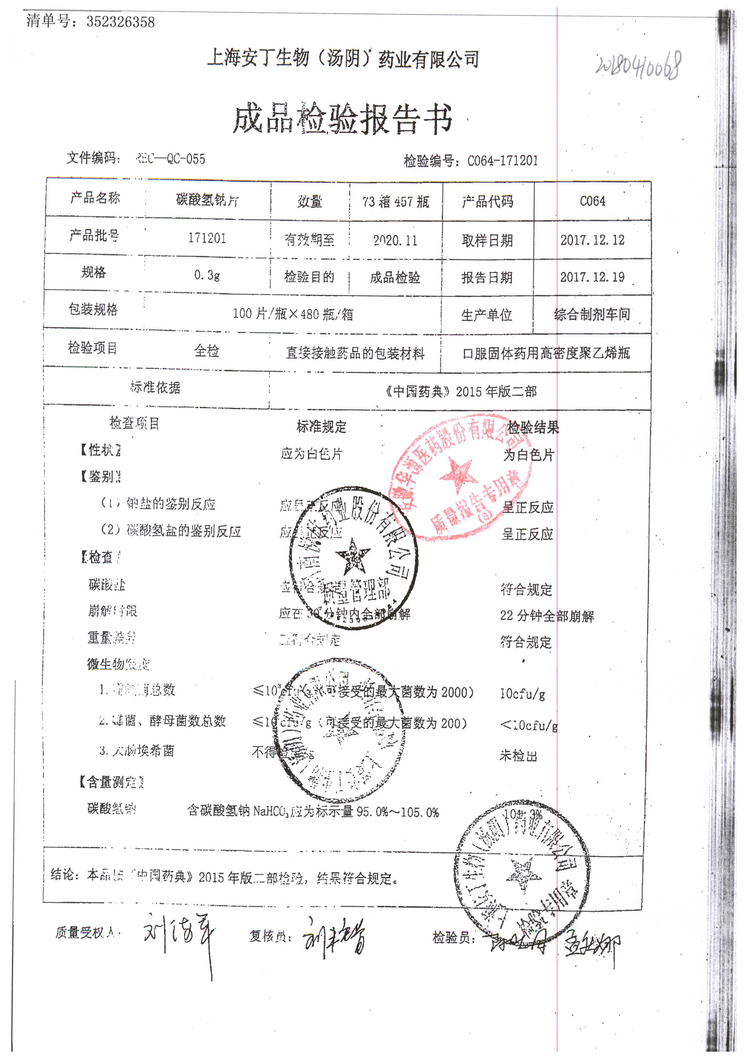 | 碳酸氫鈉片 | 0.3g*100片 | 180601 | 查看詳情 |
