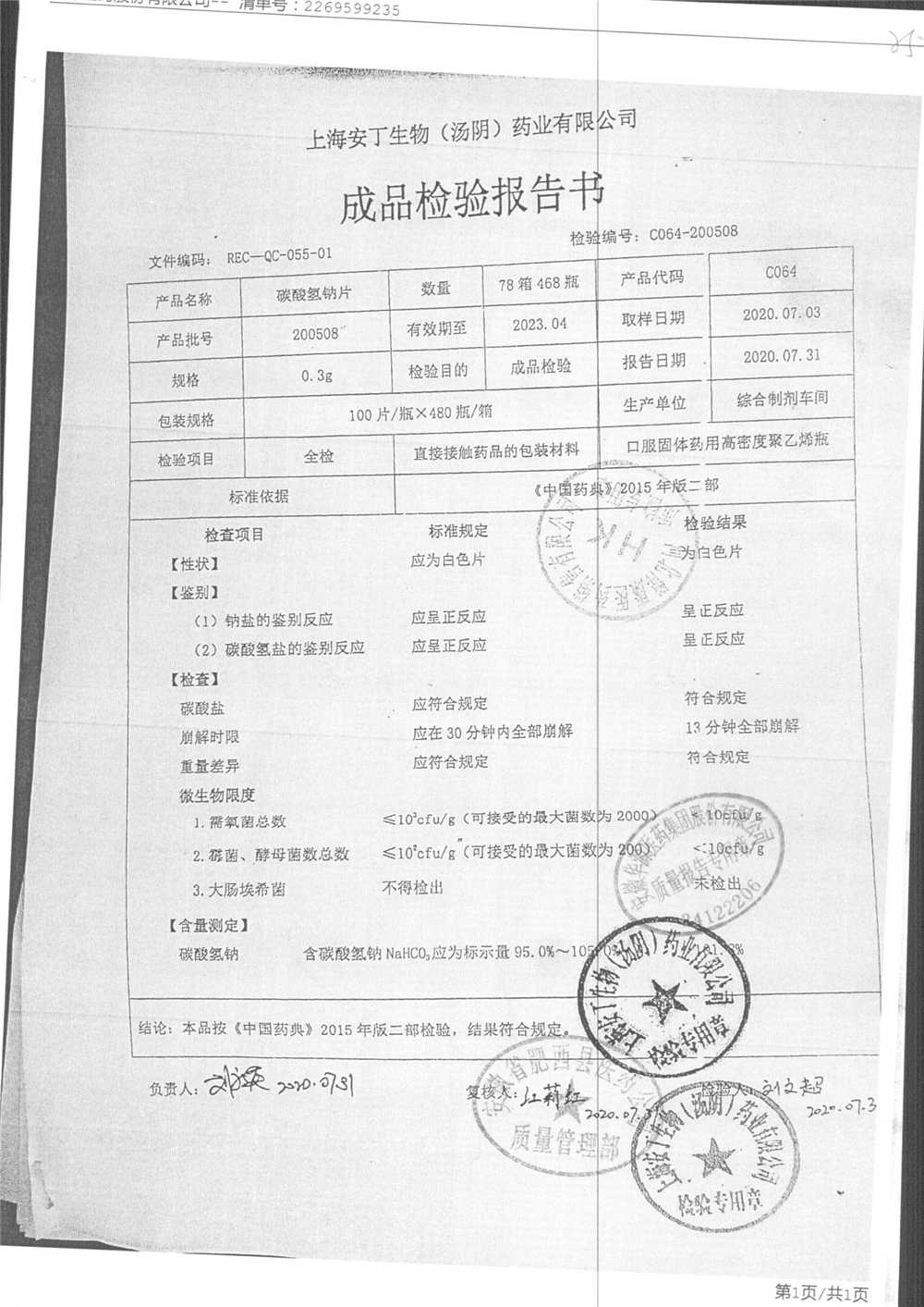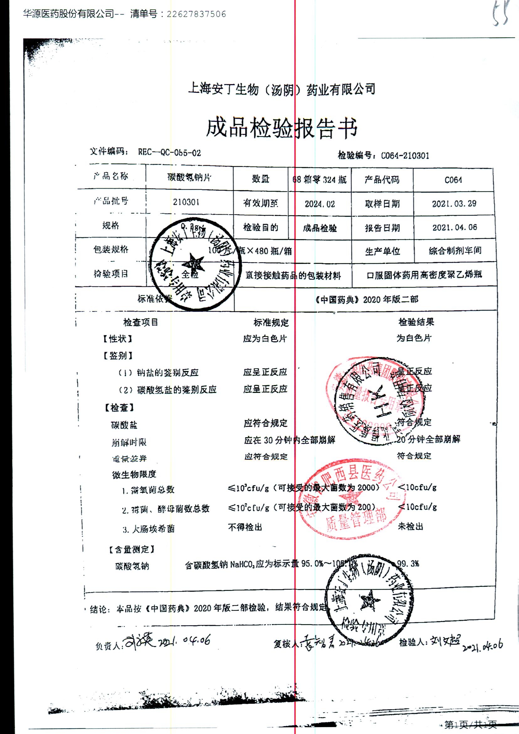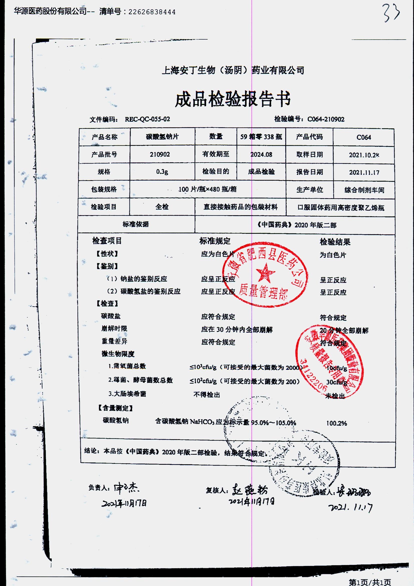 | 碳酸氫鈉片 | 0.3g*100片 | 210301 | 查看詳情 |