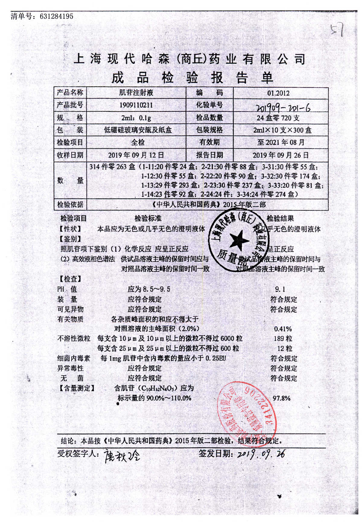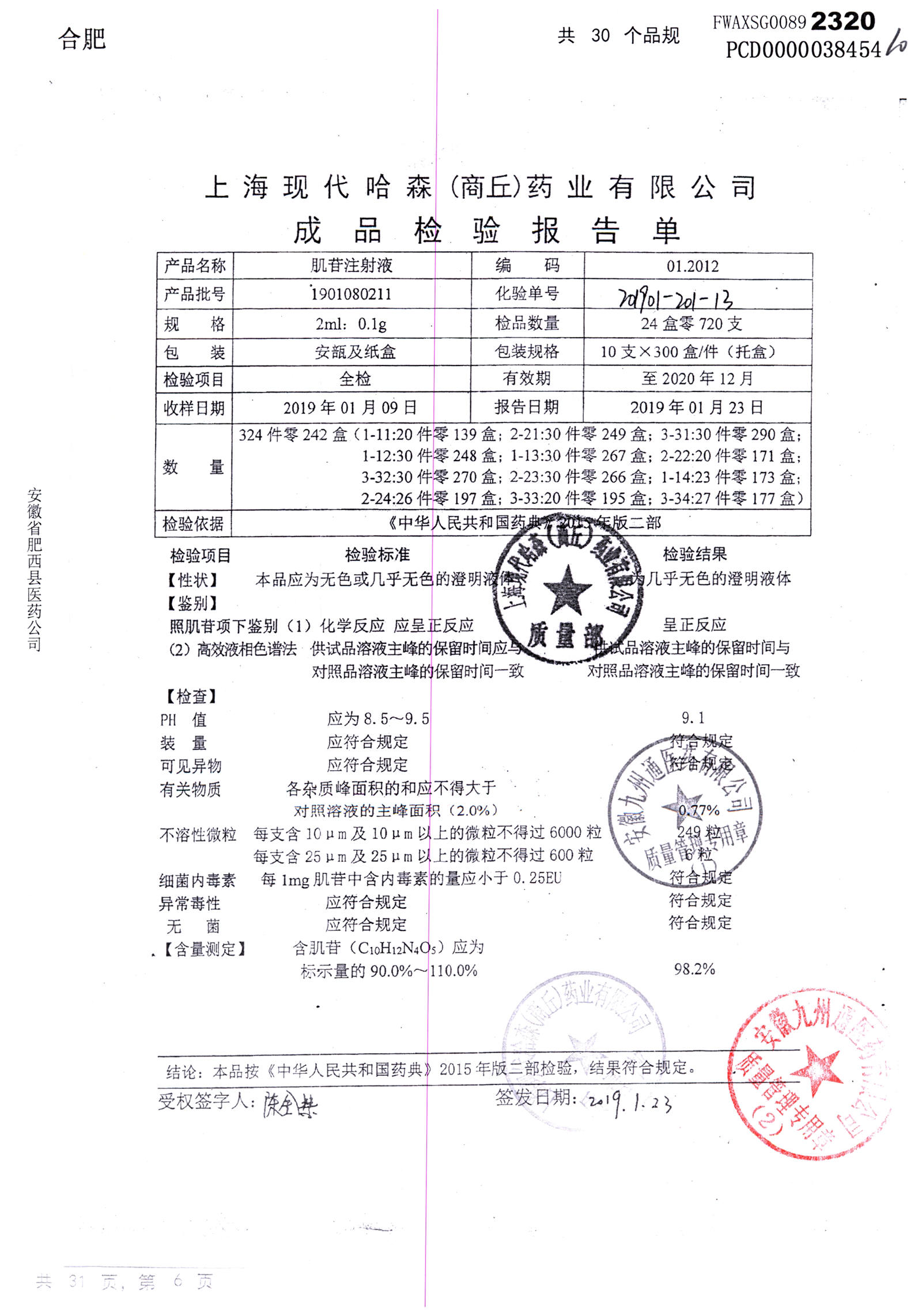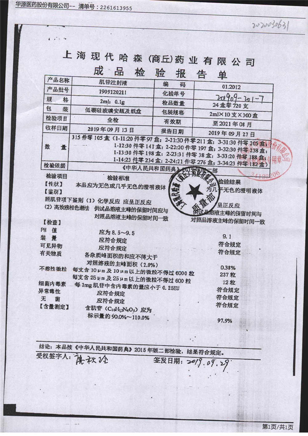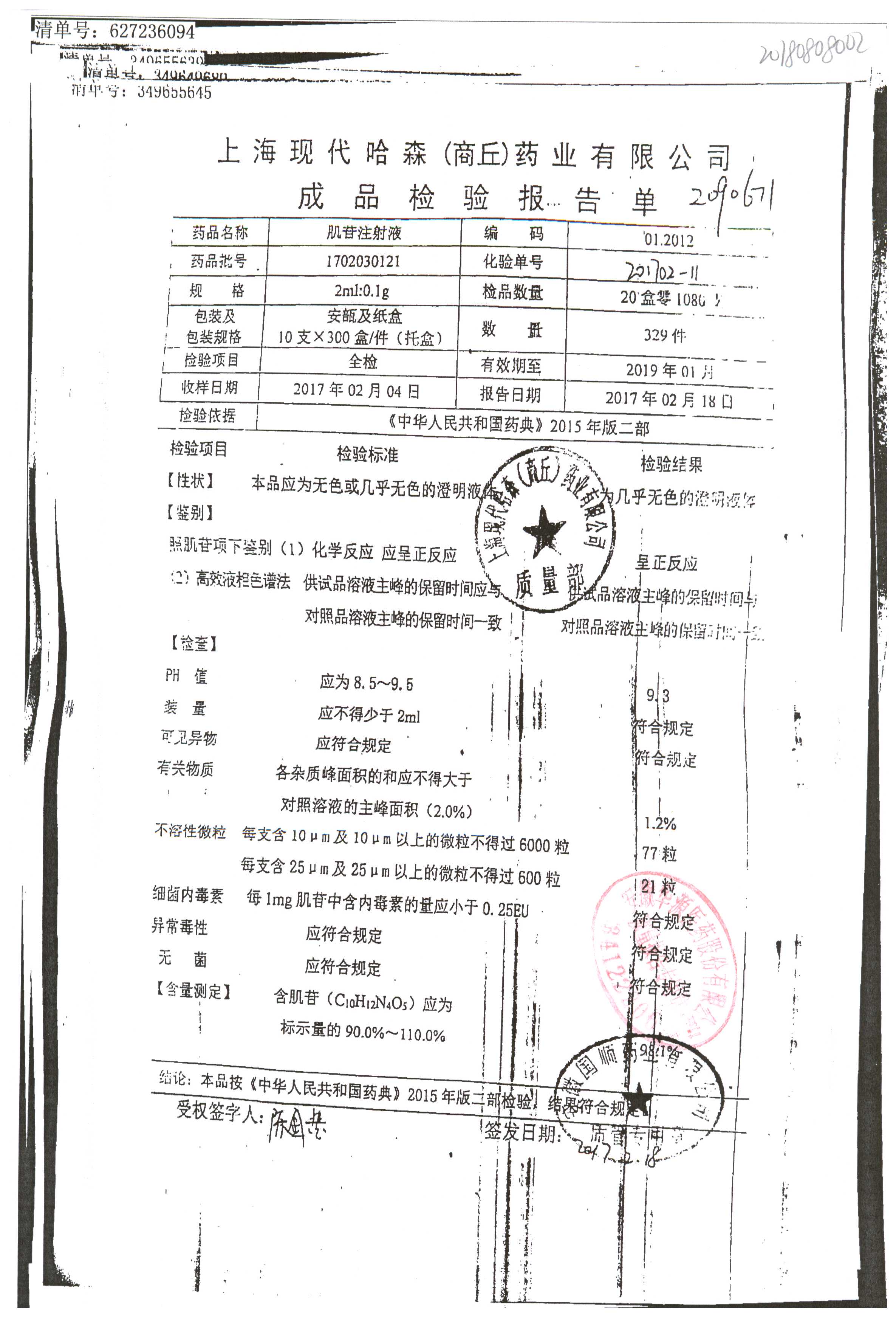 | 肌苷注射液 | 2m:0.1g*10支 | 1909120211 | 查看詳情 |