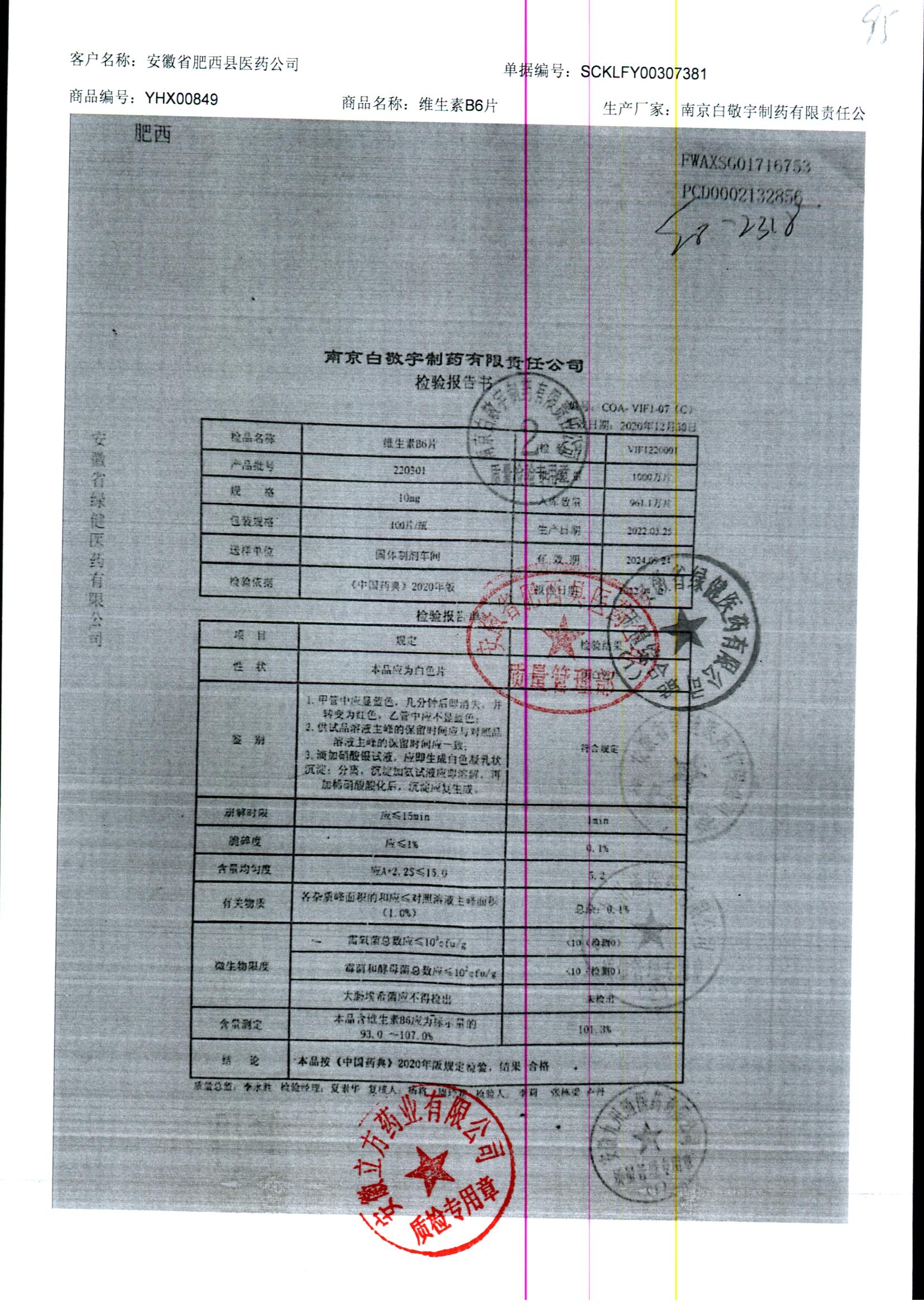 | 維生素B6片 | 10mg*100片 | 190501 | 查看詳情 |