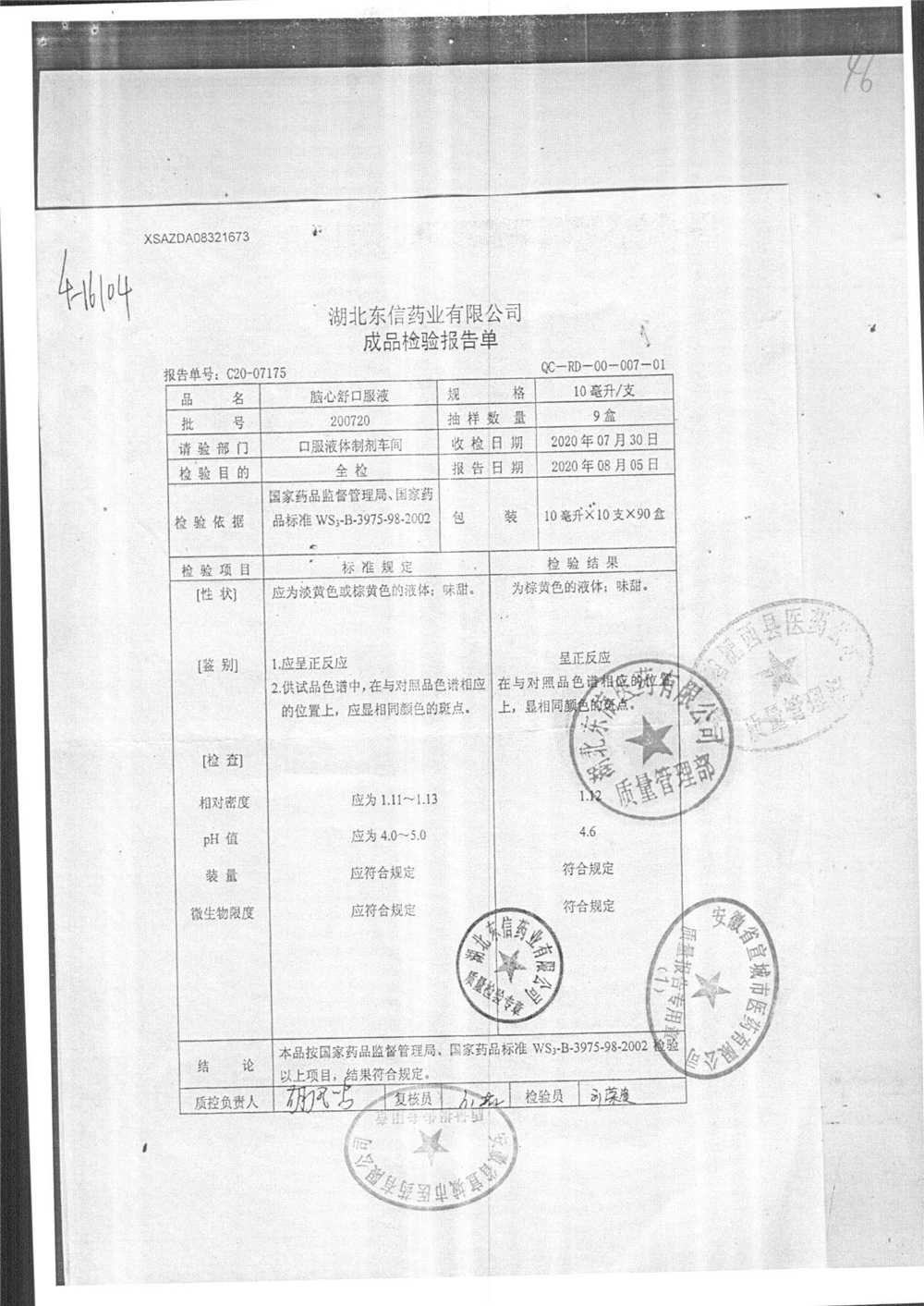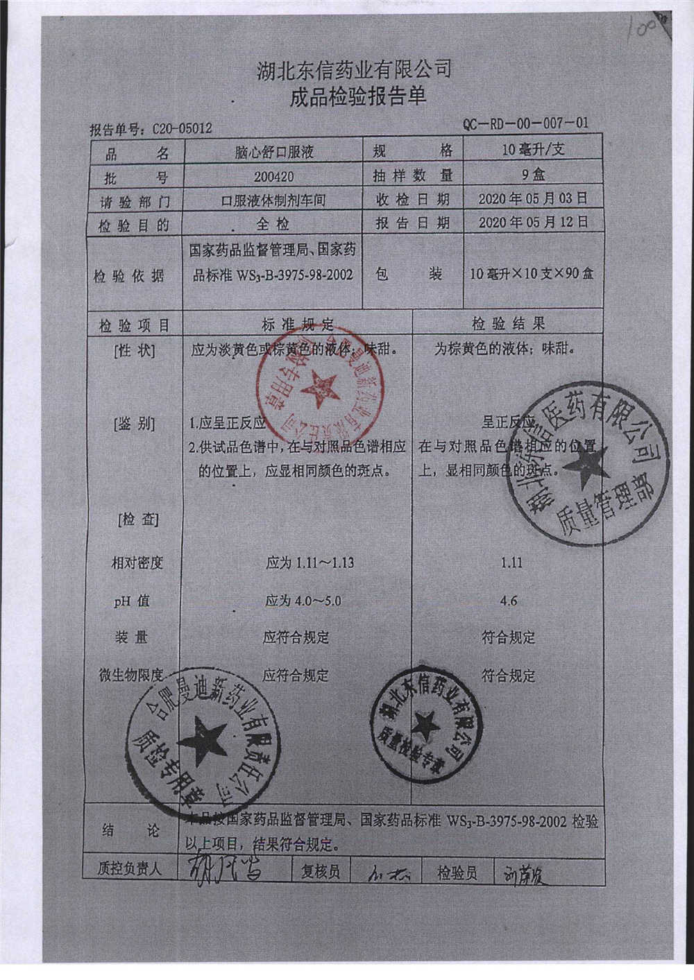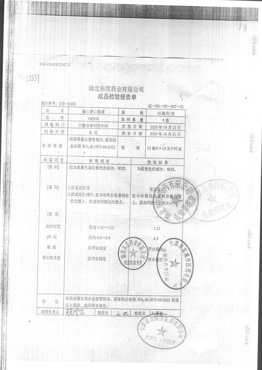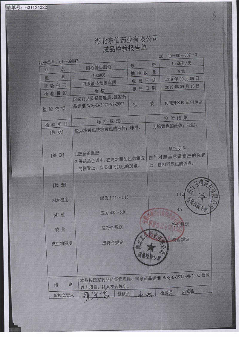 | 腦心舒口服液 | 10ml | 180423 | 查看詳情 |