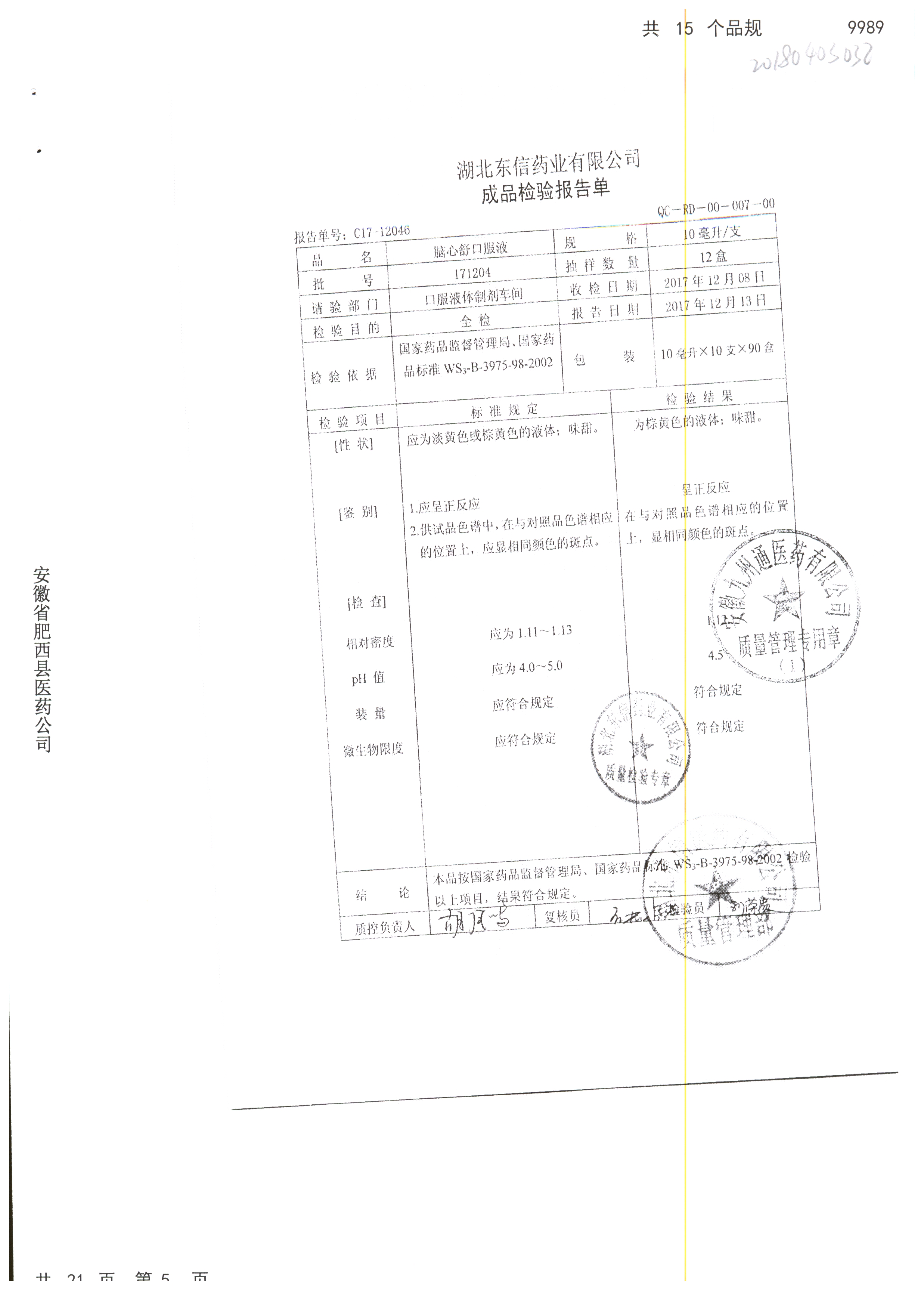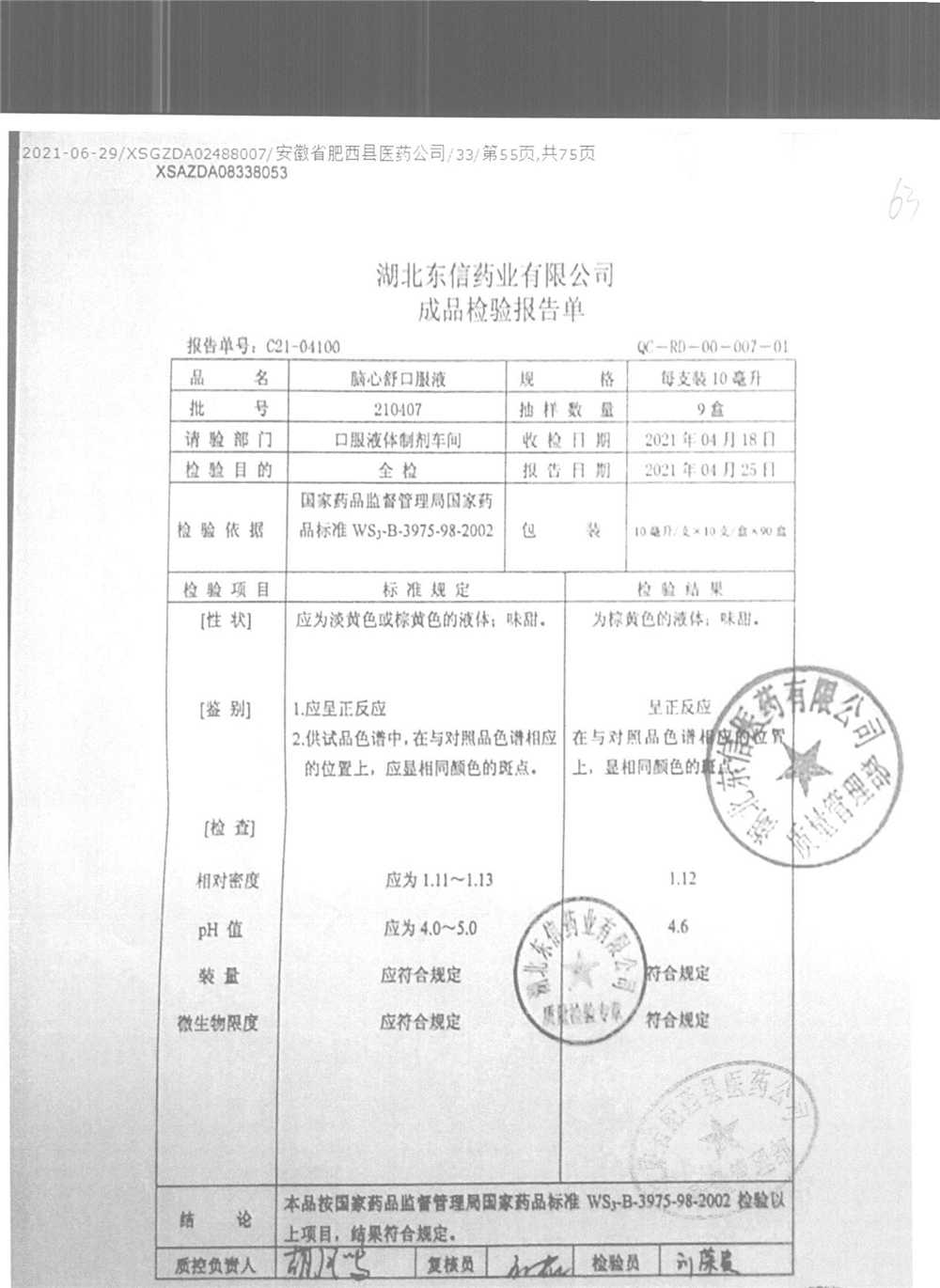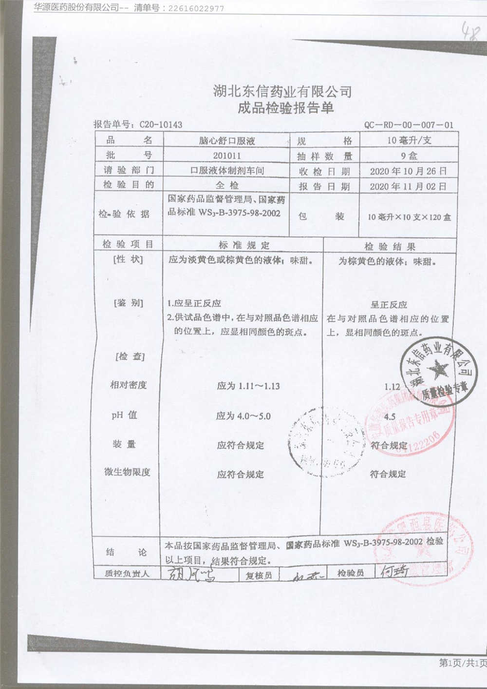 | 腦心舒口服液 | 10ml | 180423 | 查看詳情 |