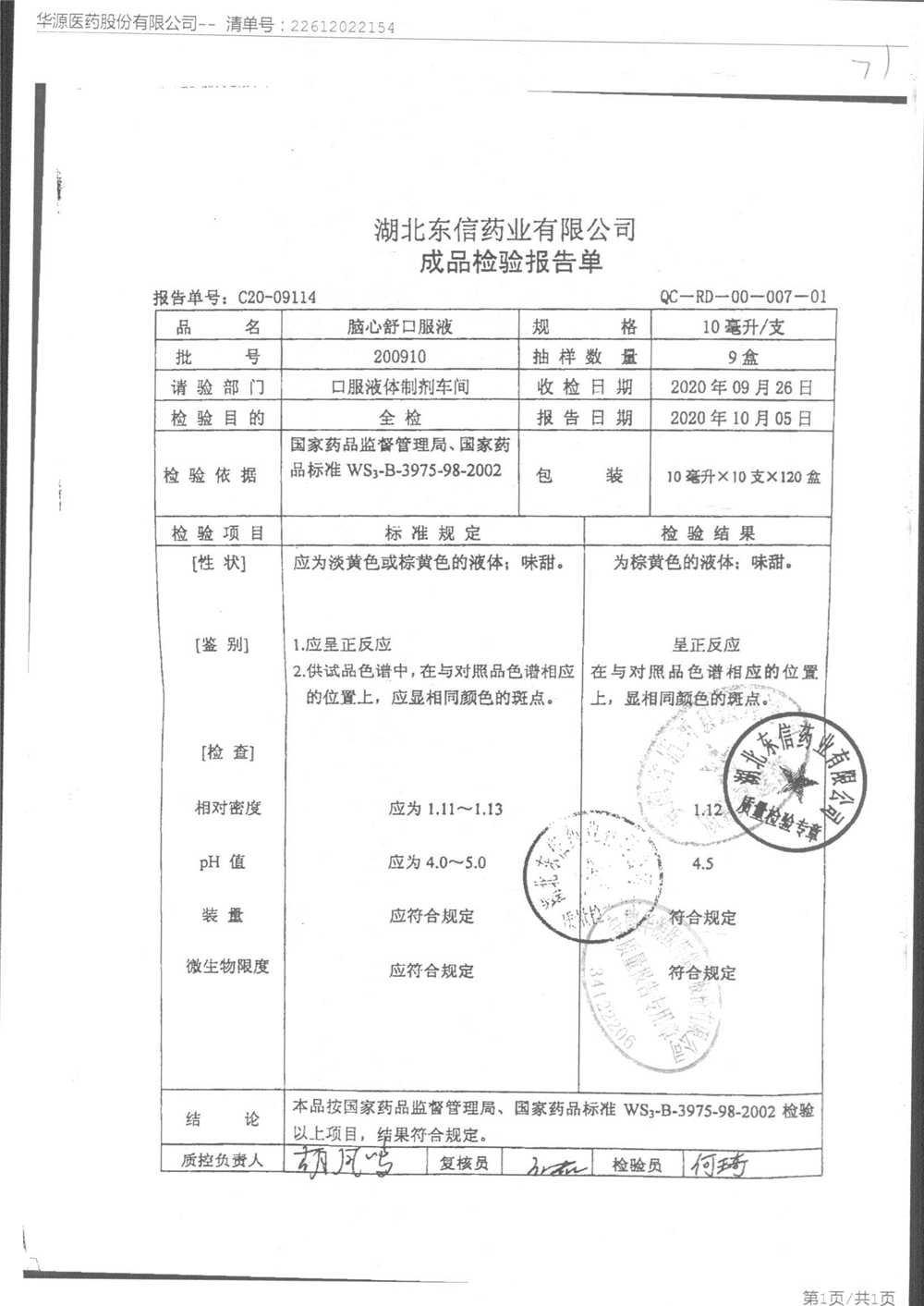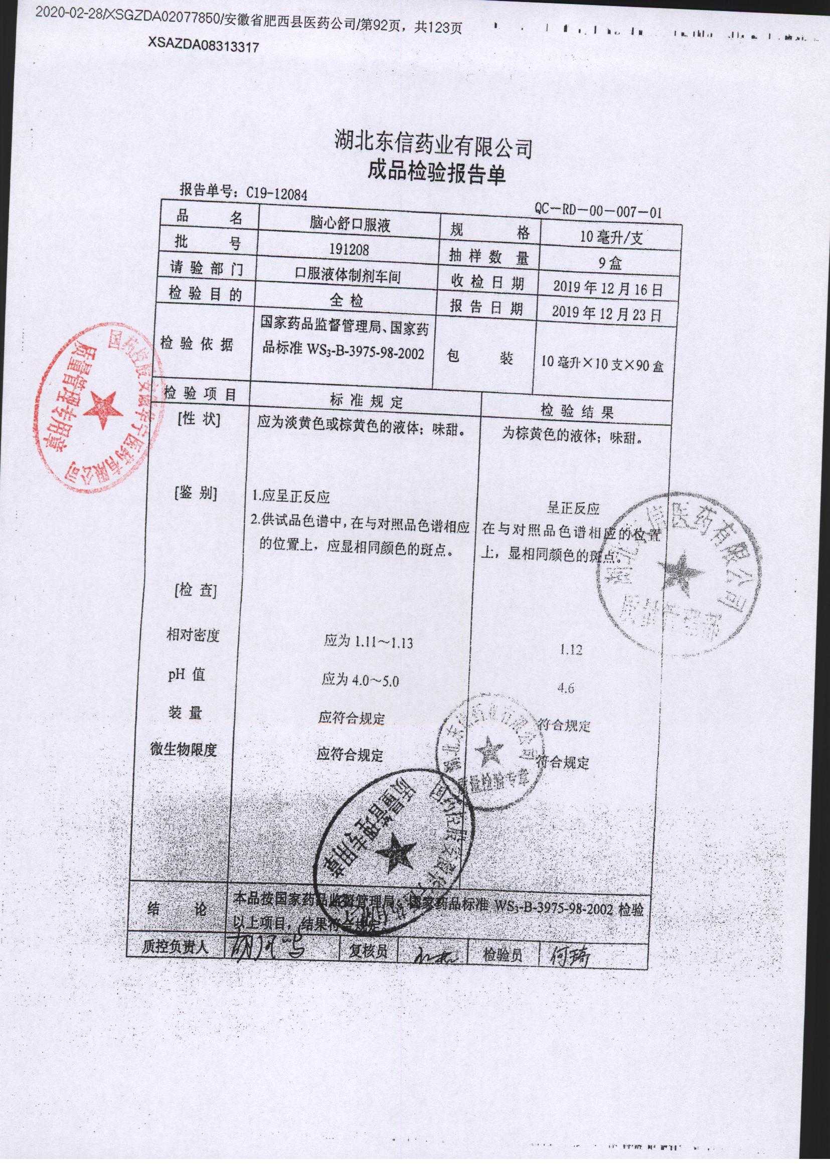 | 腦心舒口服液 | 10ml | 191208 | 查看詳情 |