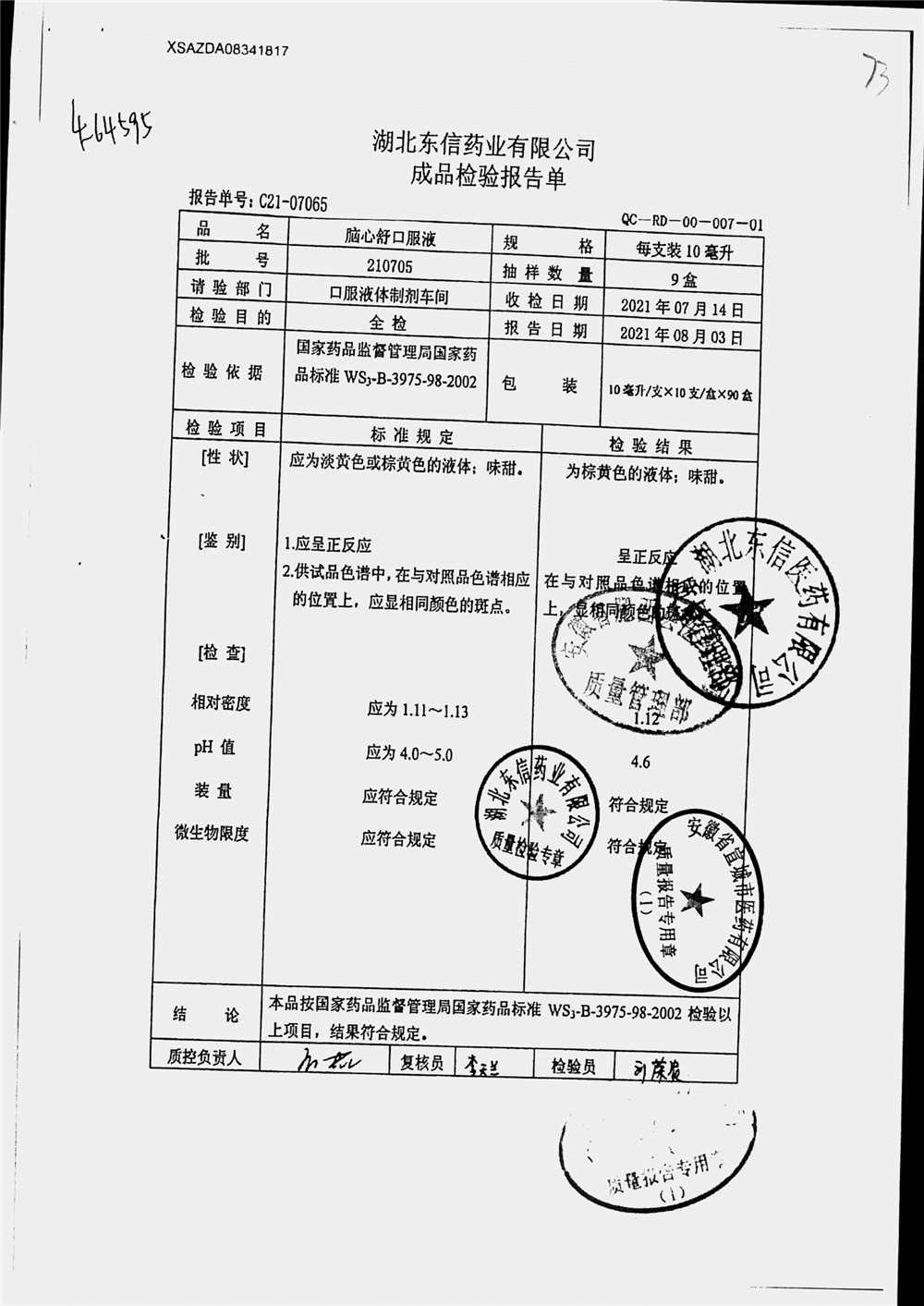 | 腦心舒口服液 | 10ml | 210806 | 查看詳情 |