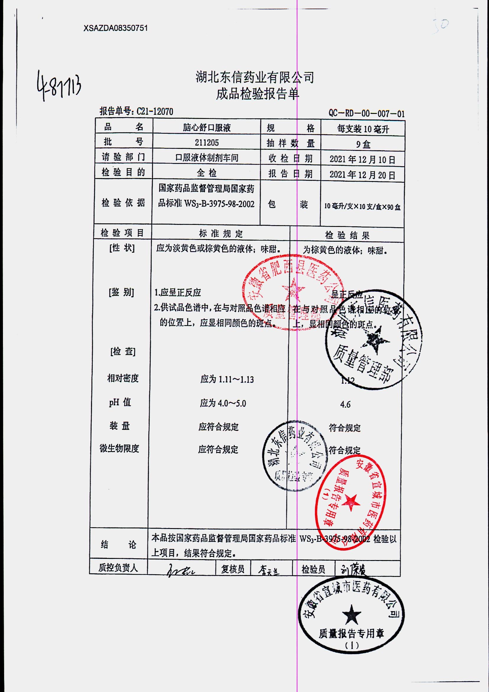 | 腦心舒口服液 | 10ml | 211209 | 查看詳情 |