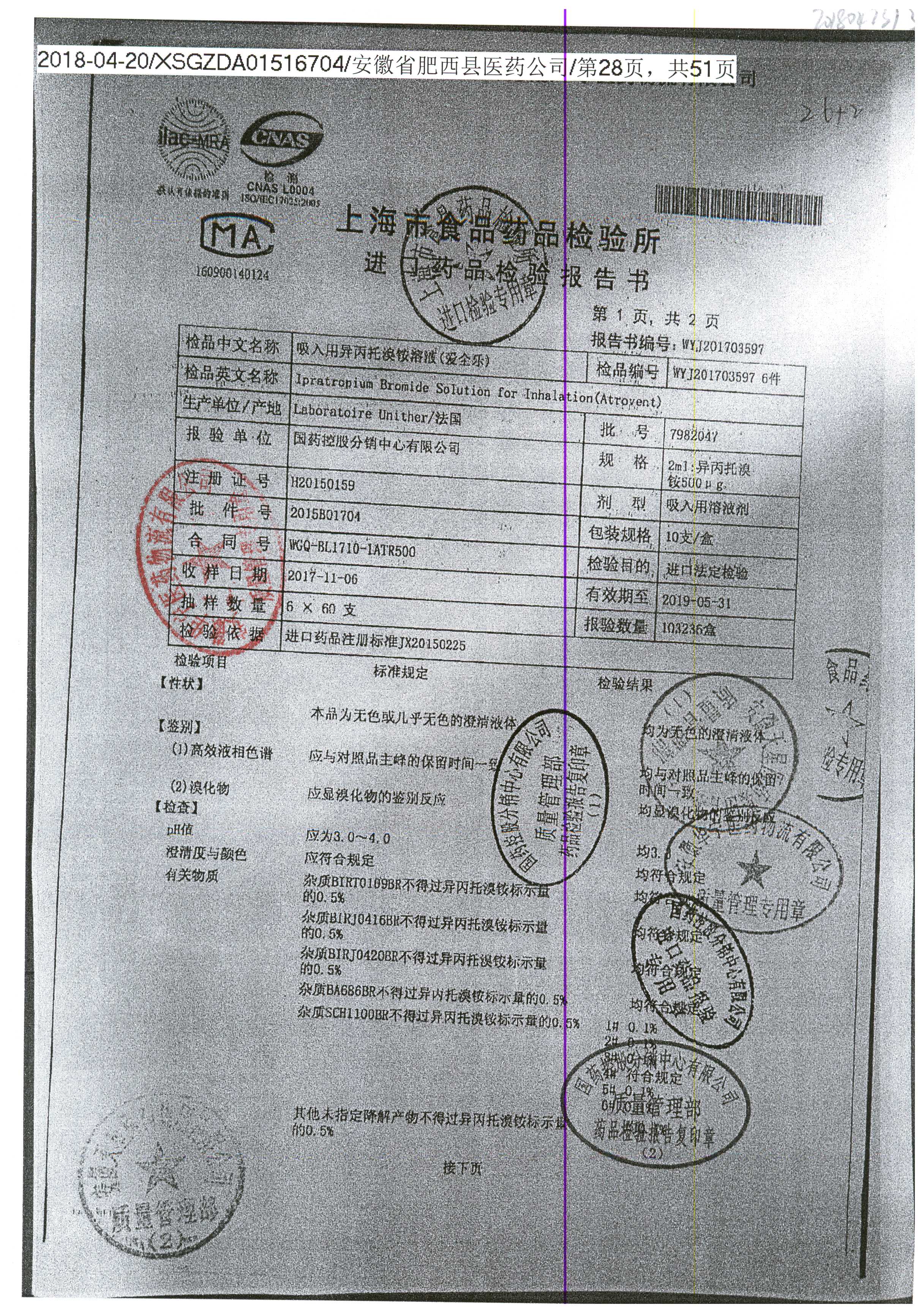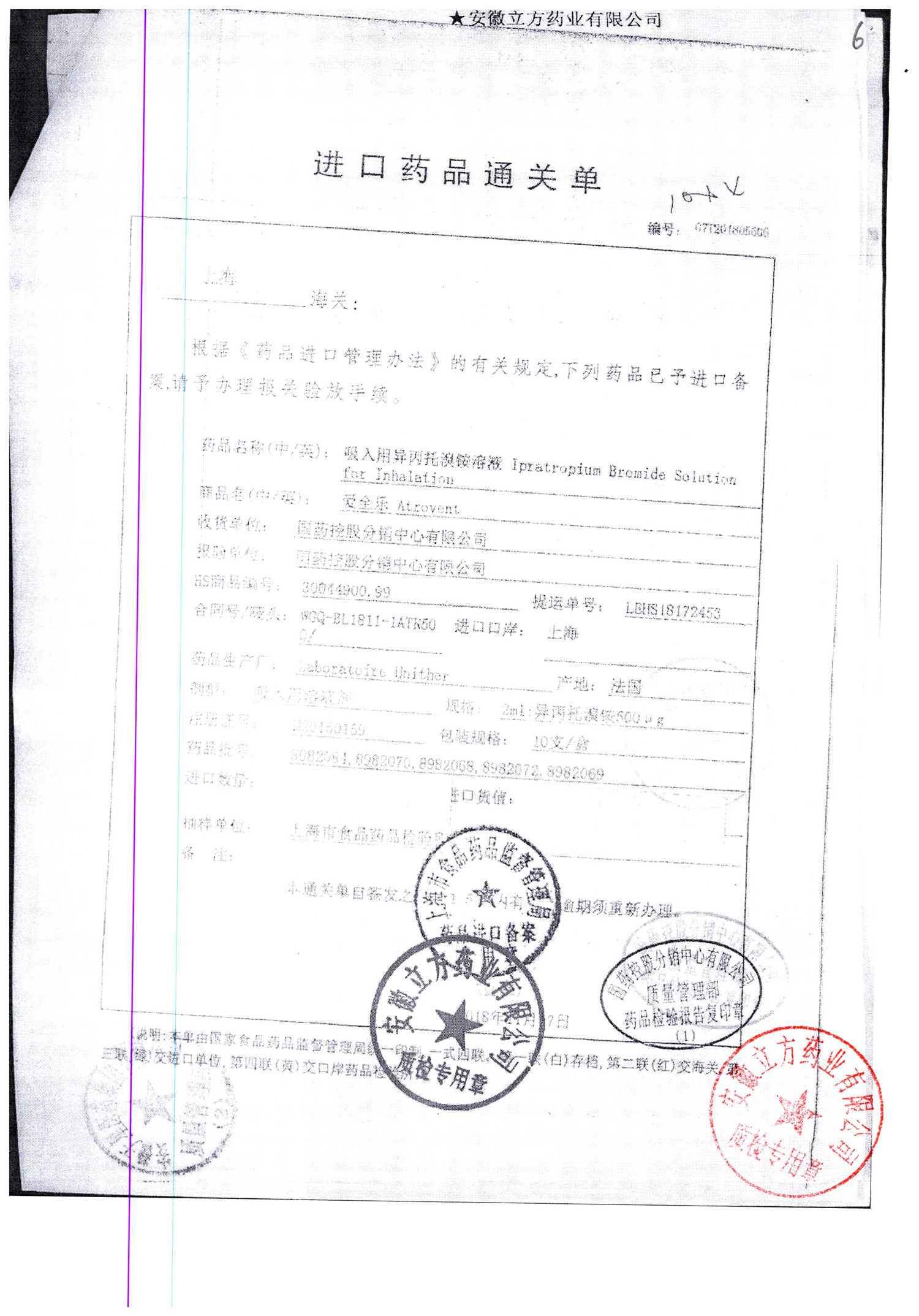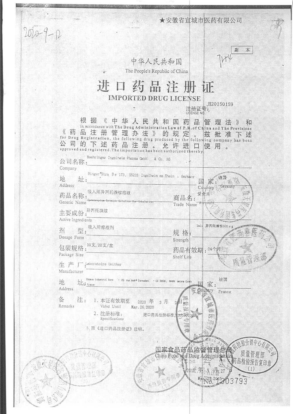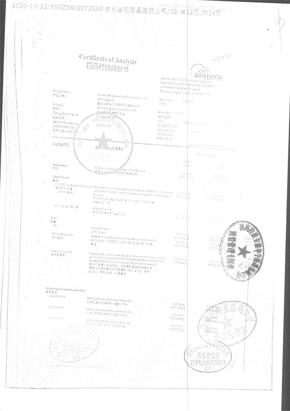 | 吸入用異丙托溴銨溶液 | 2ml*10支 | 7982044(注冊(cè)證) | 查看詳情 |