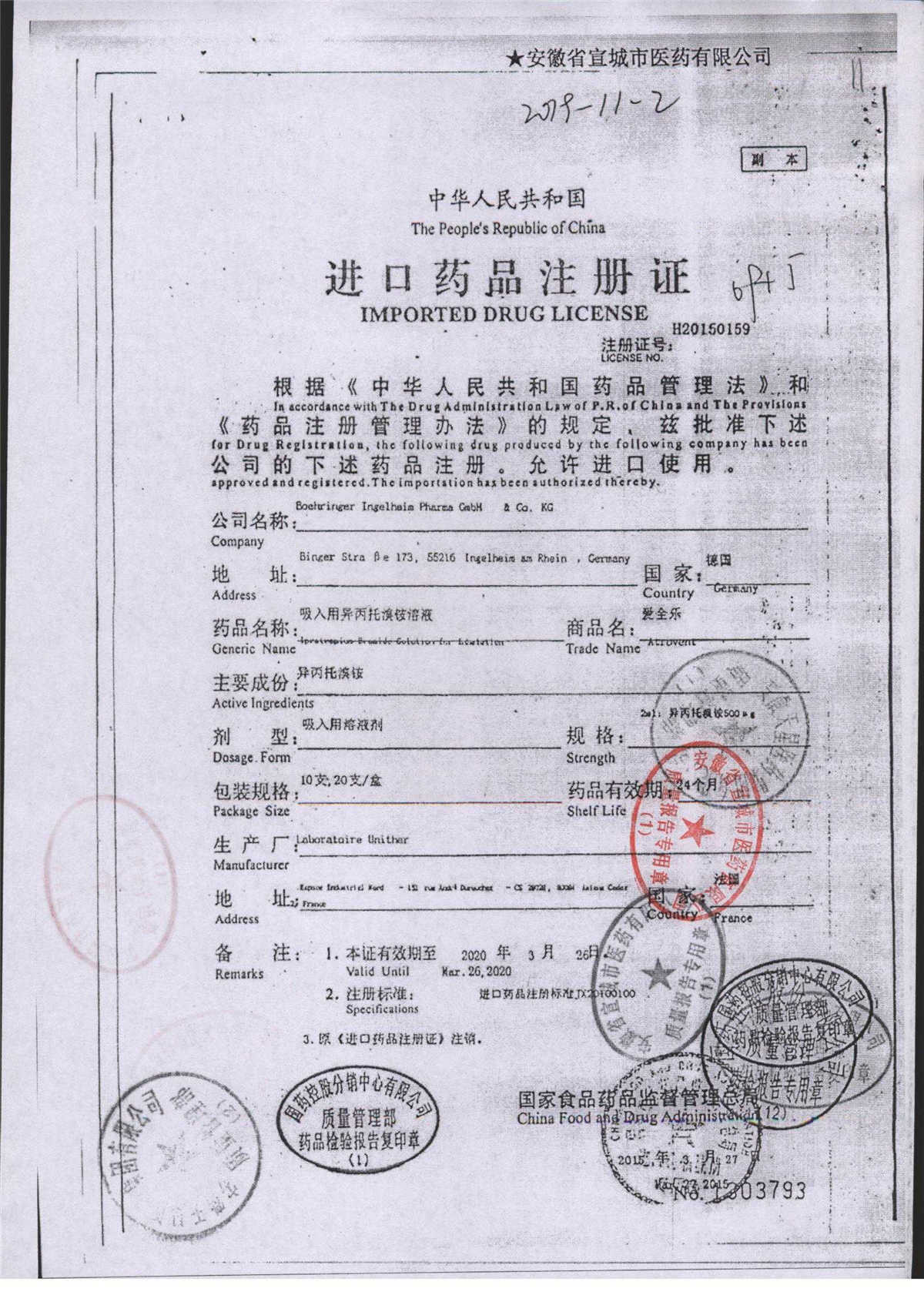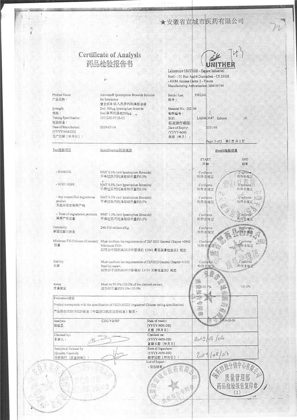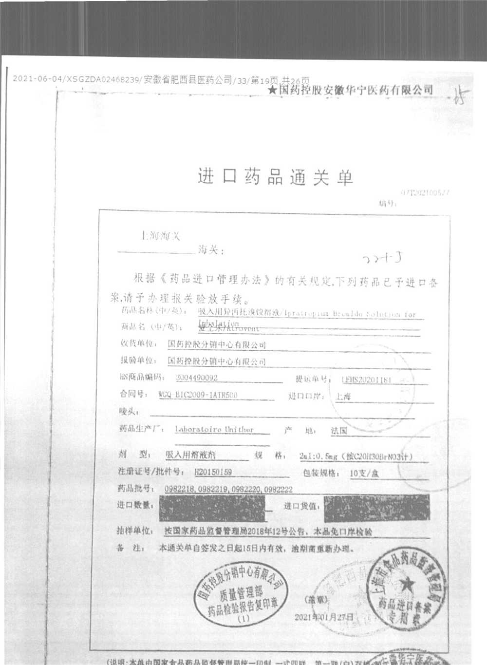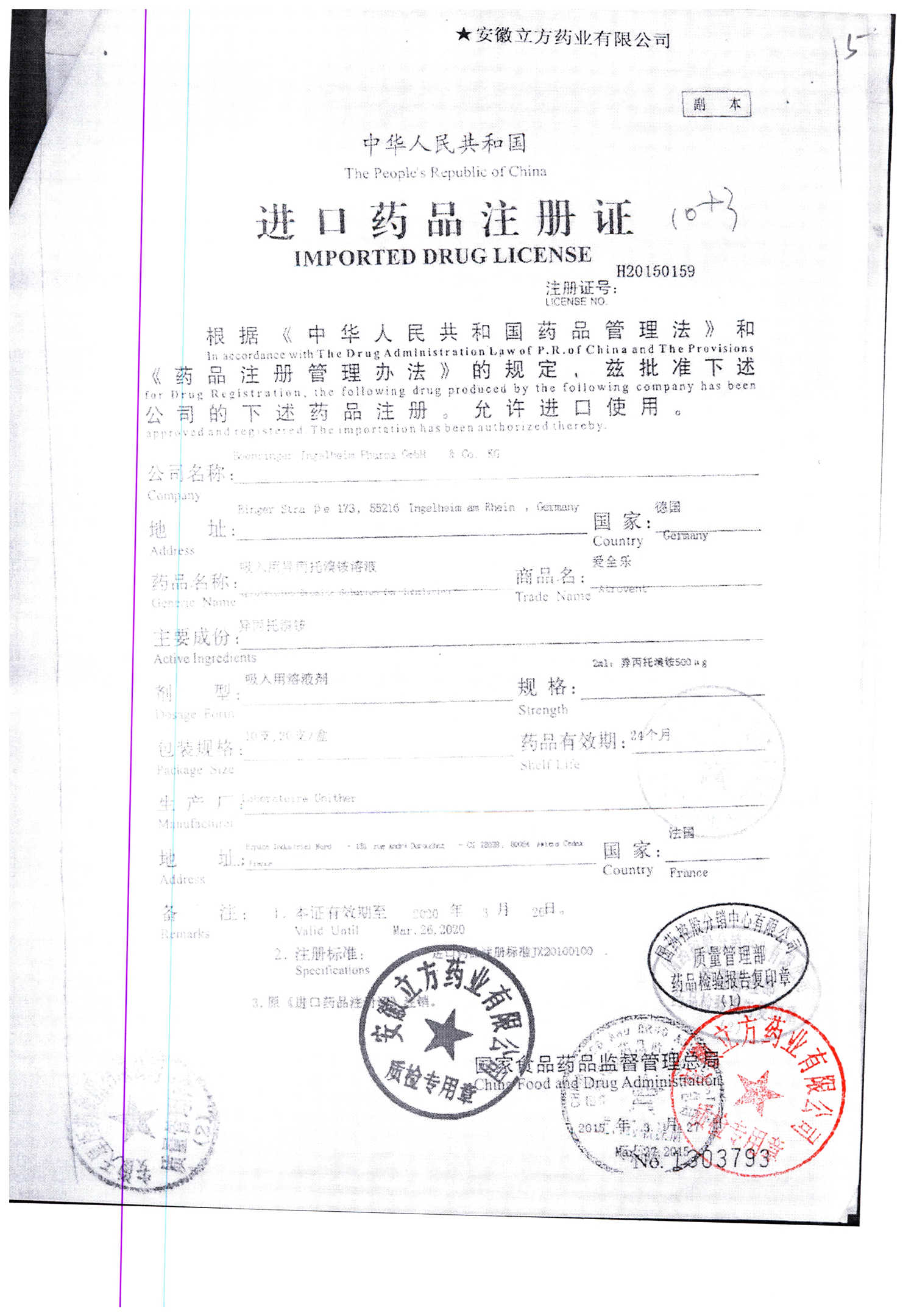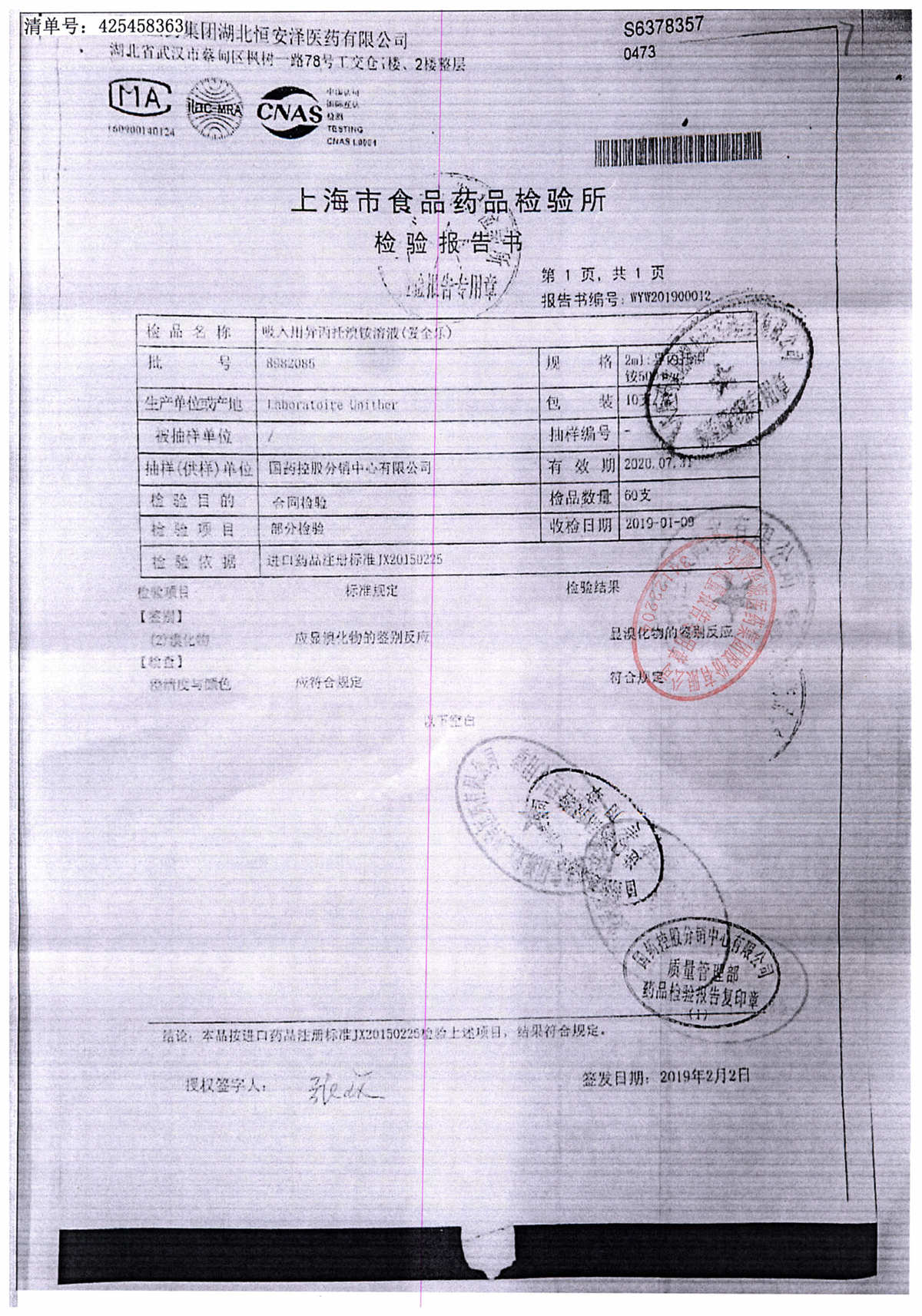 | 吸入用異丙托溴銨溶液 | 2ml*10支 | 7982044(注冊(cè)證) | 查看詳情 |