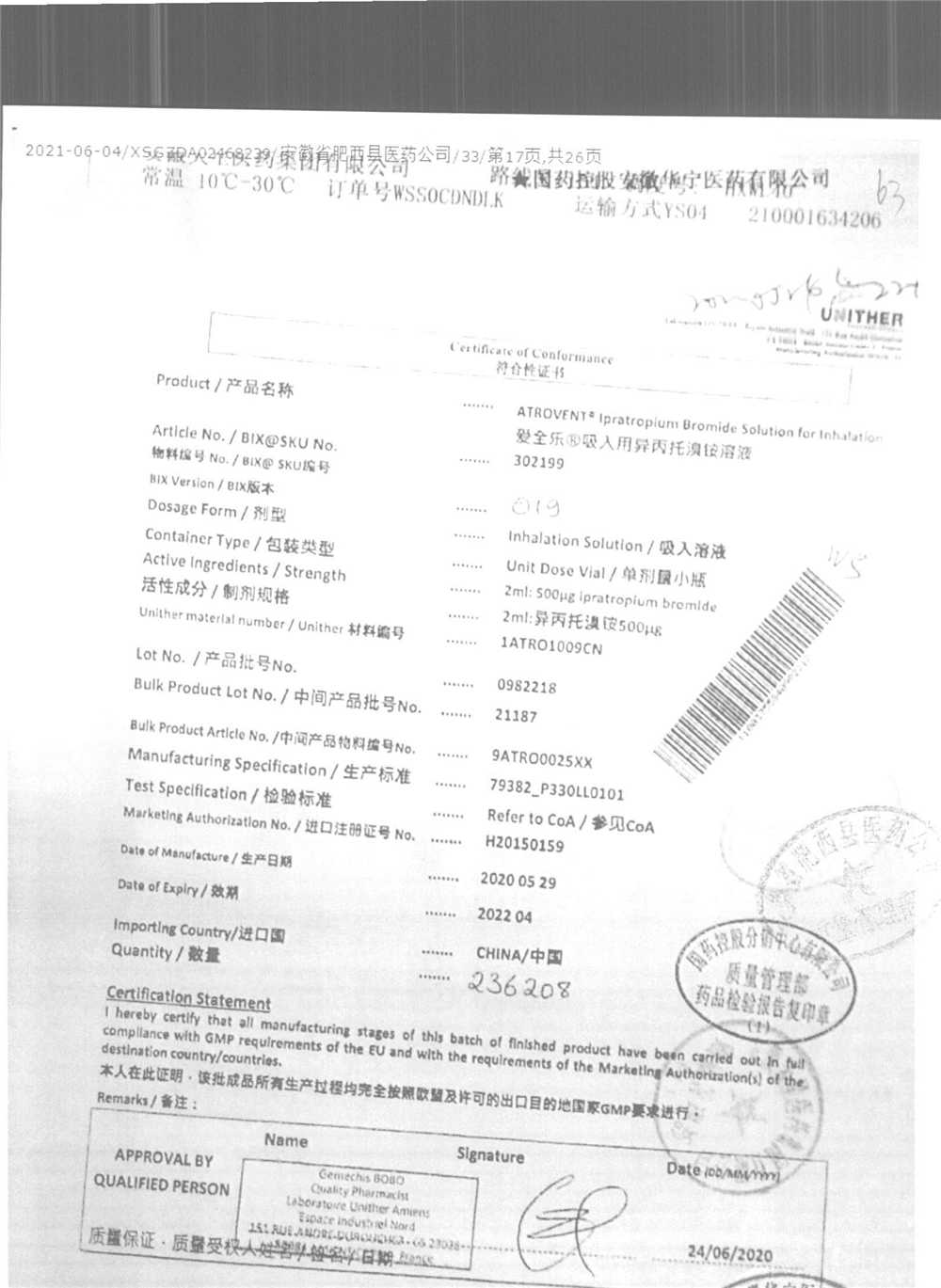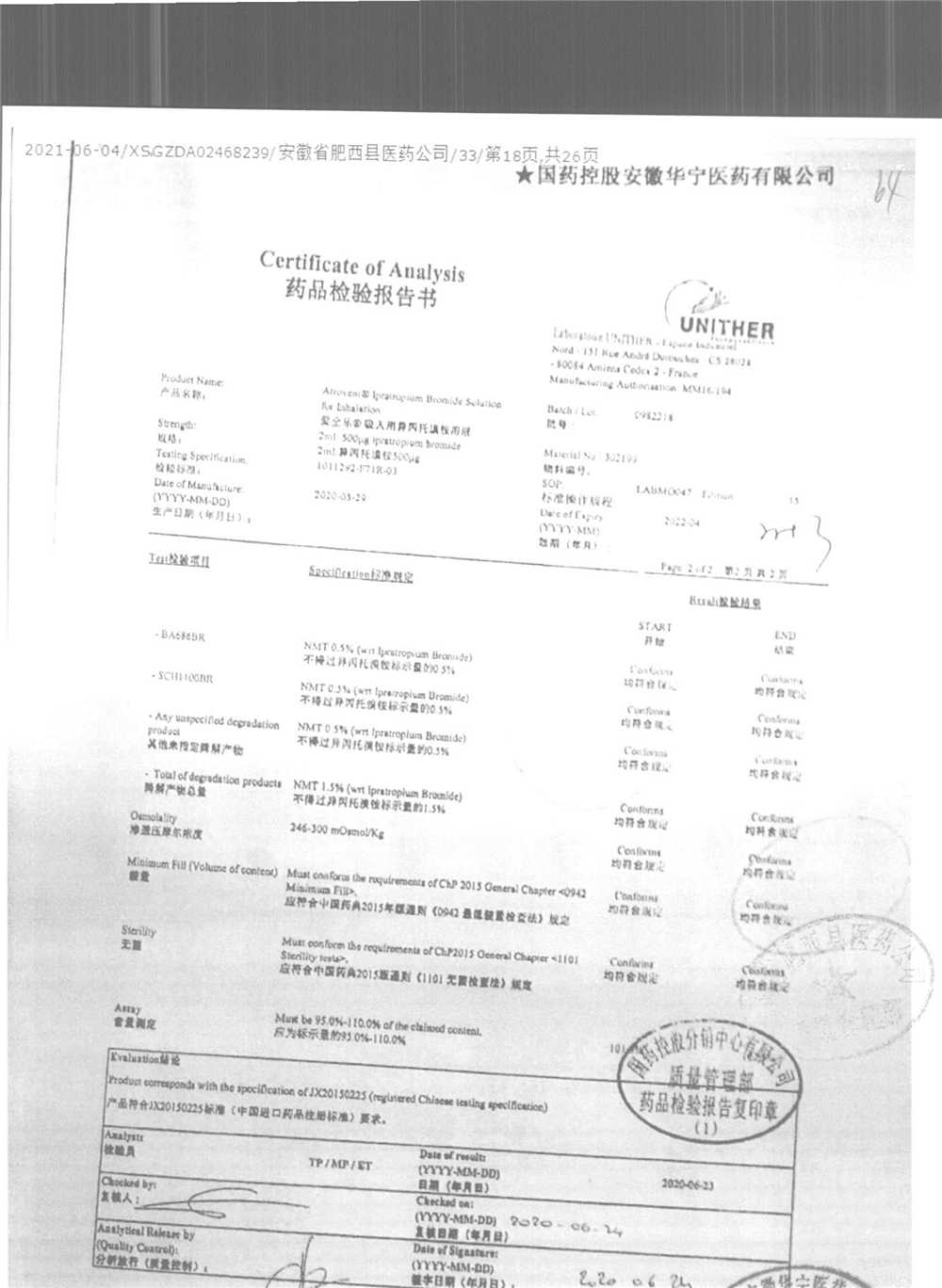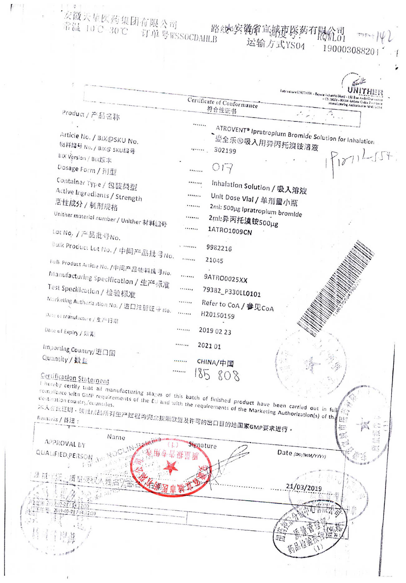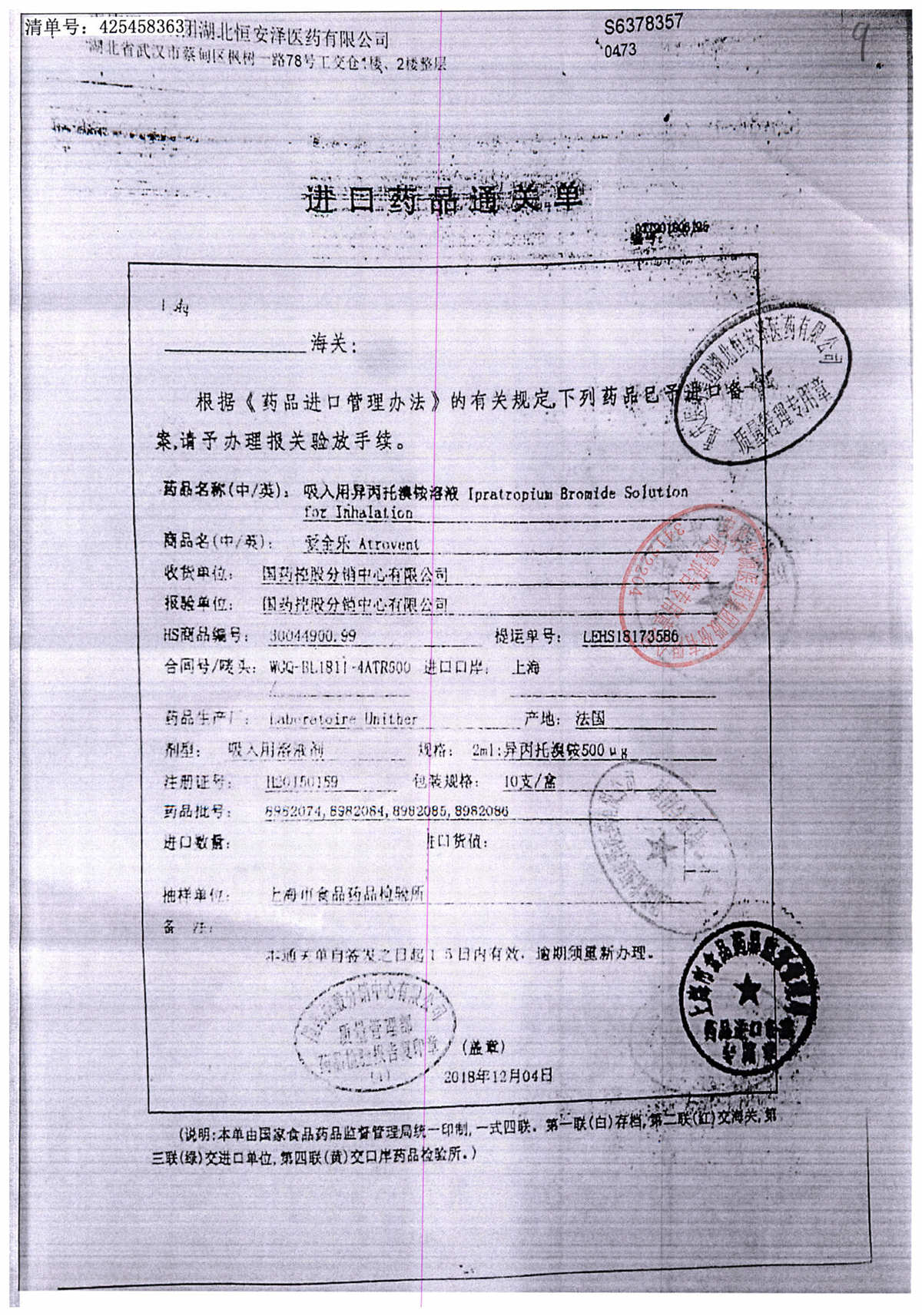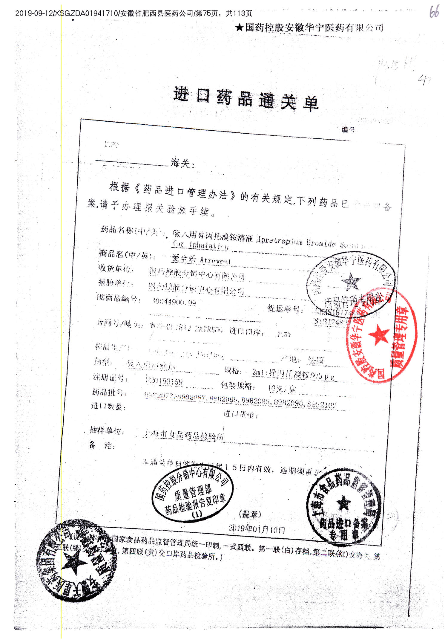 | 吸入用異丙托溴銨溶液 | 2ml*10支 | 7982044(注冊(cè)證) | 查看詳情 |