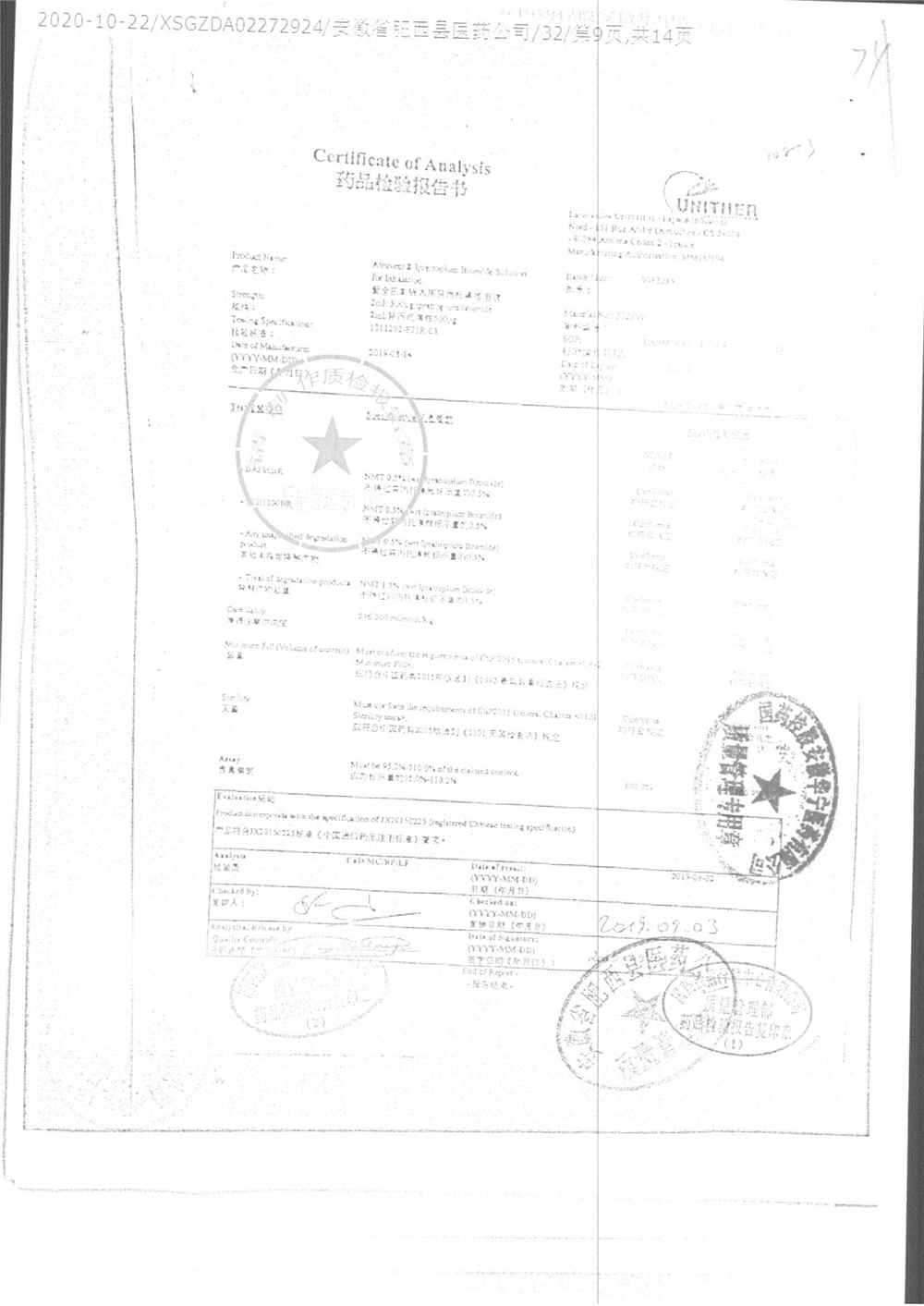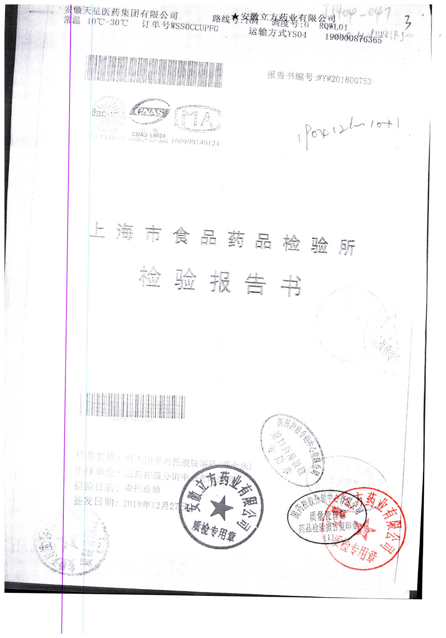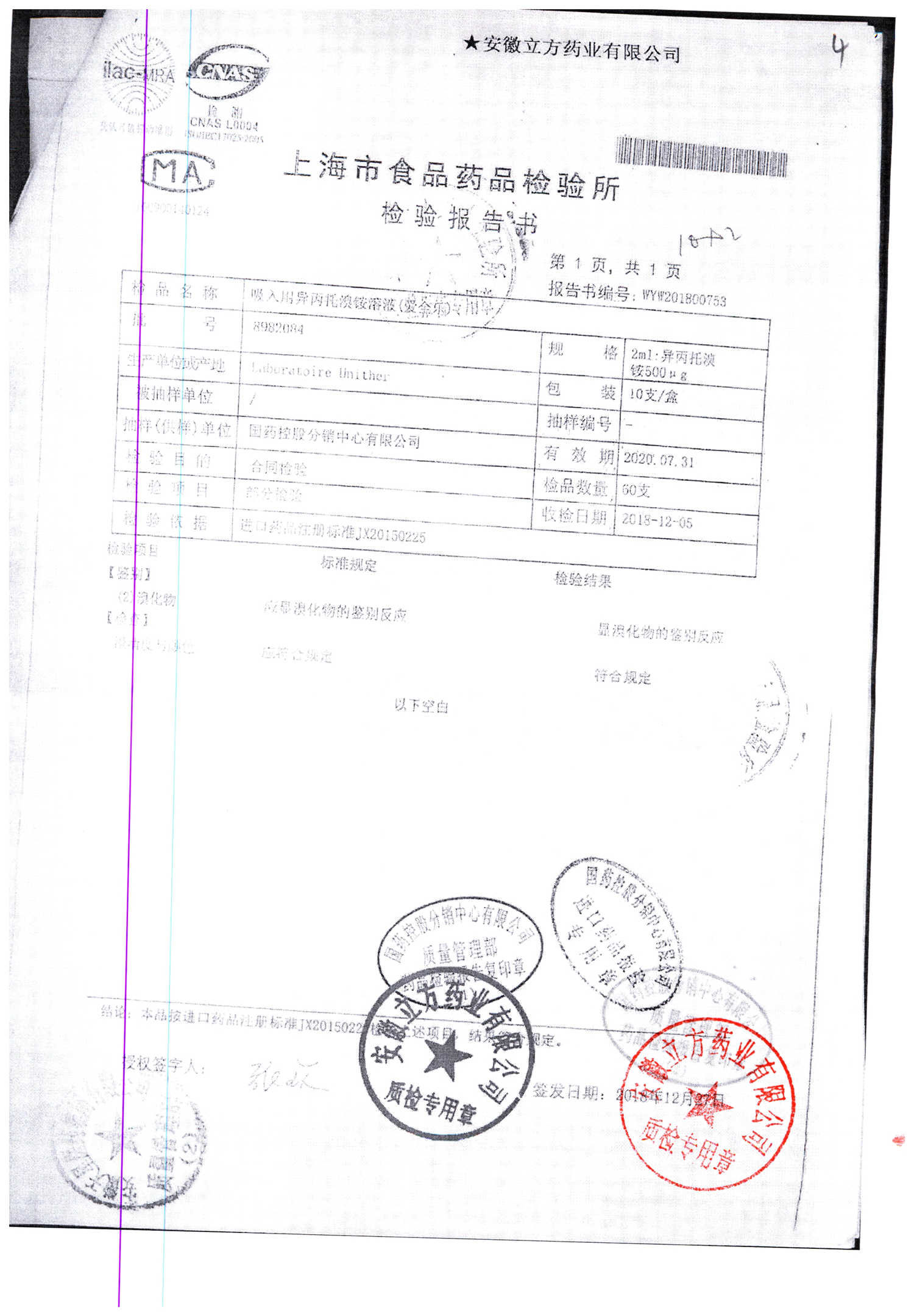 | 名稱 | 規(guī)格 | 批號(hào) | 藥檢報(bào)告 |