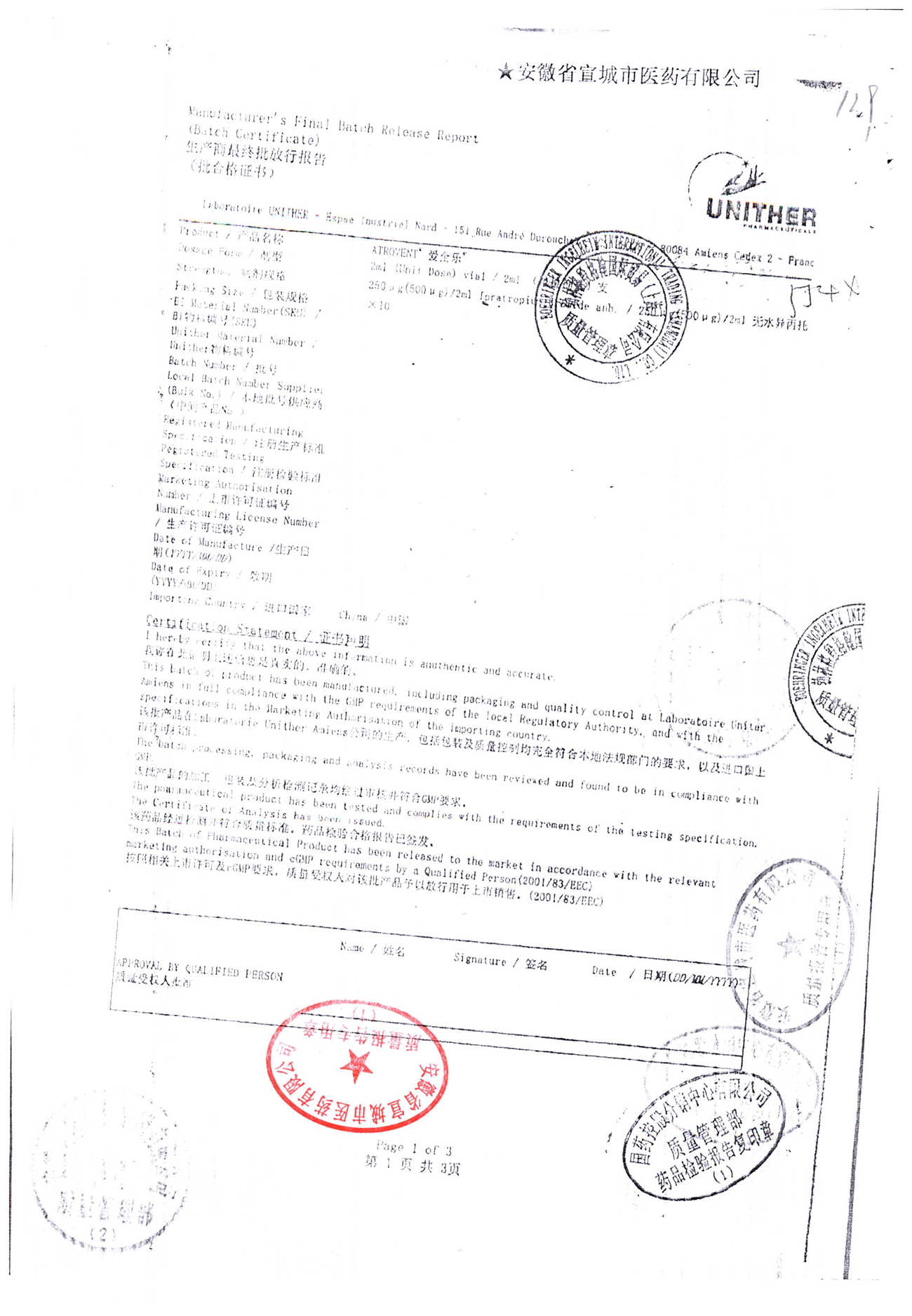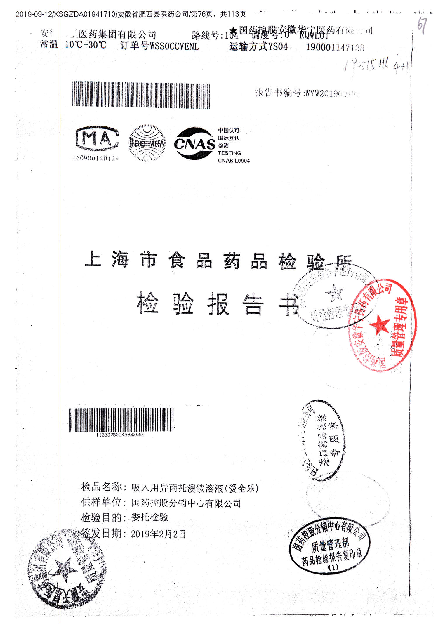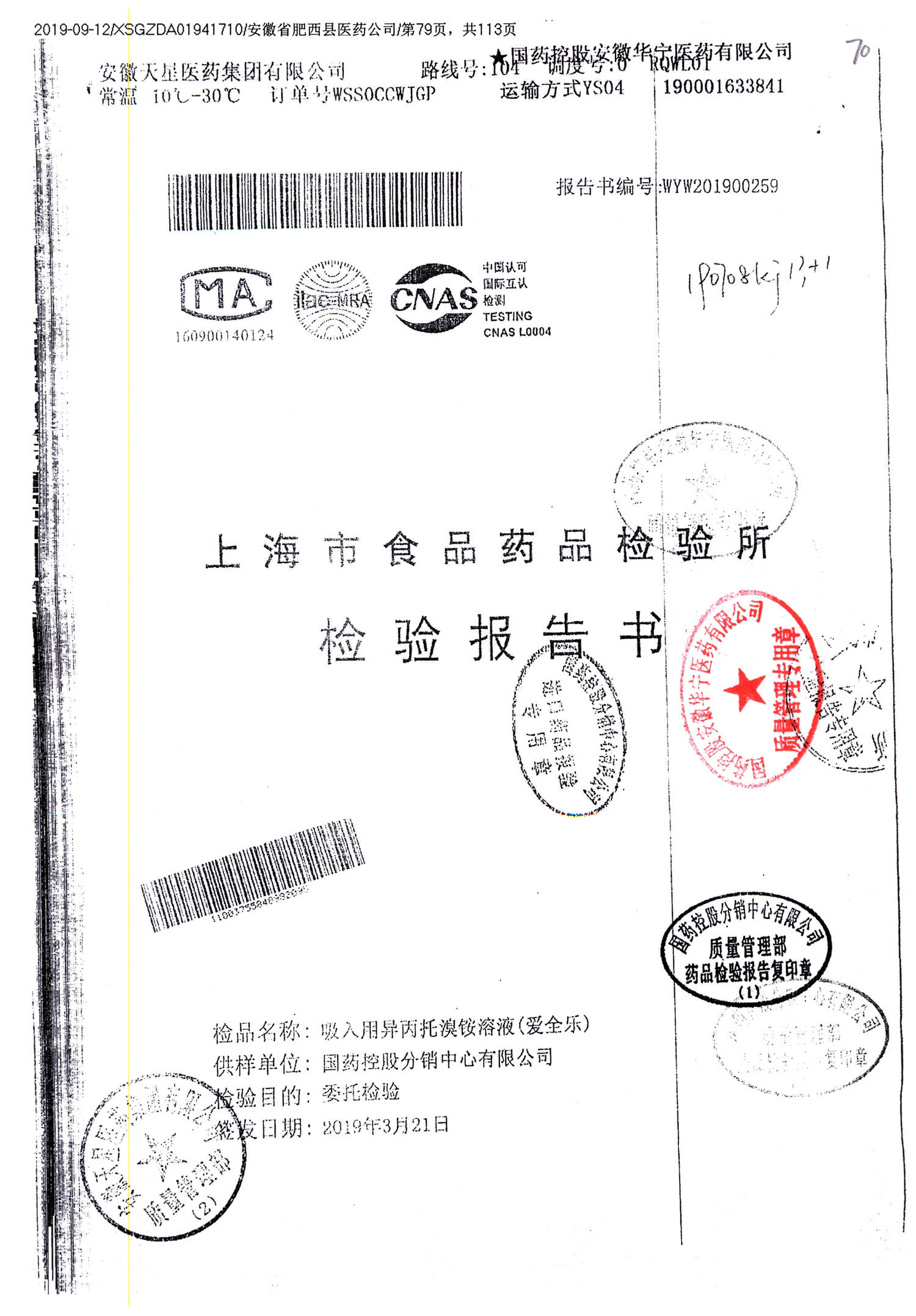 | 名稱 | 規(guī)格 | 批號(hào) | 藥檢報(bào)告 |