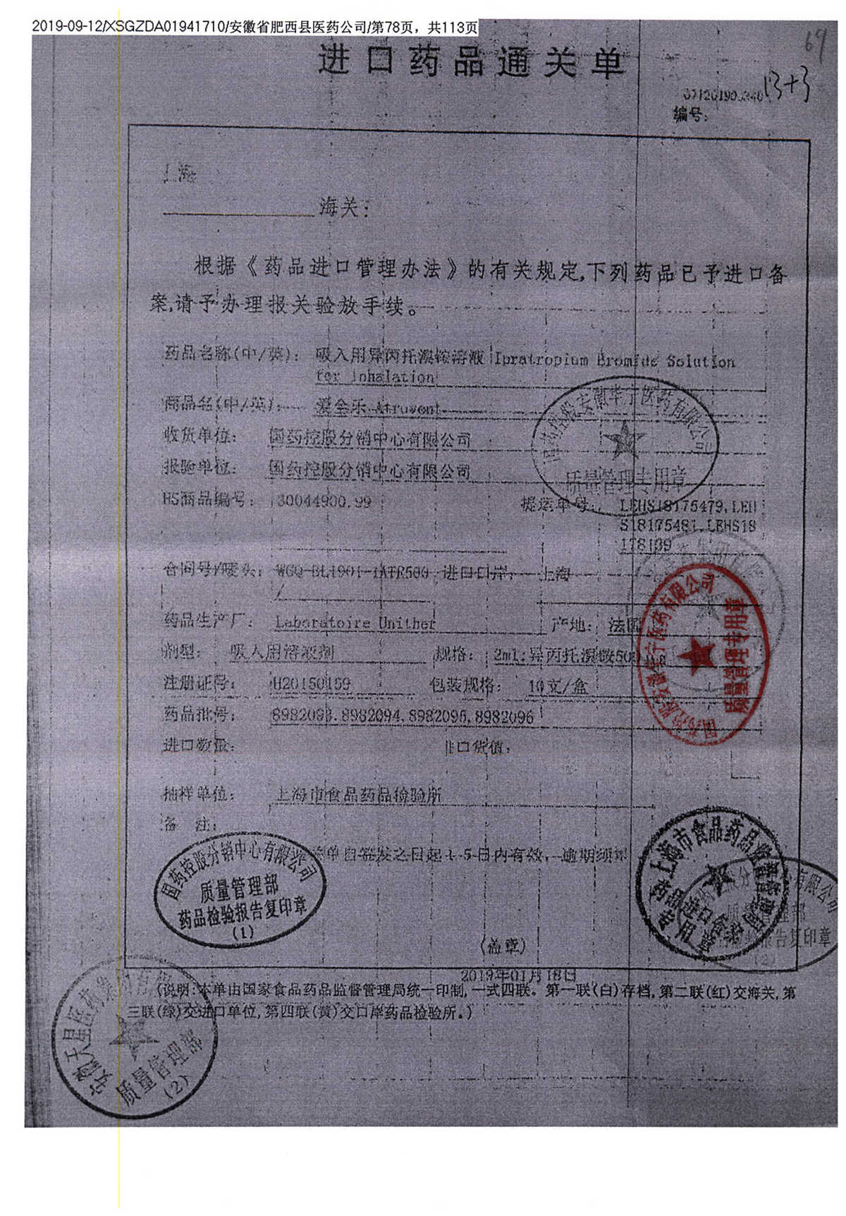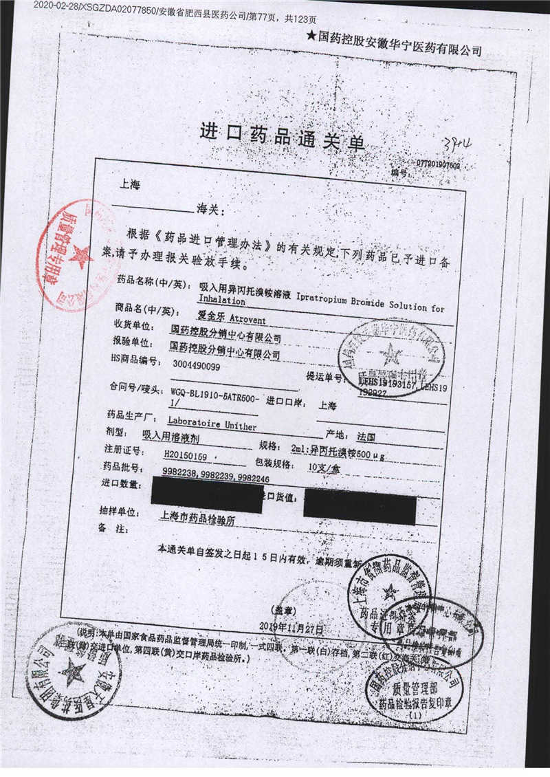 | 吸入用異丙托溴銨溶液 | 2ml*10支 | 1982206(3/5) | 查看詳情 |