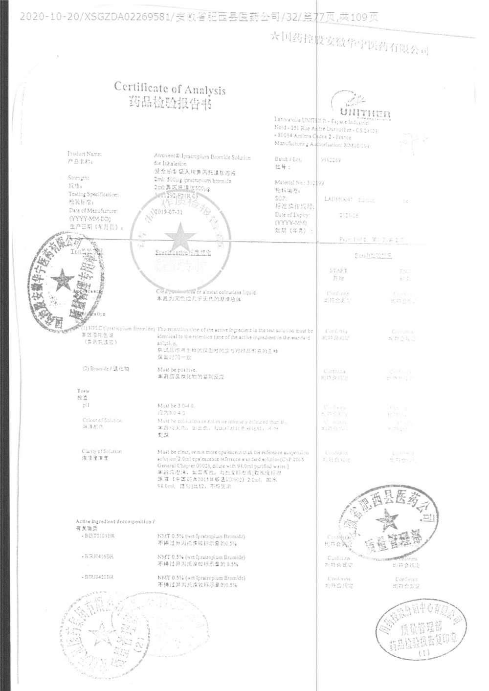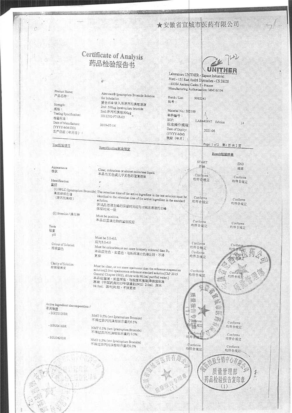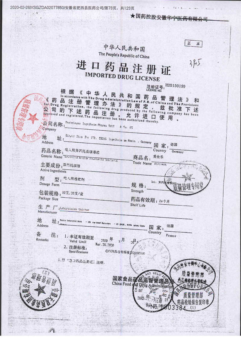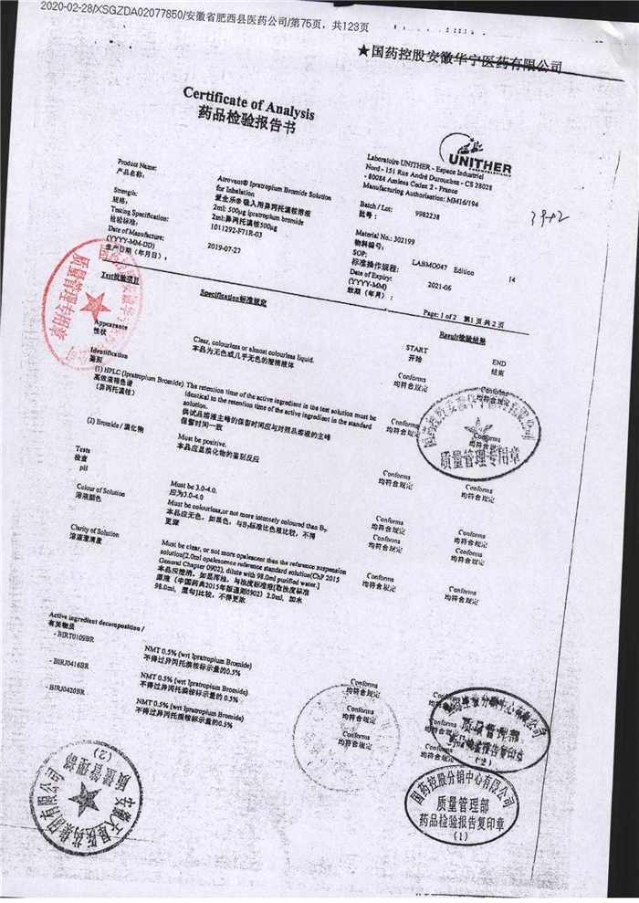 | 吸入用異丙托溴銨溶液 | 2ml*10支 | 7982047注冊(cè)證 | 查看詳情 |