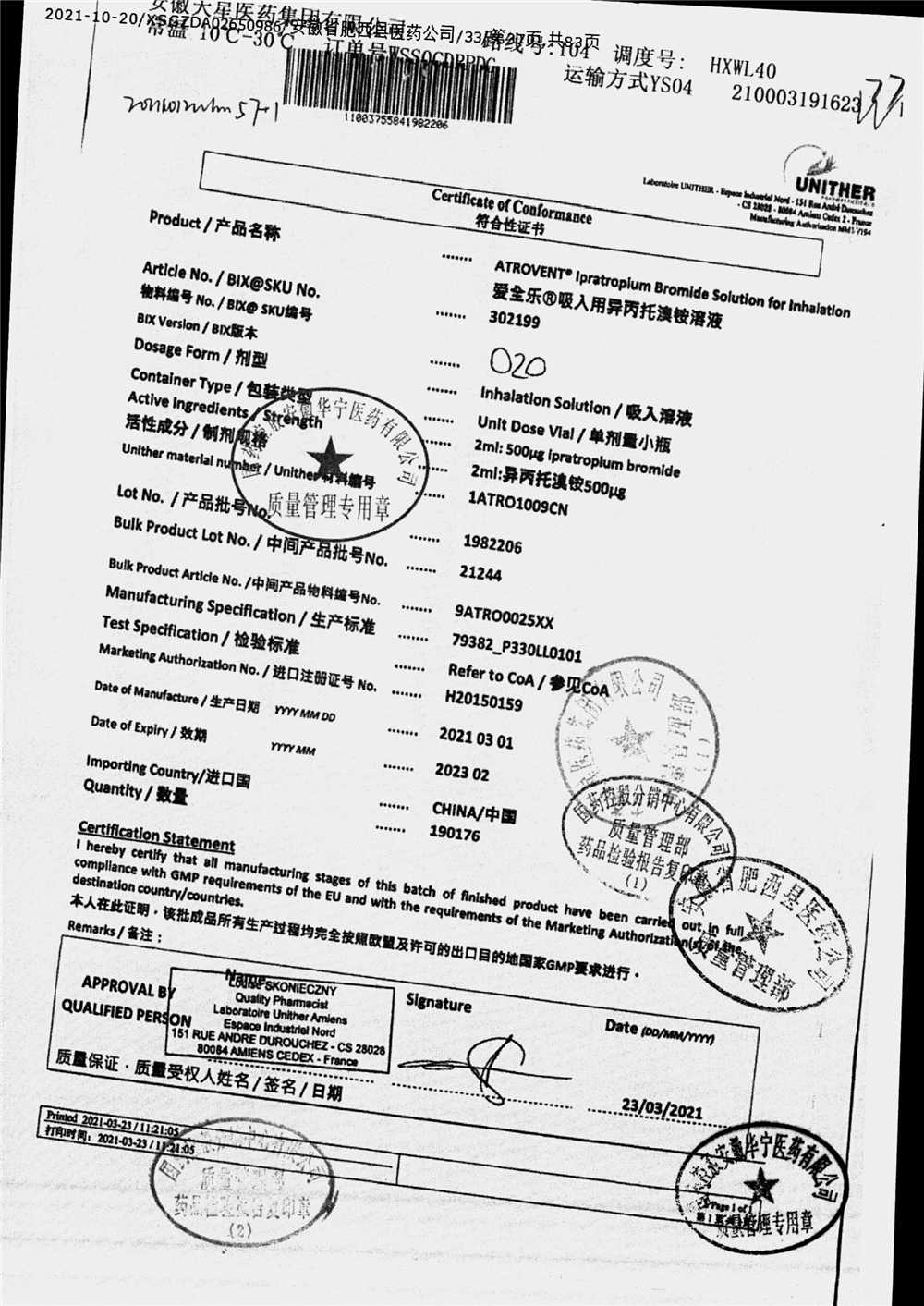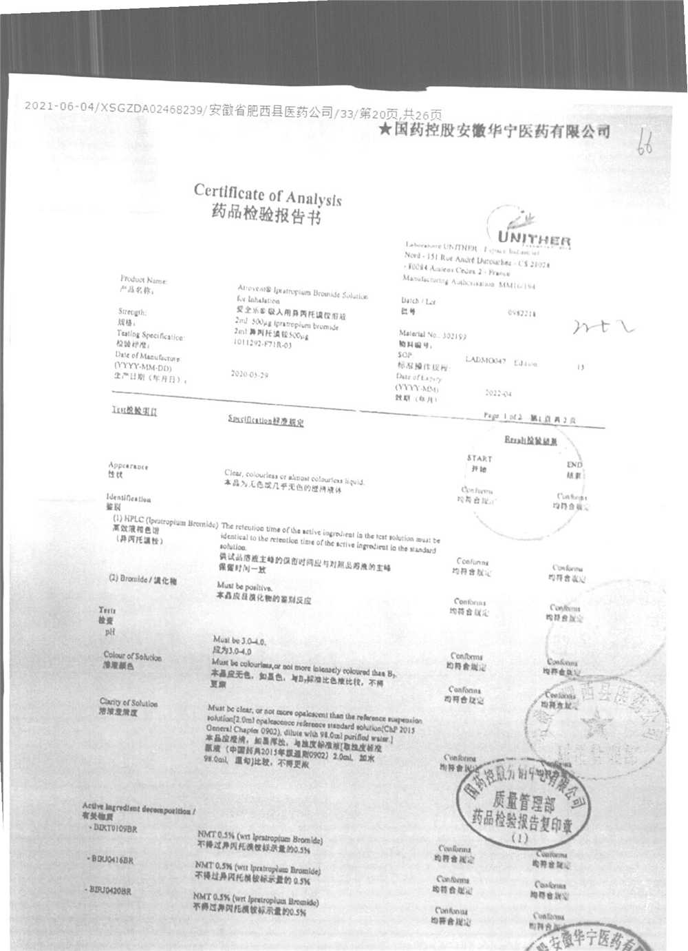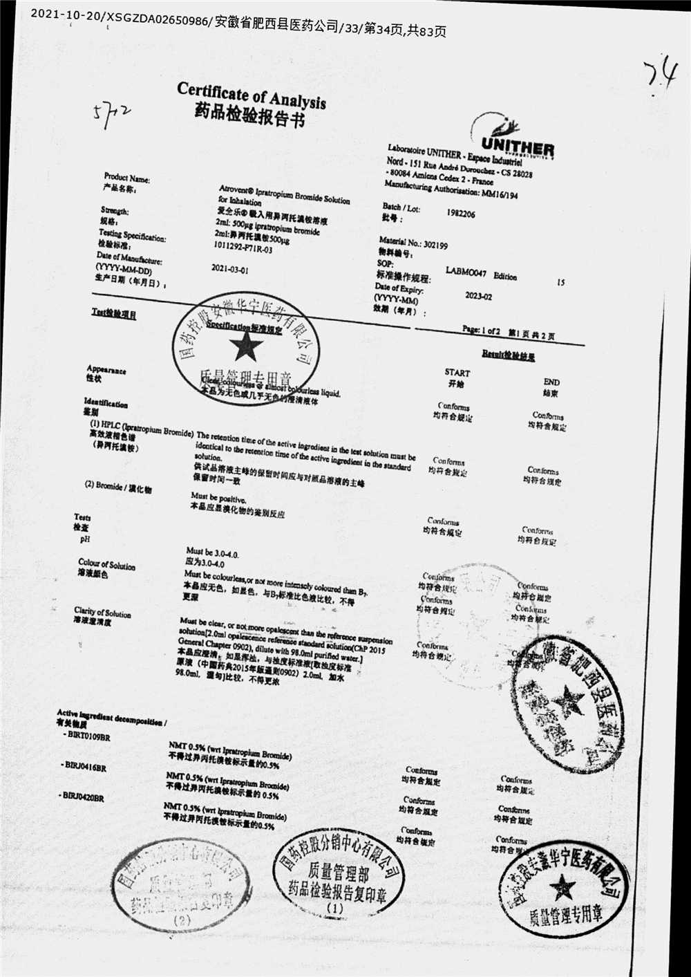 | 吸入用異丙托溴銨溶液 | 2ml*10支 | 7982047注冊(cè)證 | 查看詳情 |