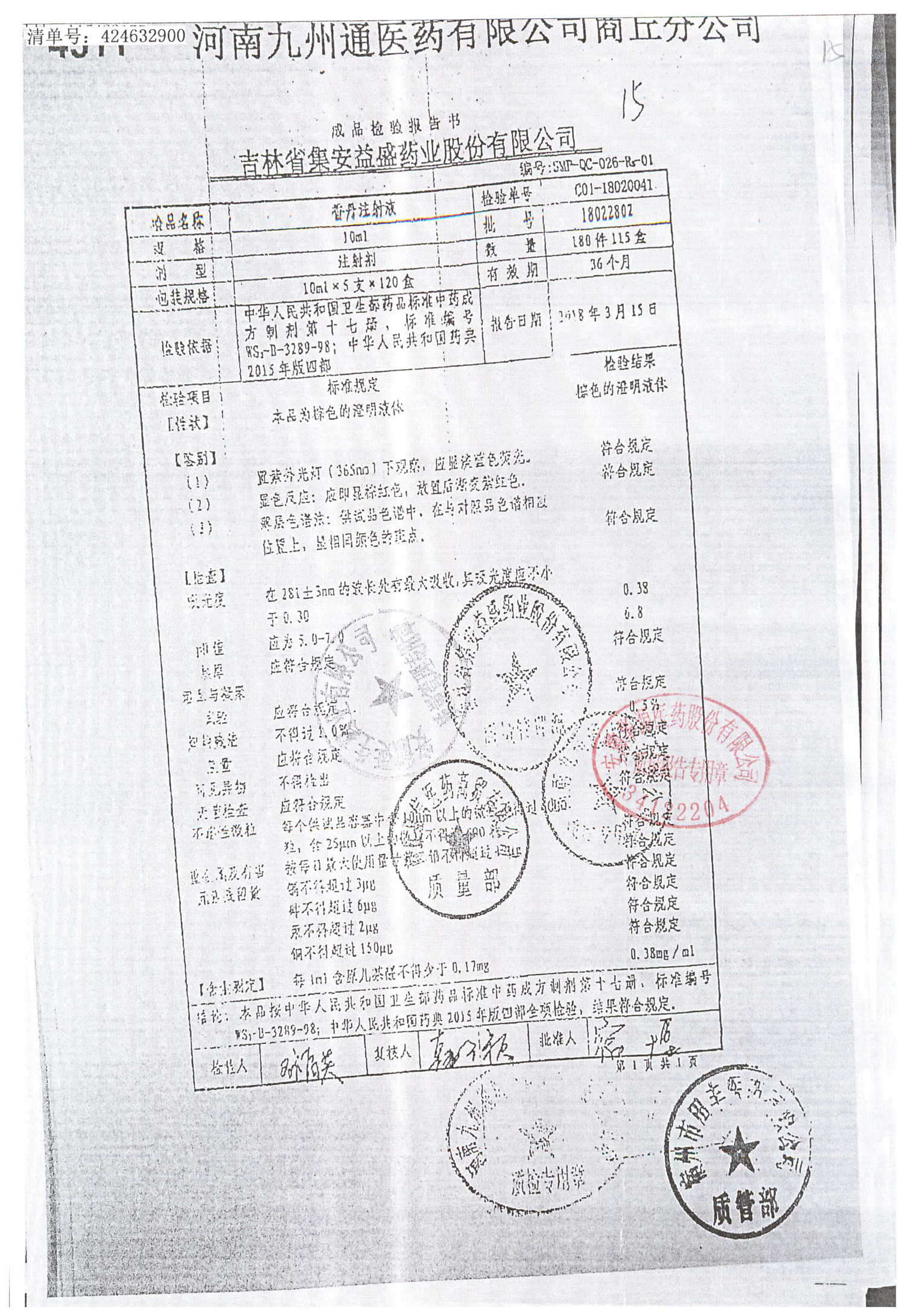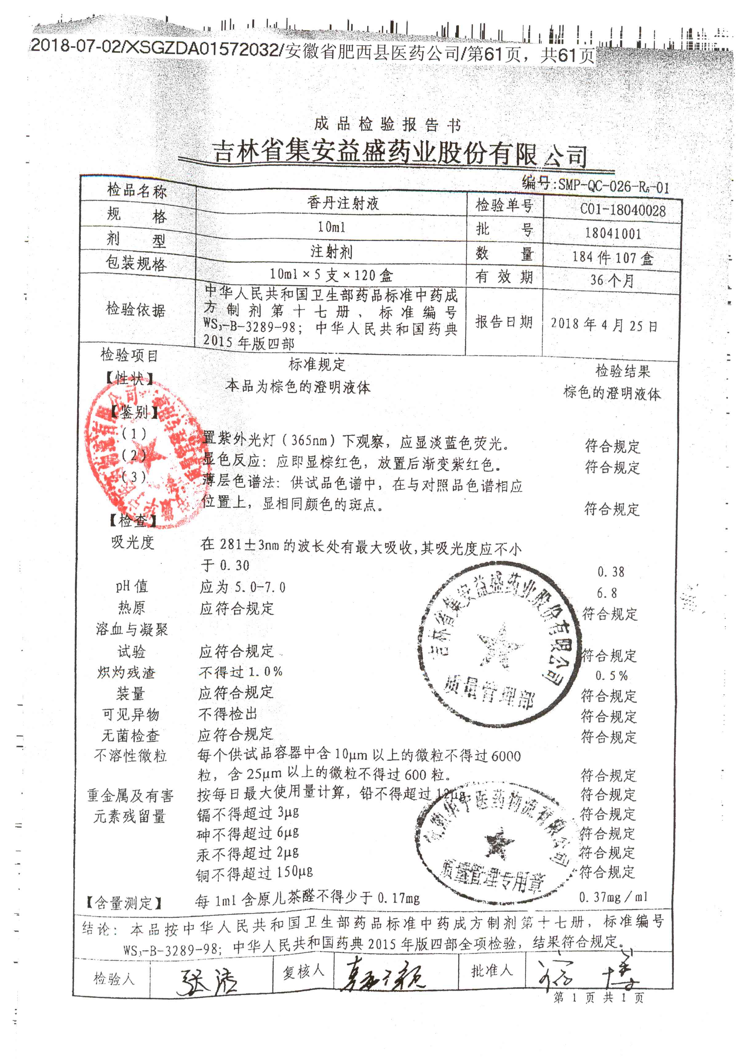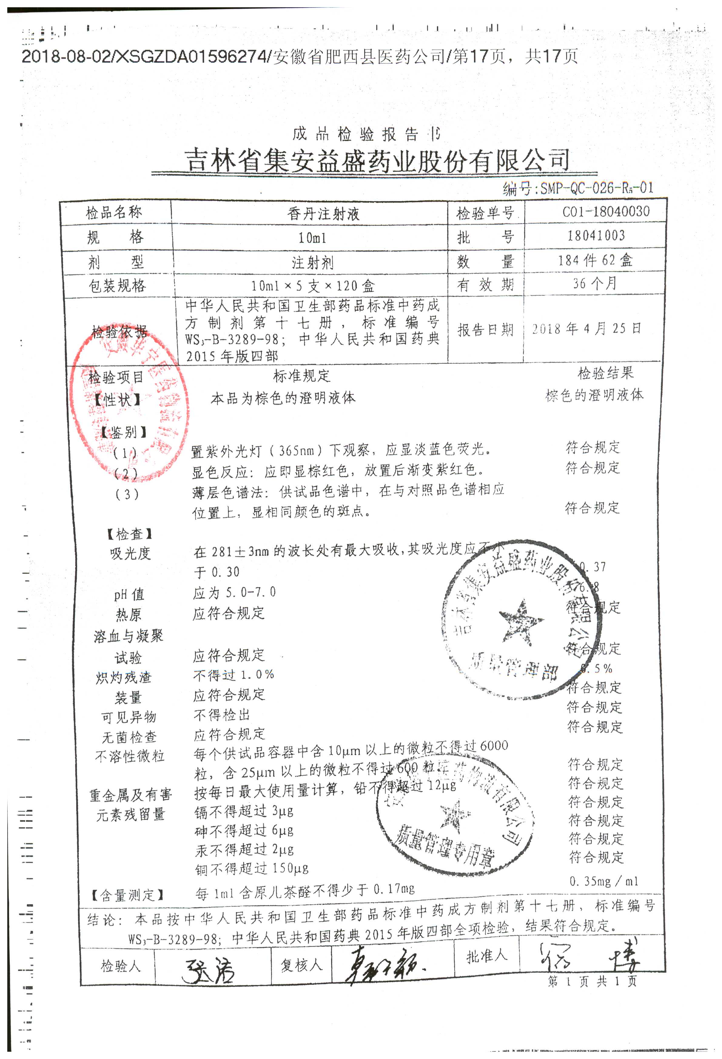 | 香丹注射液 | 10ml*5支 | 18041003 | 查看詳情 |