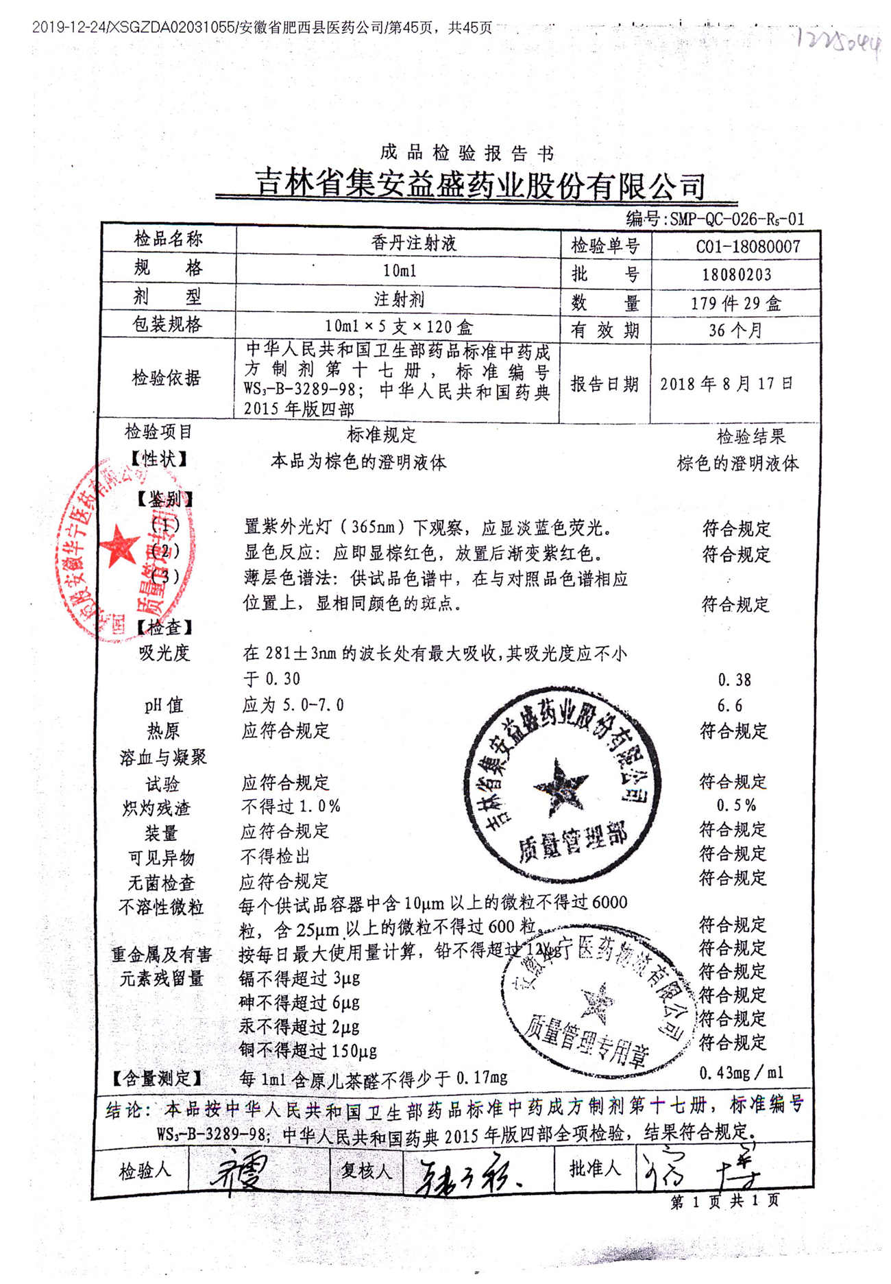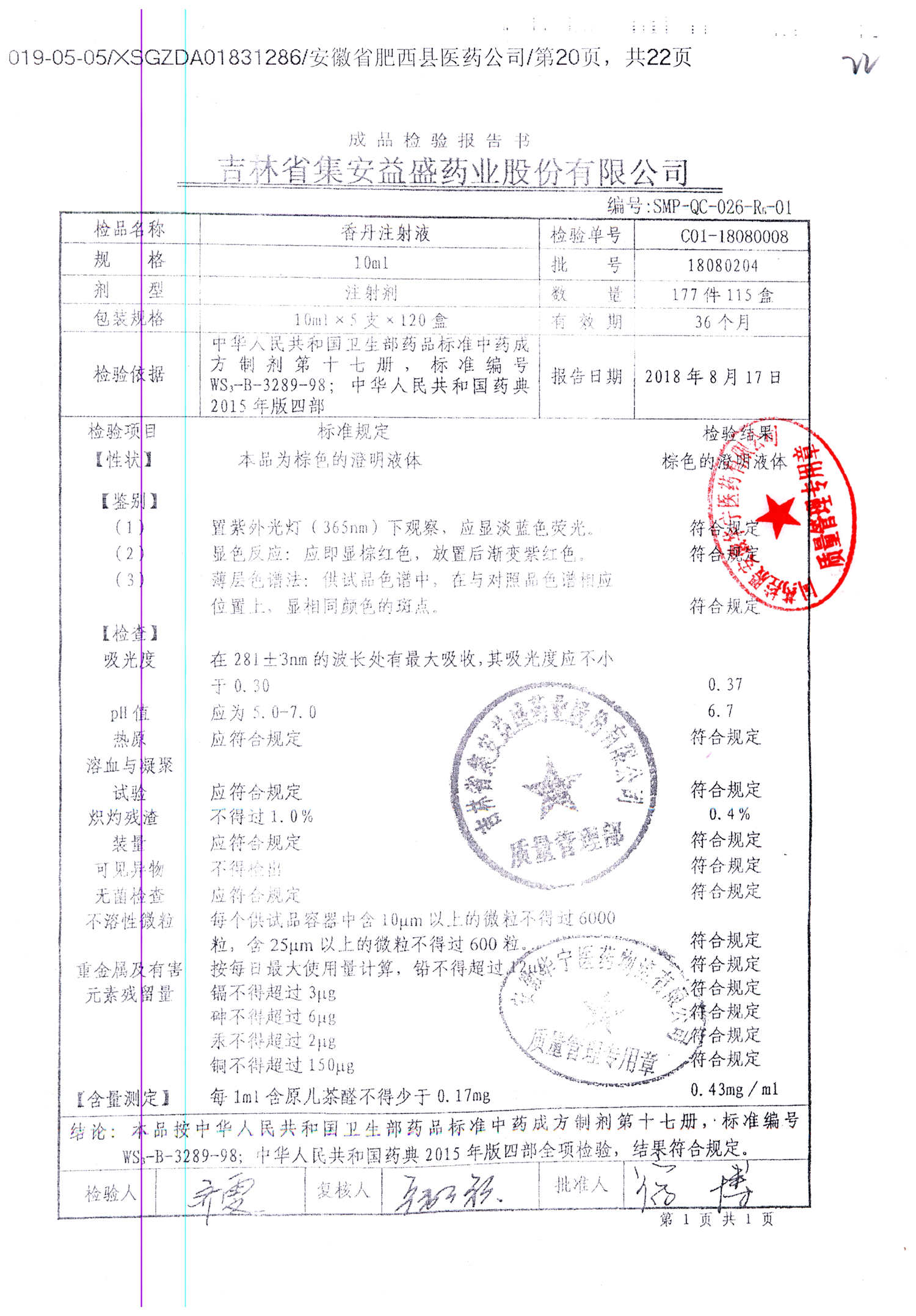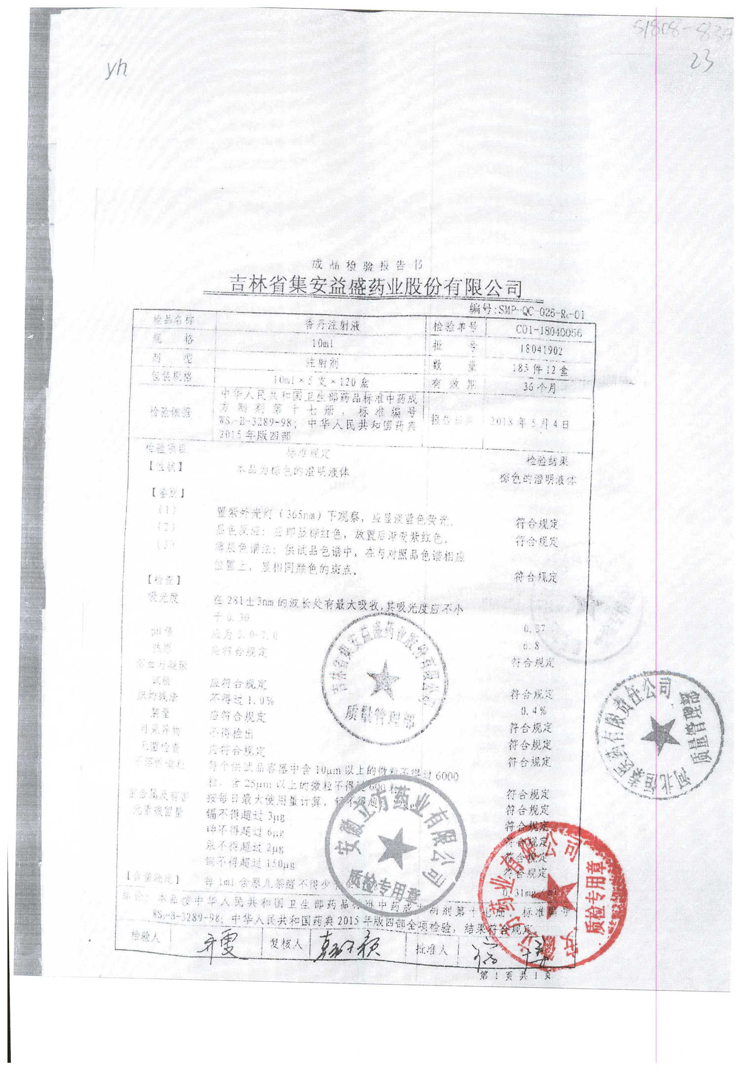 | 香丹注射液 | 10ml*5支 | 18041003 | 查看詳情 |