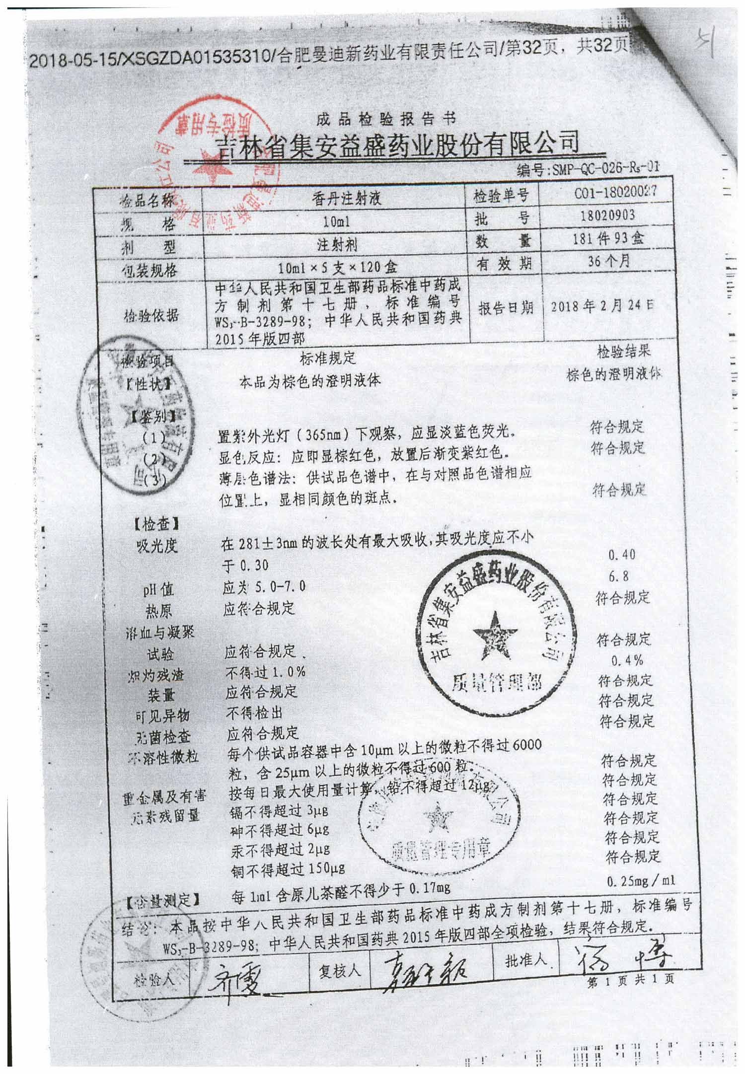 | 香丹注射液 | 10ml*5支 | 18020903 | 查看詳情 |