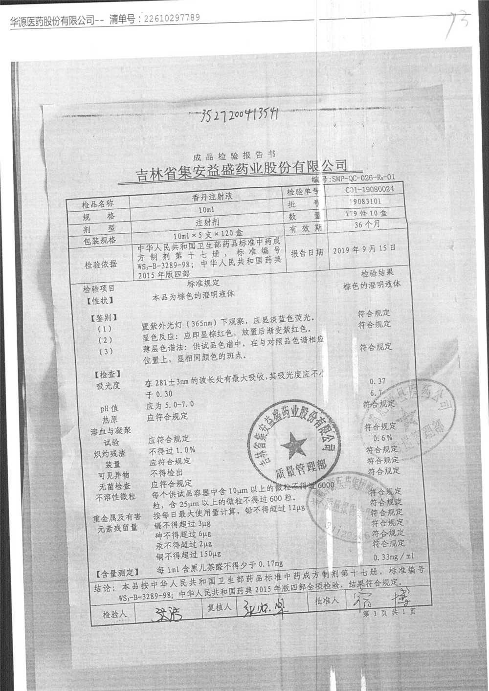 | 香丹注射液 | 10ml*5支 | 21090502 | 查看詳情 |
