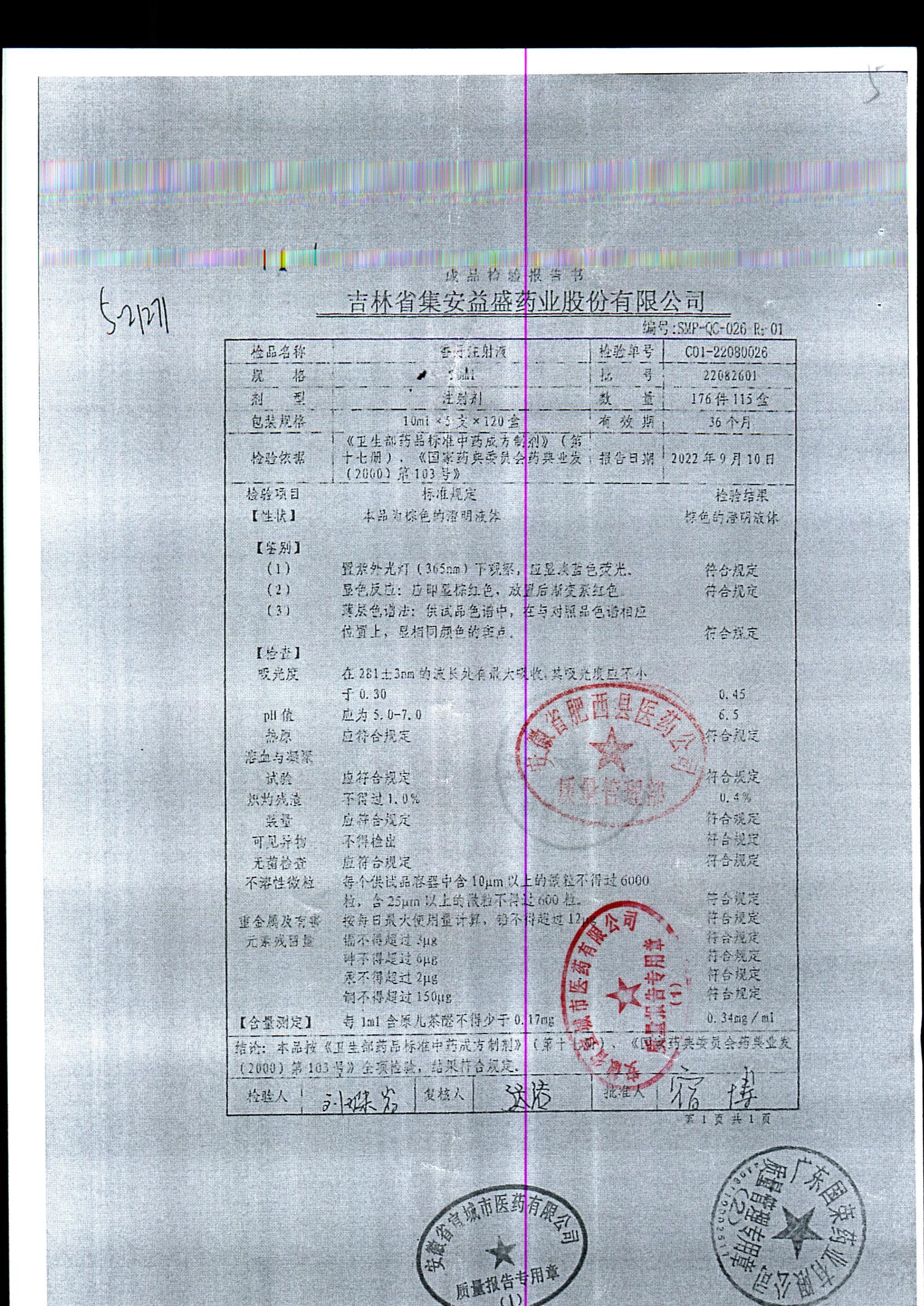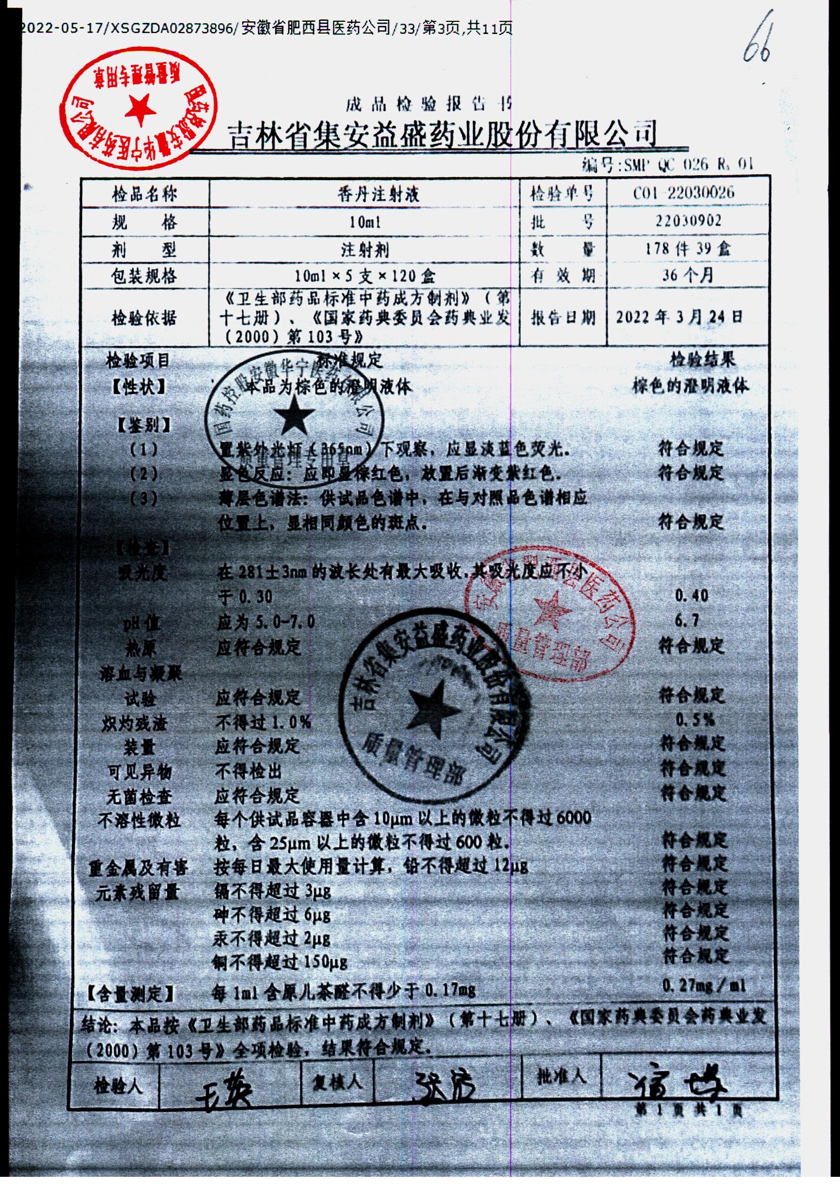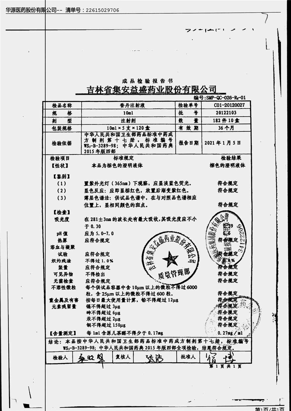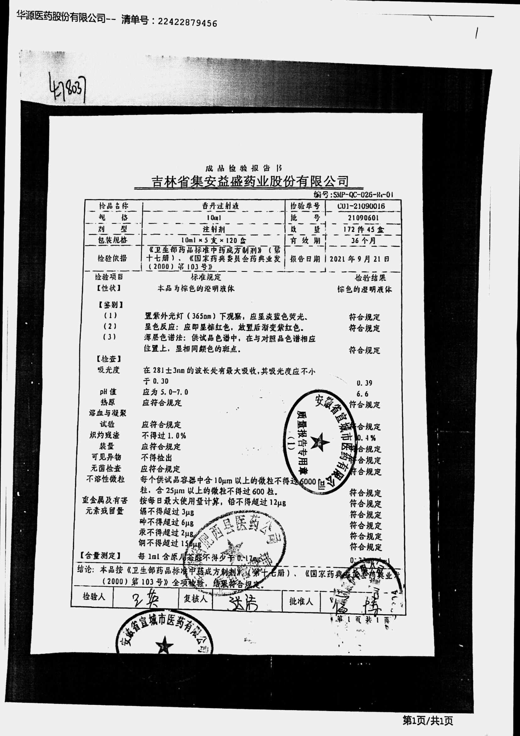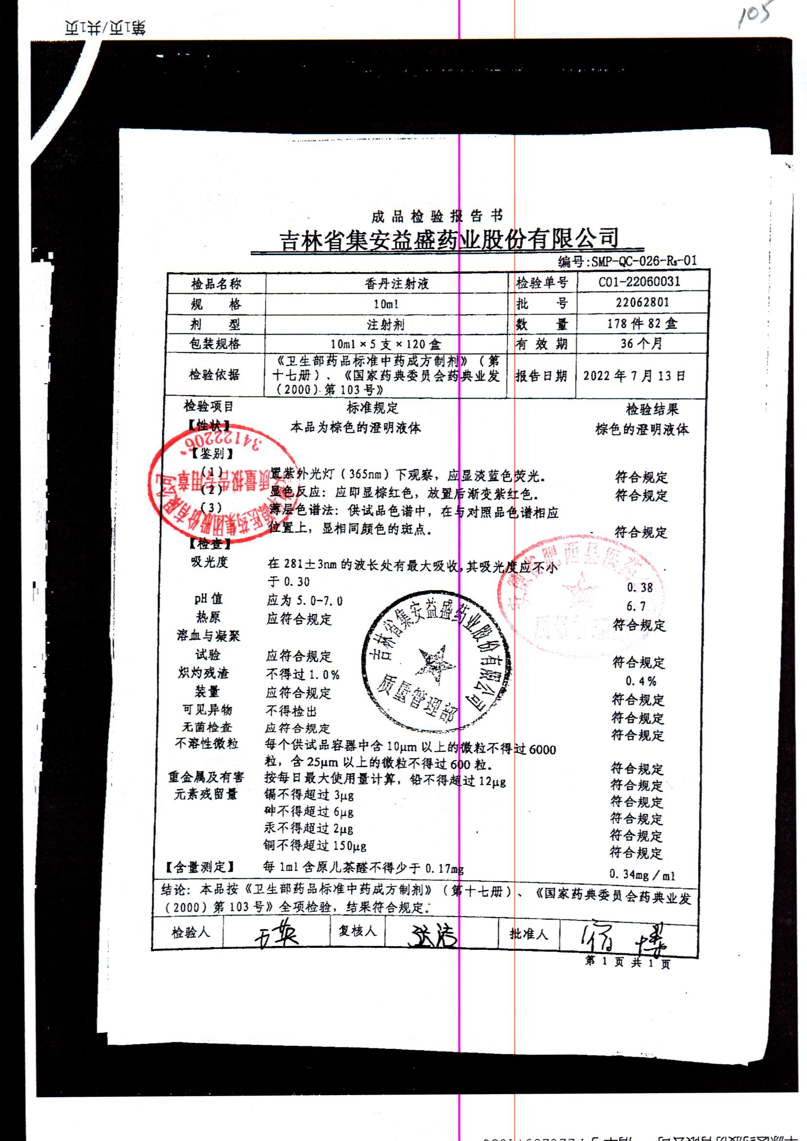 | 香丹注射液 | 10ml*5支 | 21090601 | 查看詳情 |