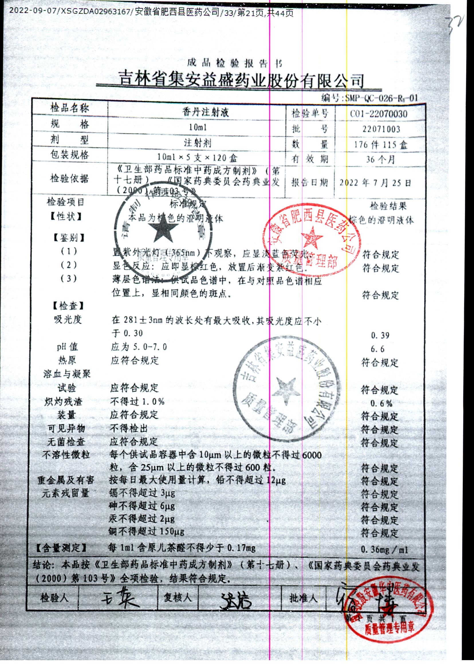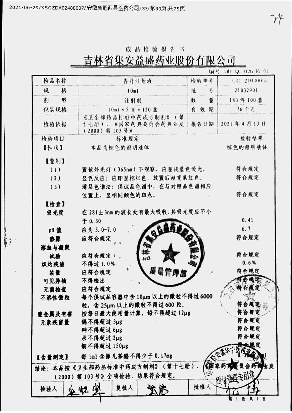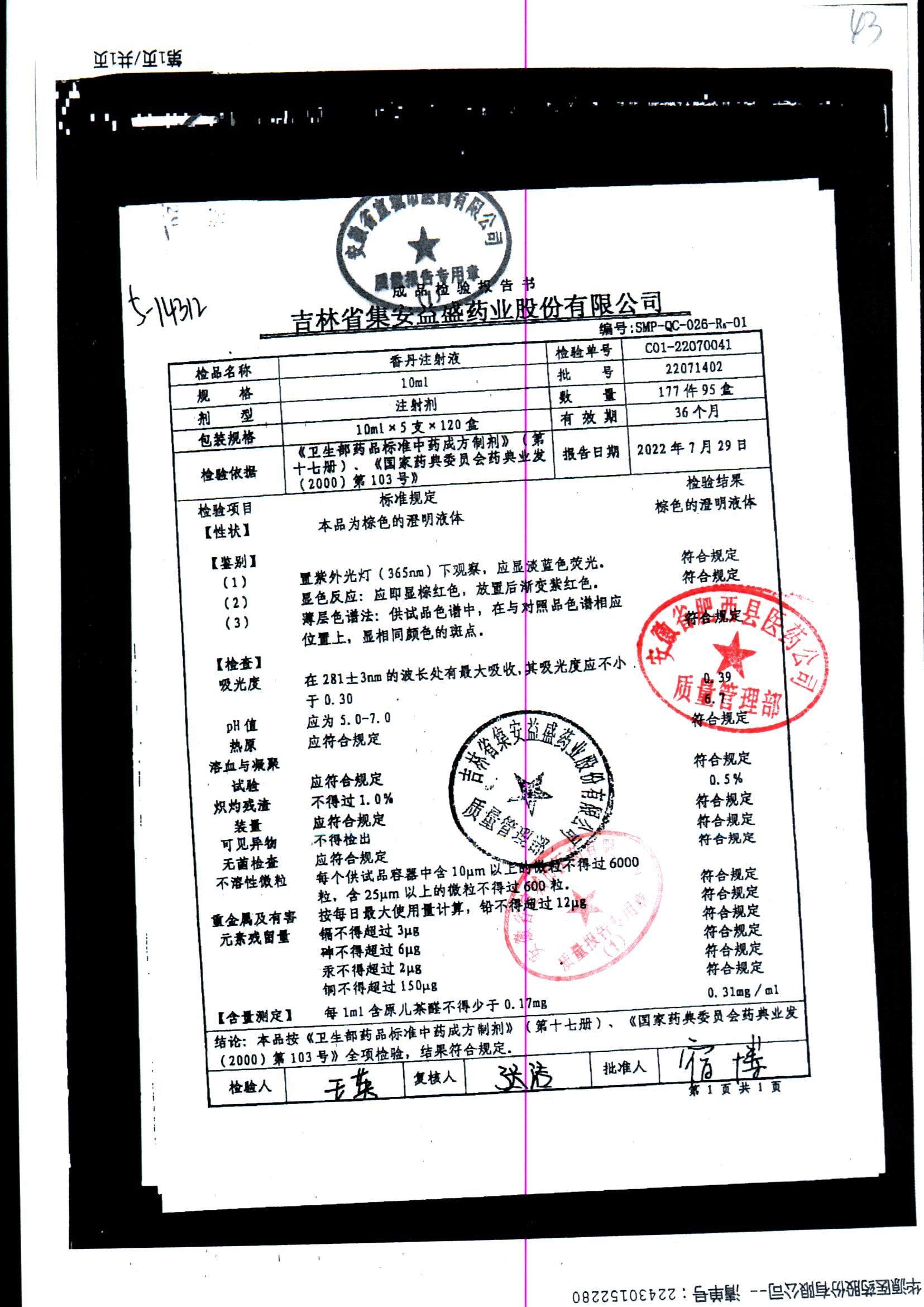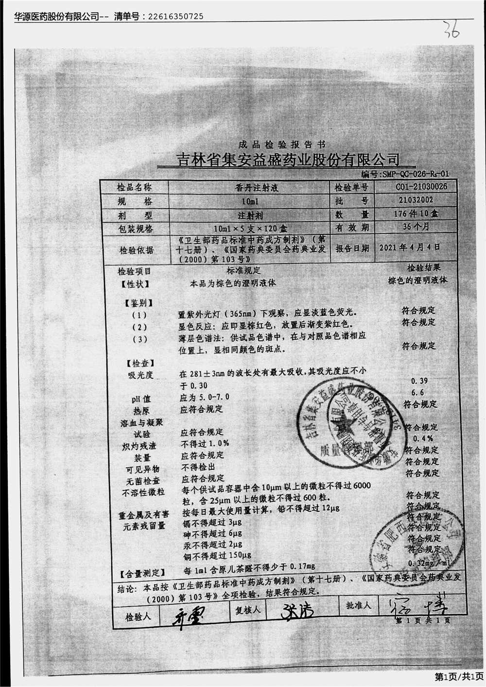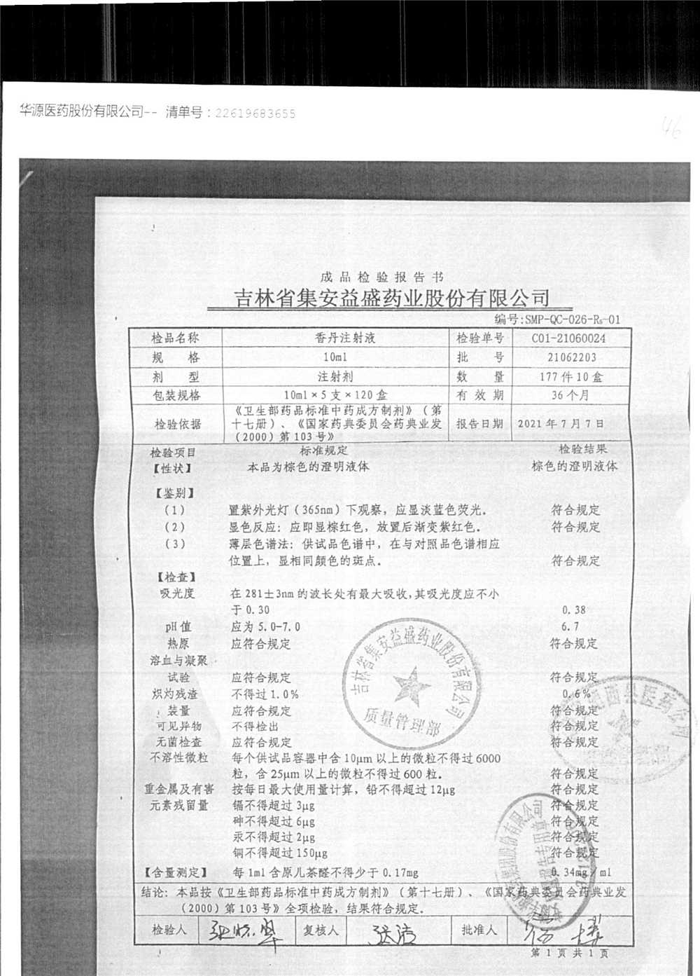 | 香丹注射液 | 10ml*5支 | 21090601 | 查看詳情 |