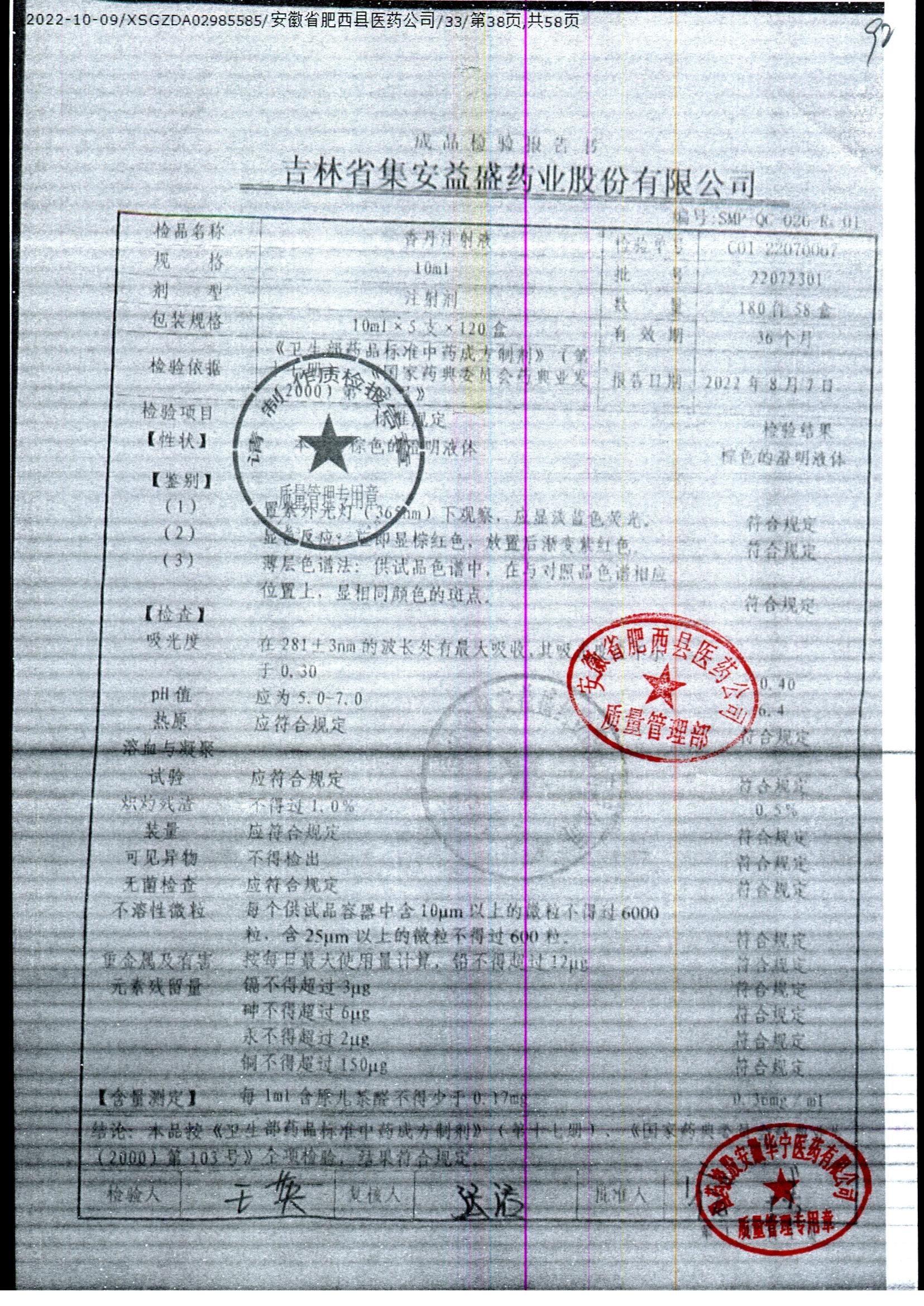 | 香丹注射液 | 10ml*5支 | 22030902 | 查看詳情 |