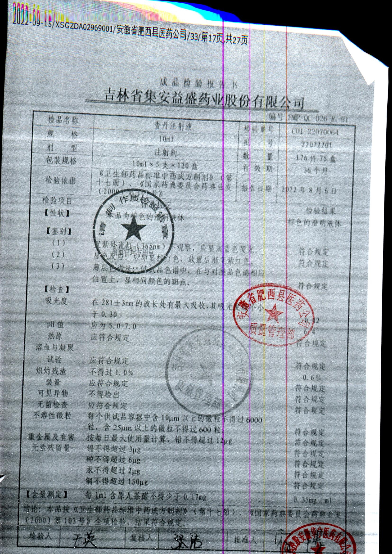 | 香丹注射液 | 10ml*5支 | 22022802 | 查看詳情 |