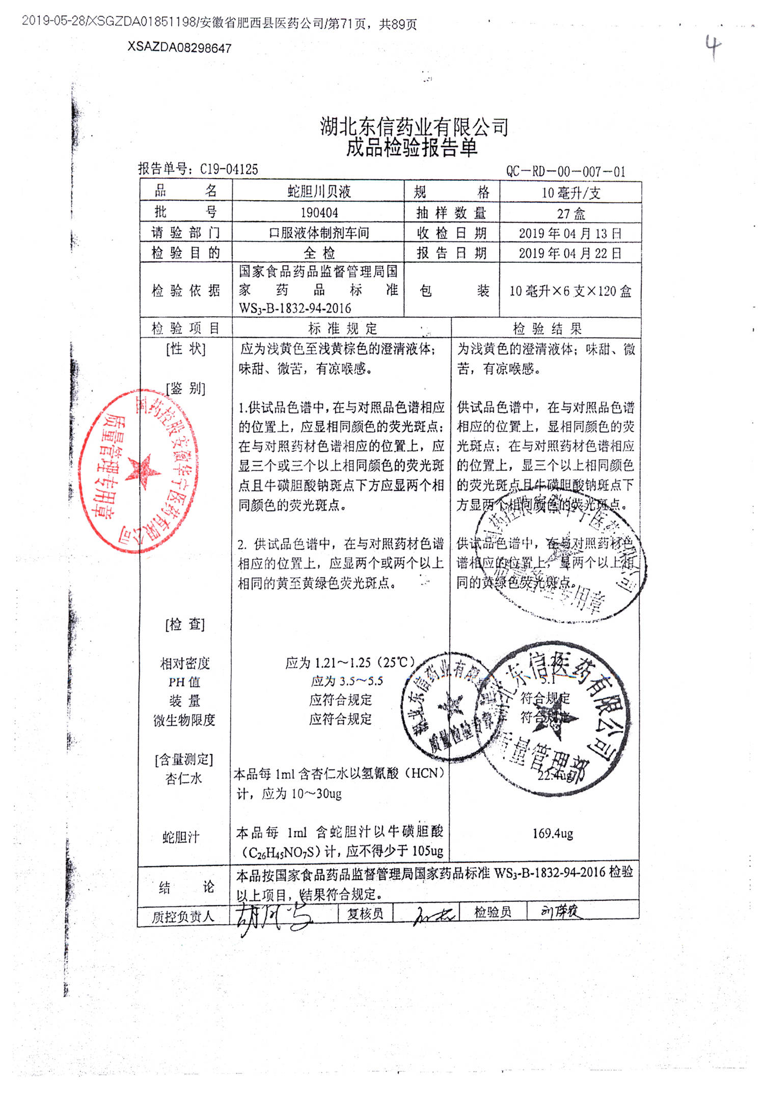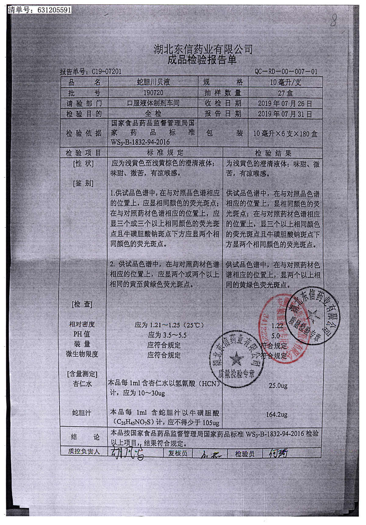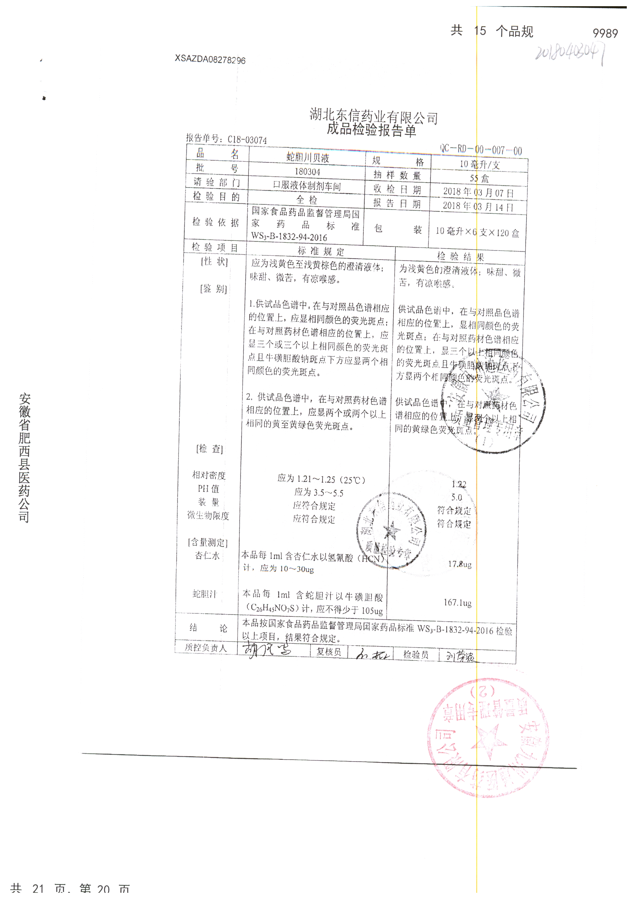 | 名稱 | 規(guī)格 | 批號(hào) | 藥檢報(bào)告 |
