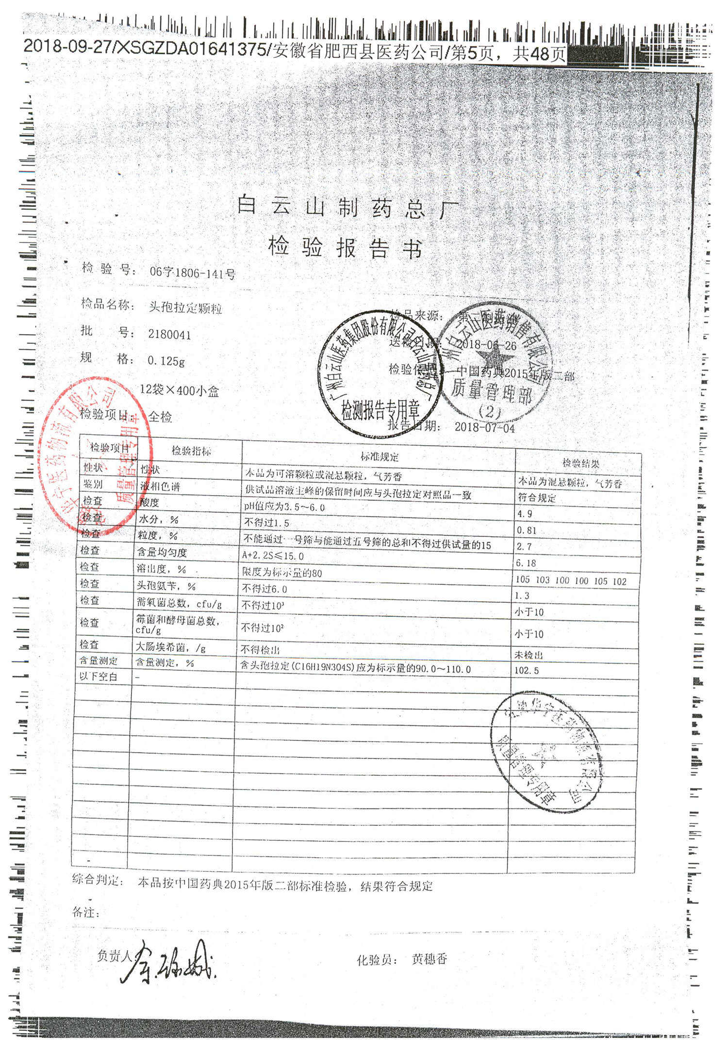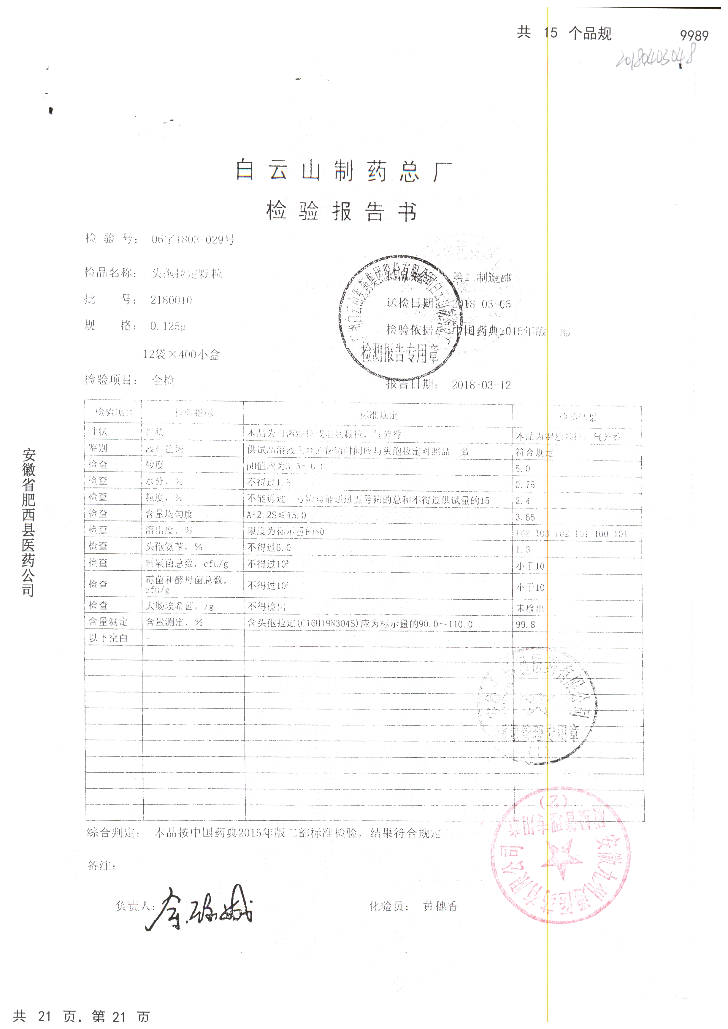 | 名稱 | 規(guī)格 | 批號 | 藥檢報告 |