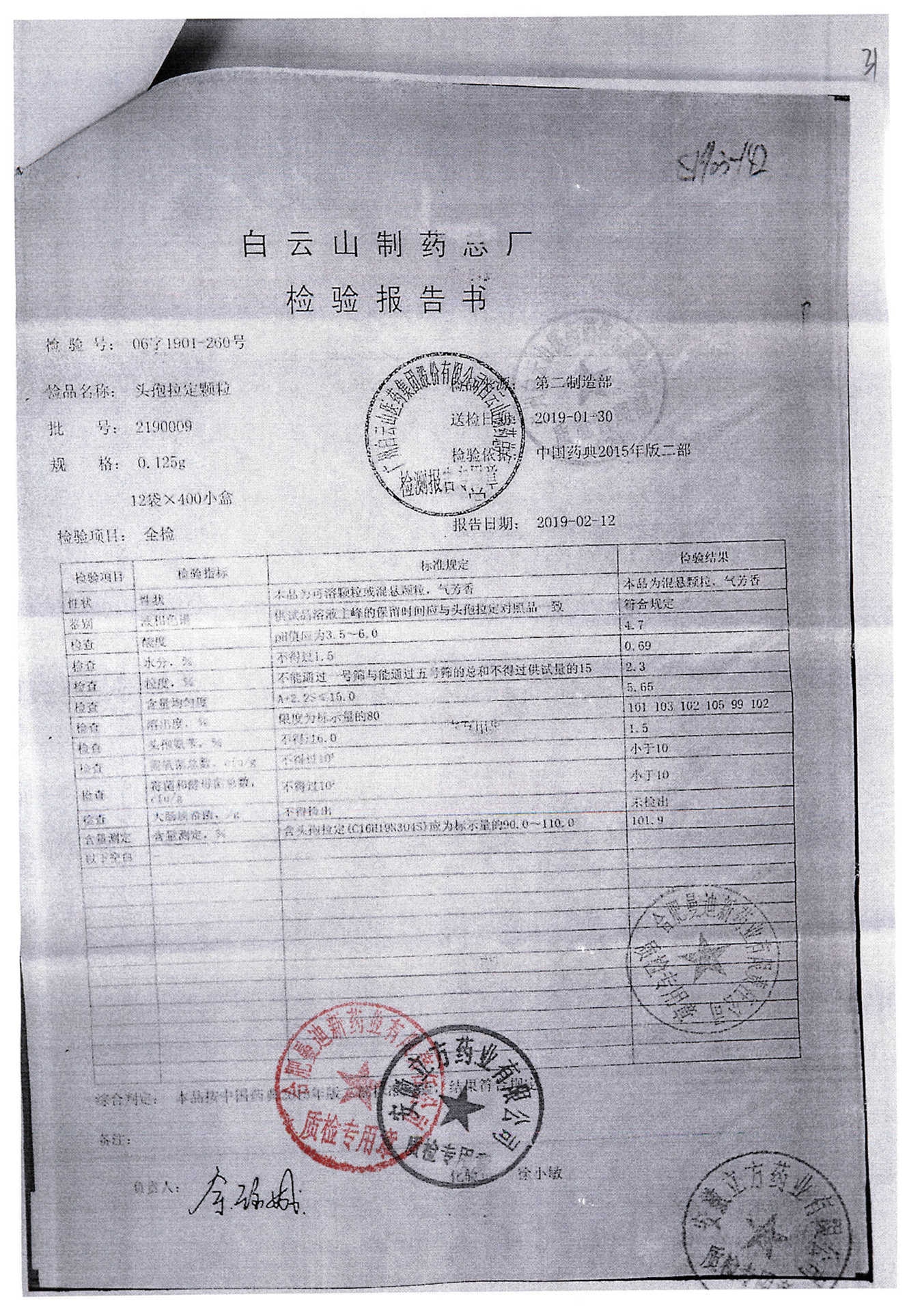 | 頭孢拉定顆粒 | 0.125g*12袋 | 20190063 | 查看詳情 |