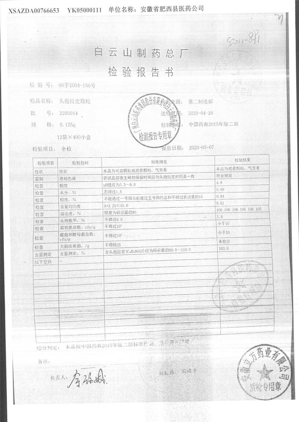 | 頭孢拉定顆粒 | 0.125g*12袋 | 2220049 | 查看詳情 |