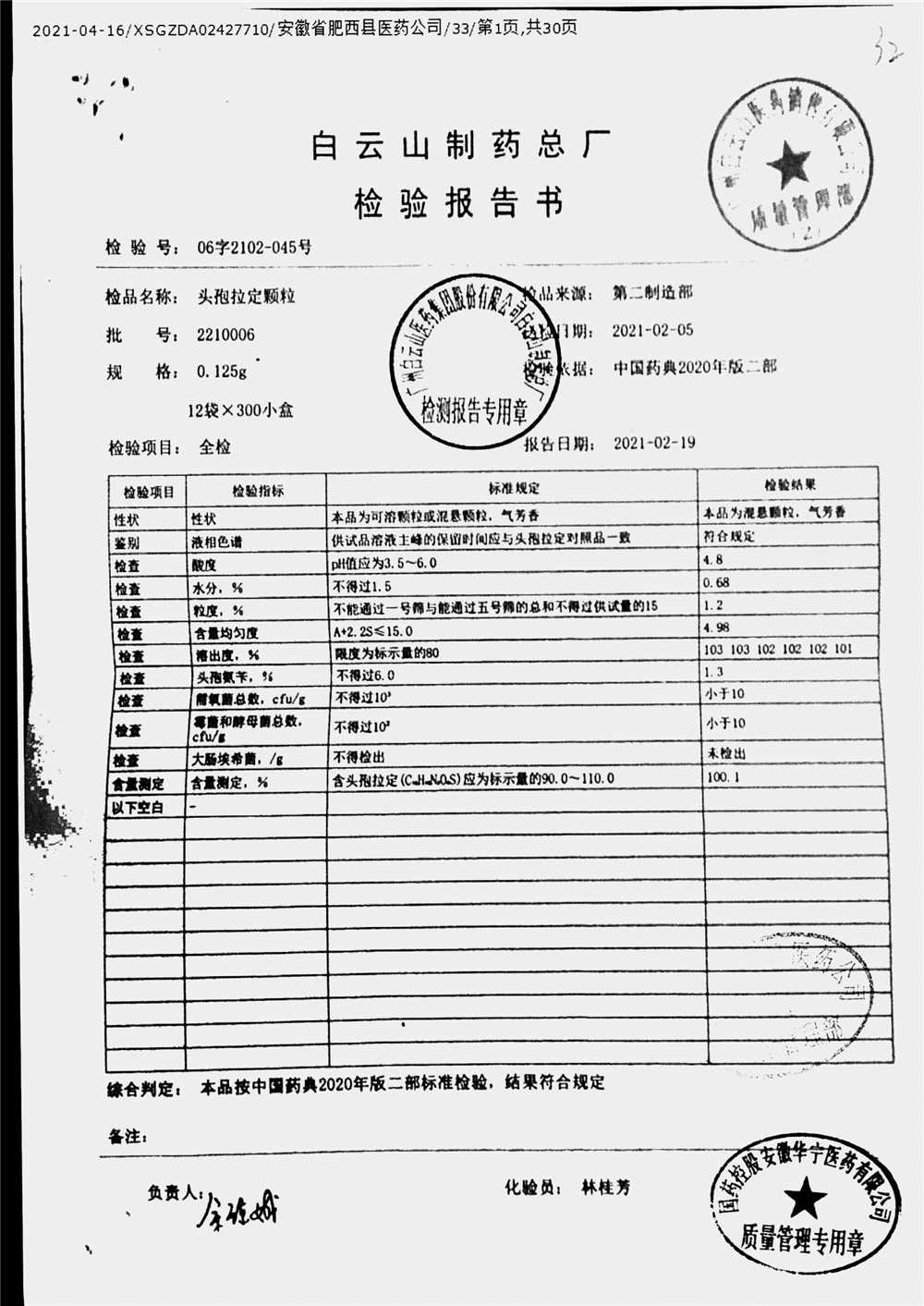 | 頭孢拉定顆粒 | 0.125g*12袋 | 2220031 | 查看詳情 |