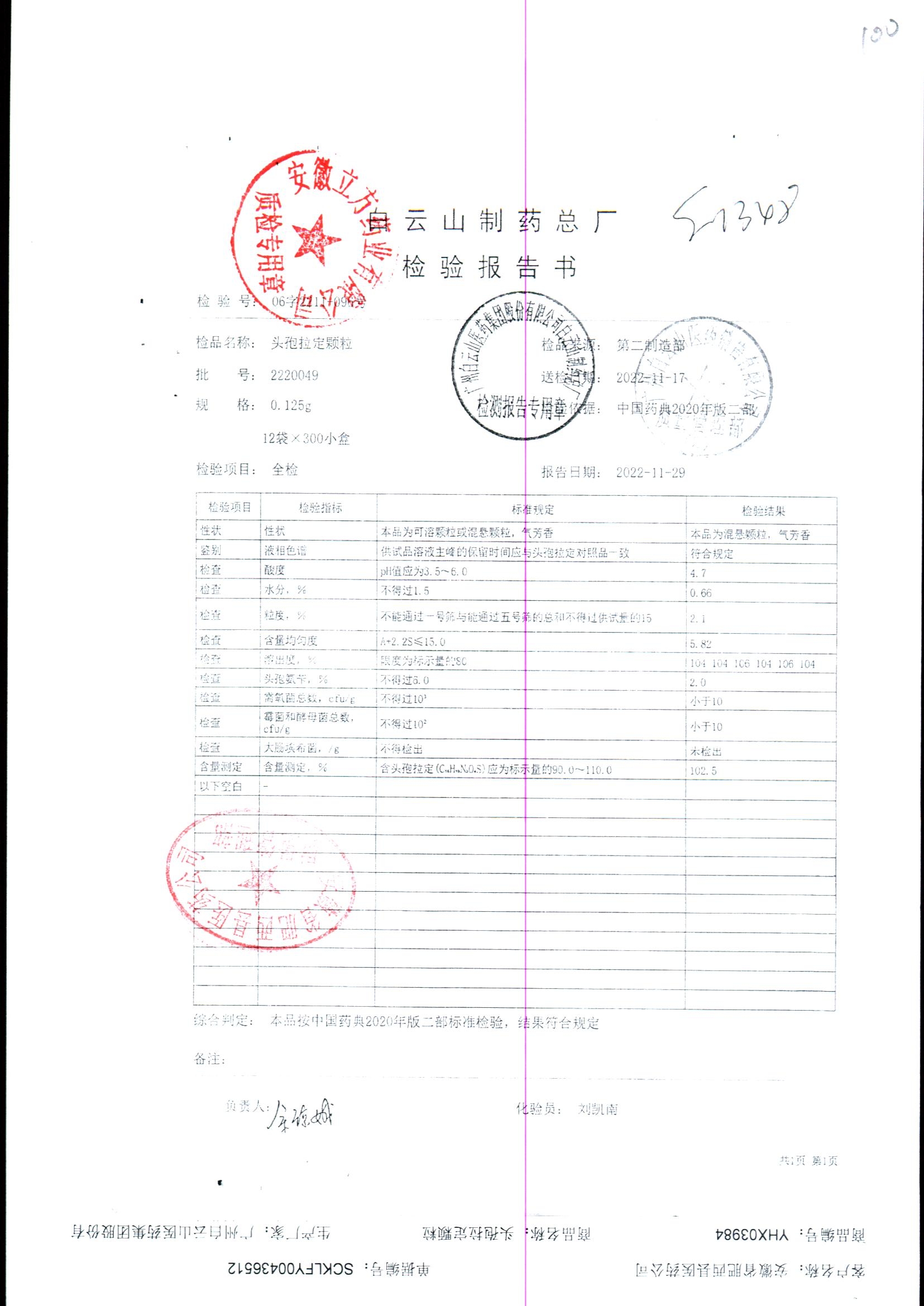 | 頭孢拉定顆粒 | 0.125g*12袋 | 2220033 | 查看詳情 |