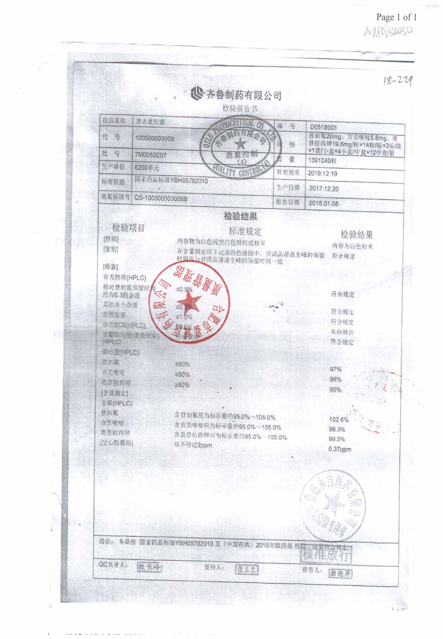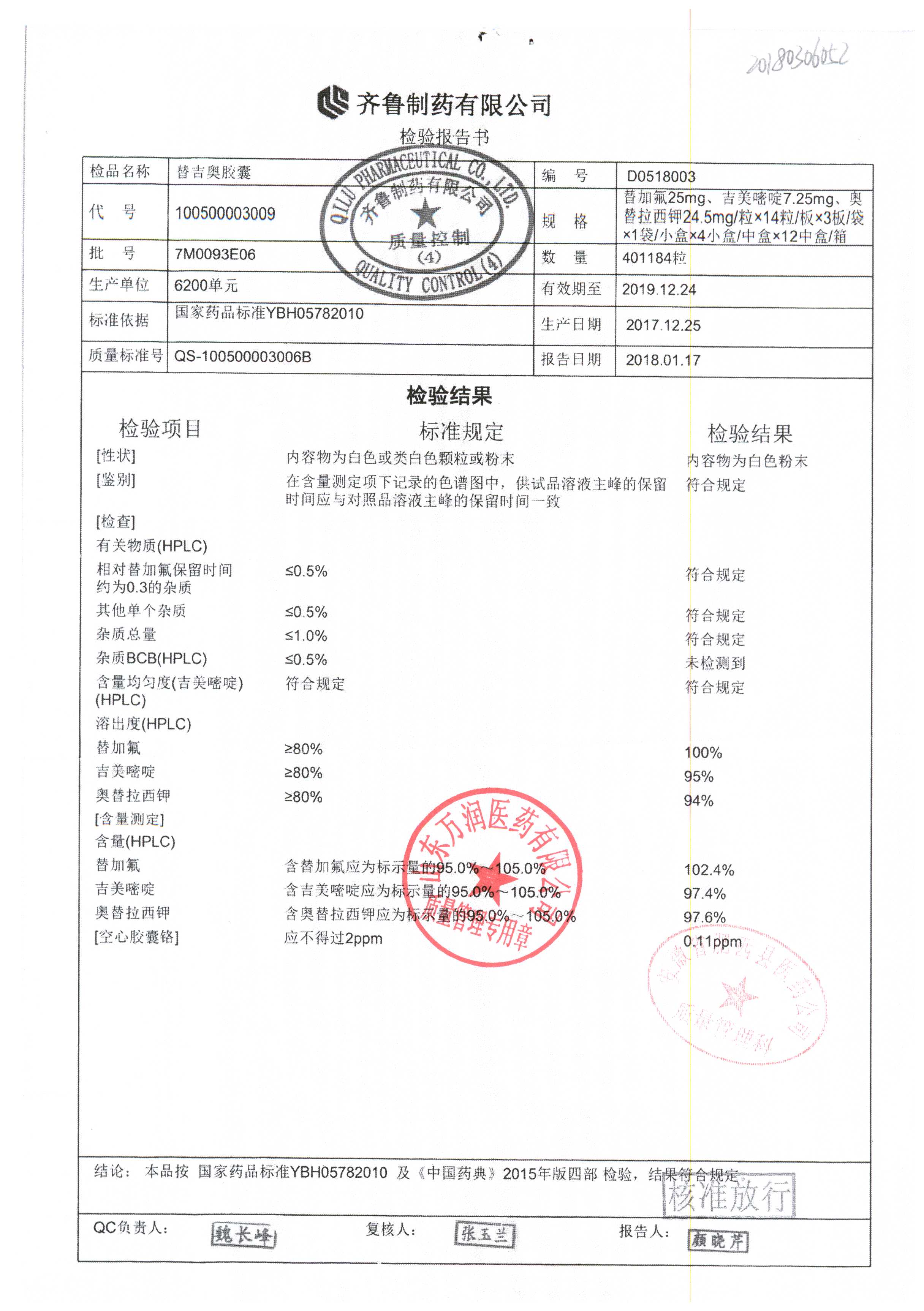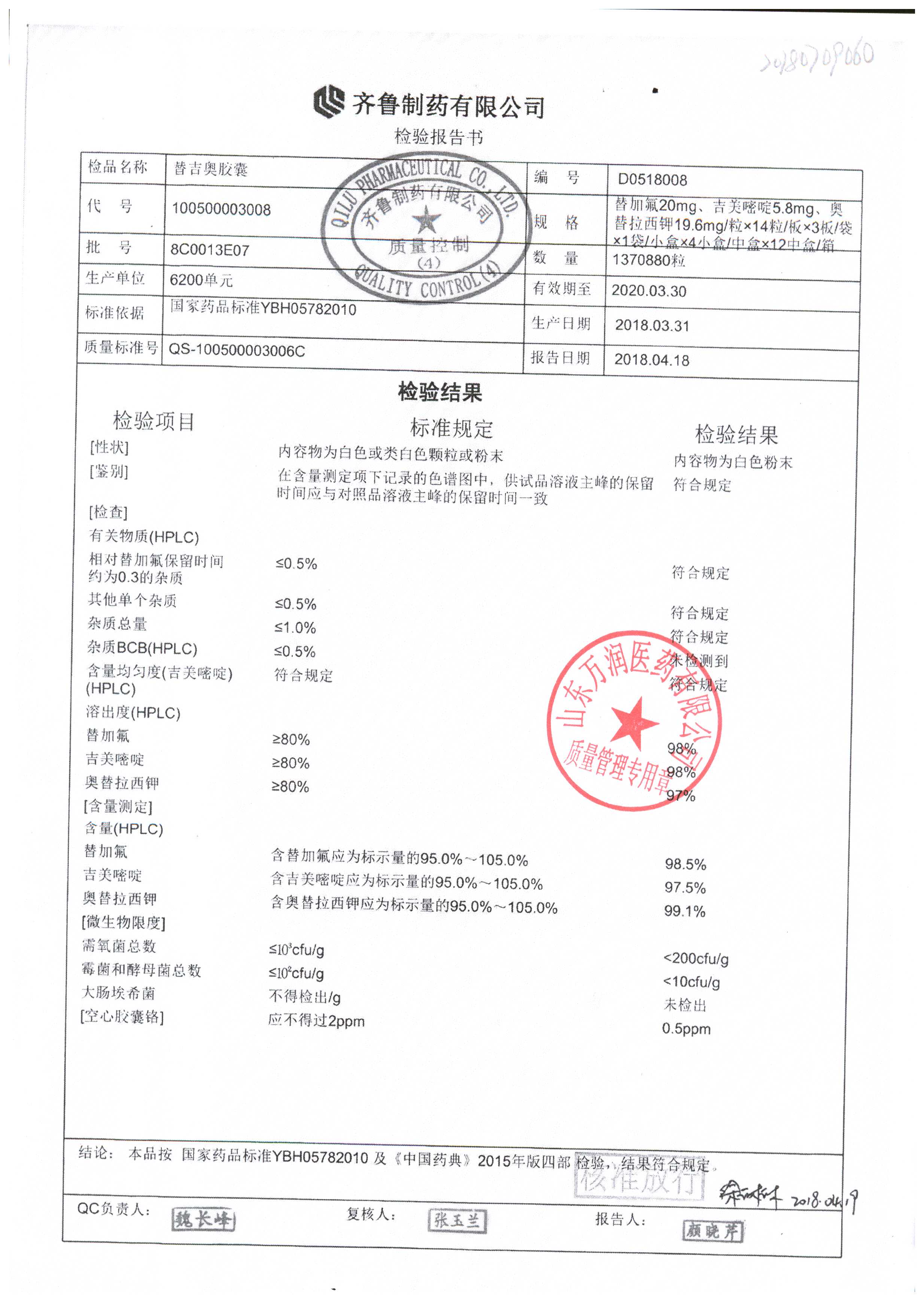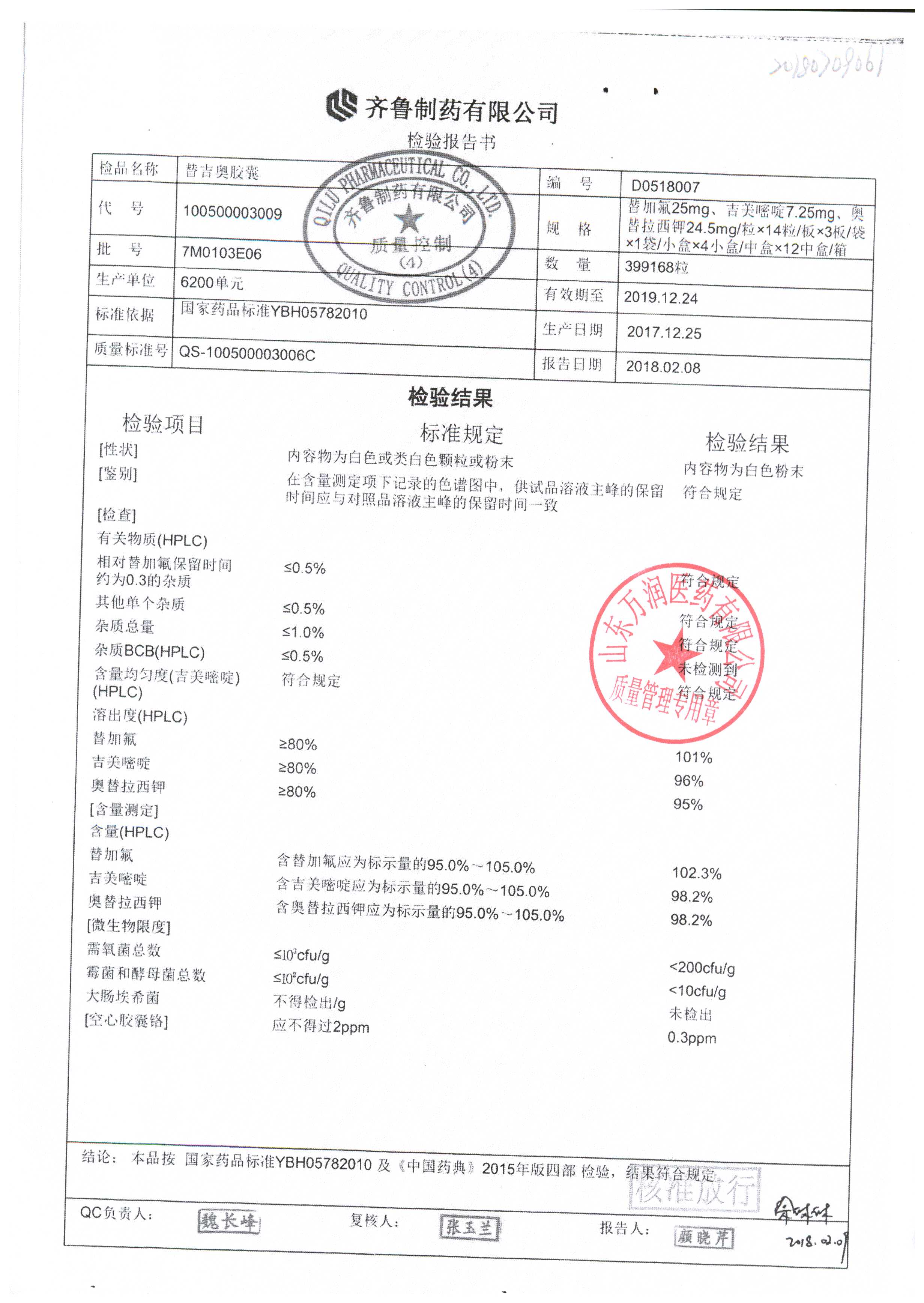 | 名稱 | 規(guī)格 | 批號(hào) | 藥檢報(bào)告 |