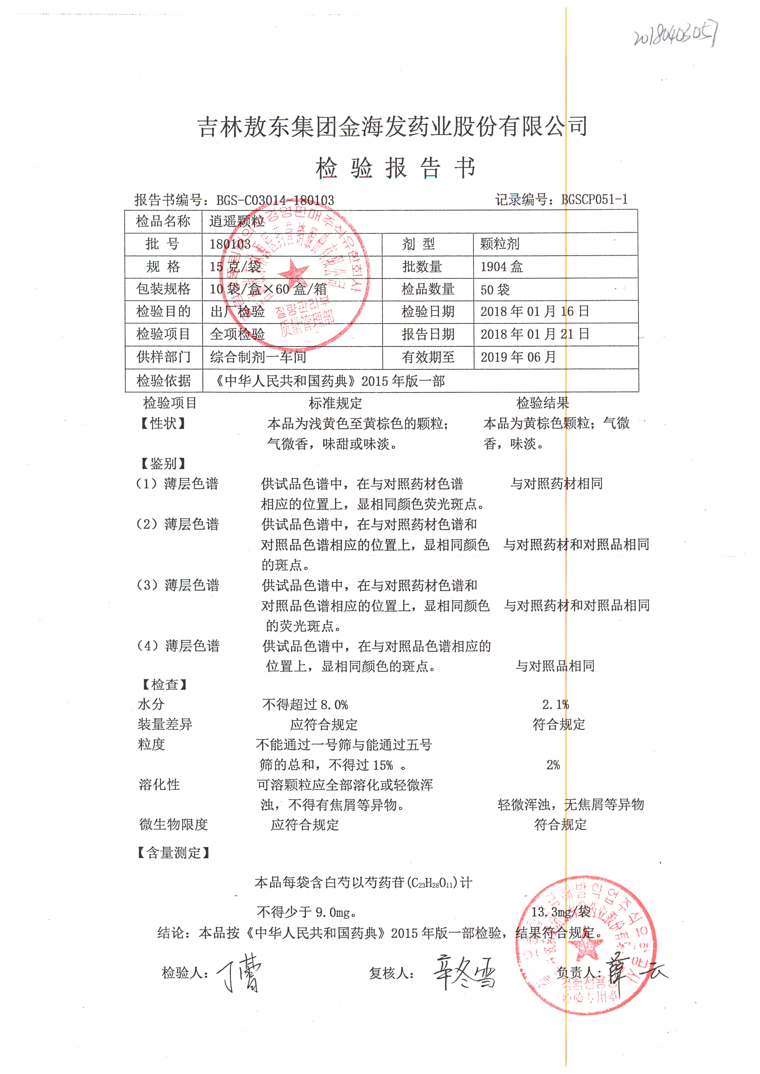 | 名稱 | 規(guī)格 | 批號(hào) | 藥檢報(bào)告 |