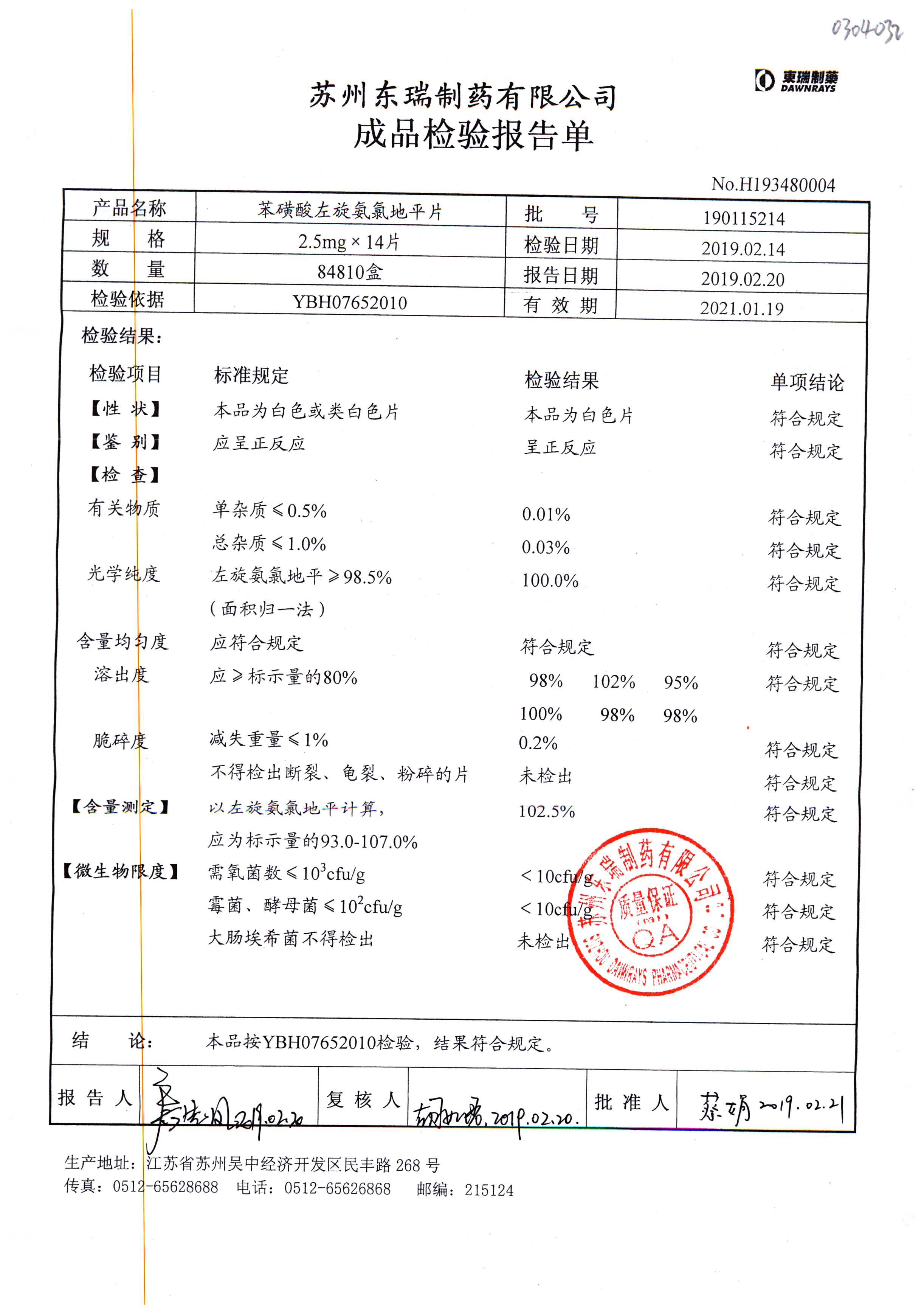 苯磺酸左旋氨氯地平片 2.5mg*14片 190115214 查看詳情