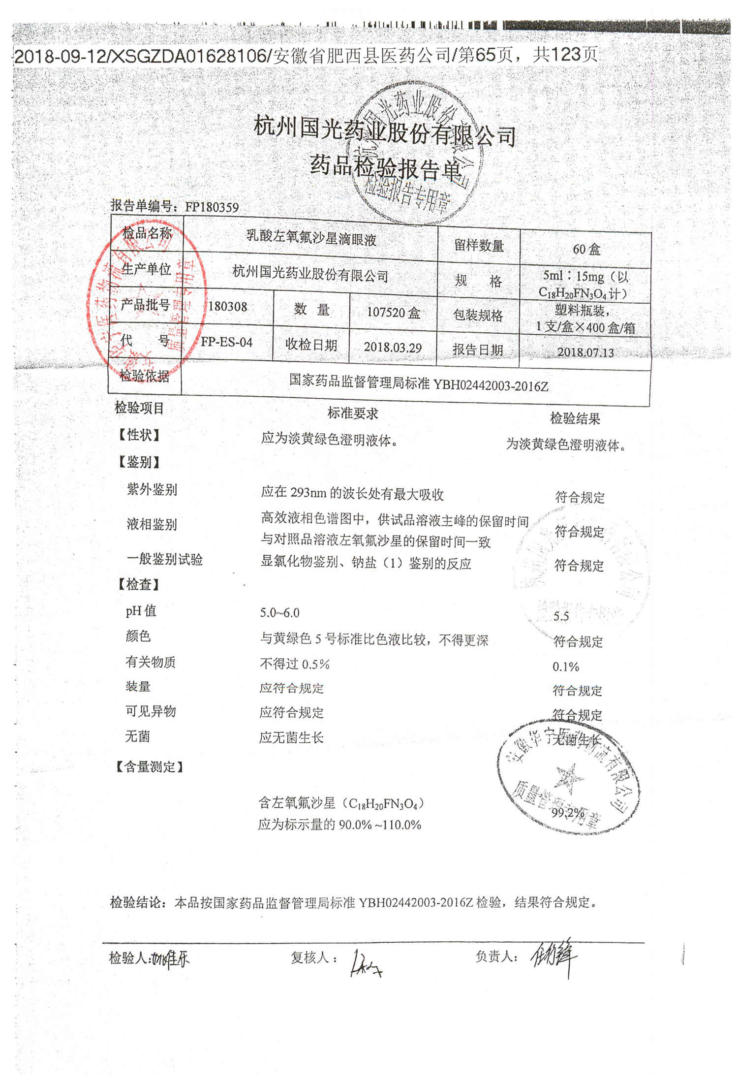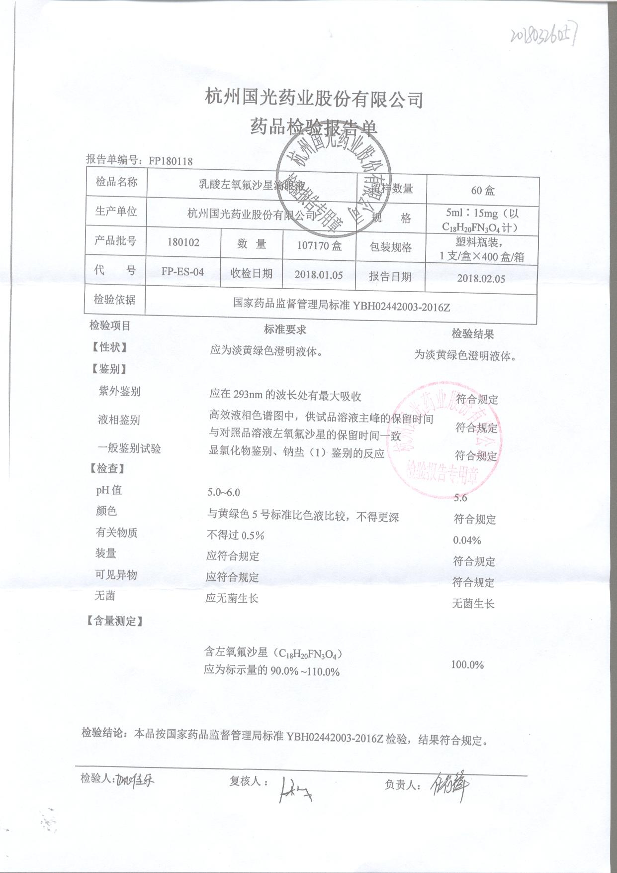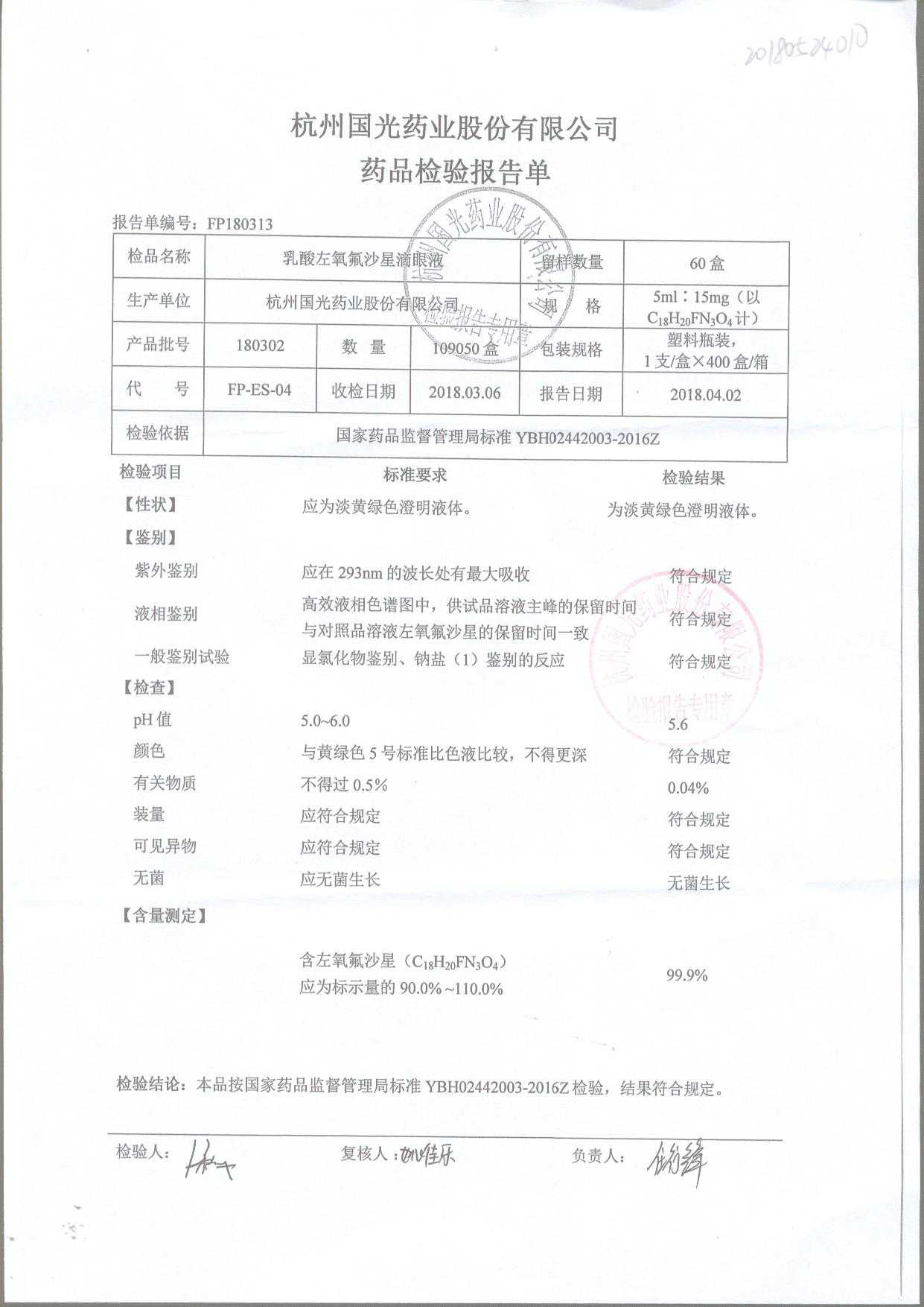 | 乳酸左氧氟沙星滴眼液 | 5ml:15mg | 180201 | 查看詳情 |