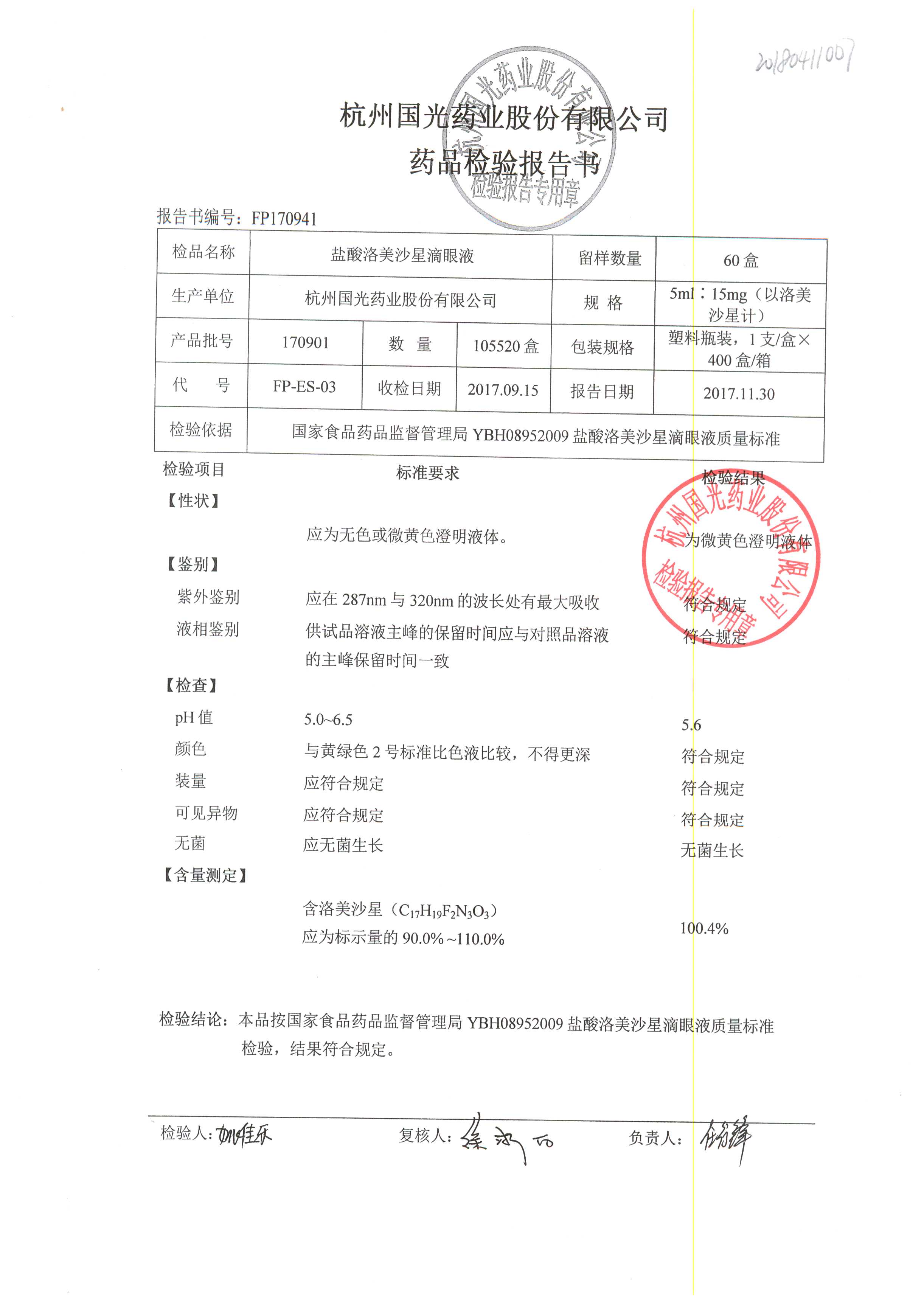 鹽酸洛美沙星滴眼液 5ml:15mg 170901 查看詳情