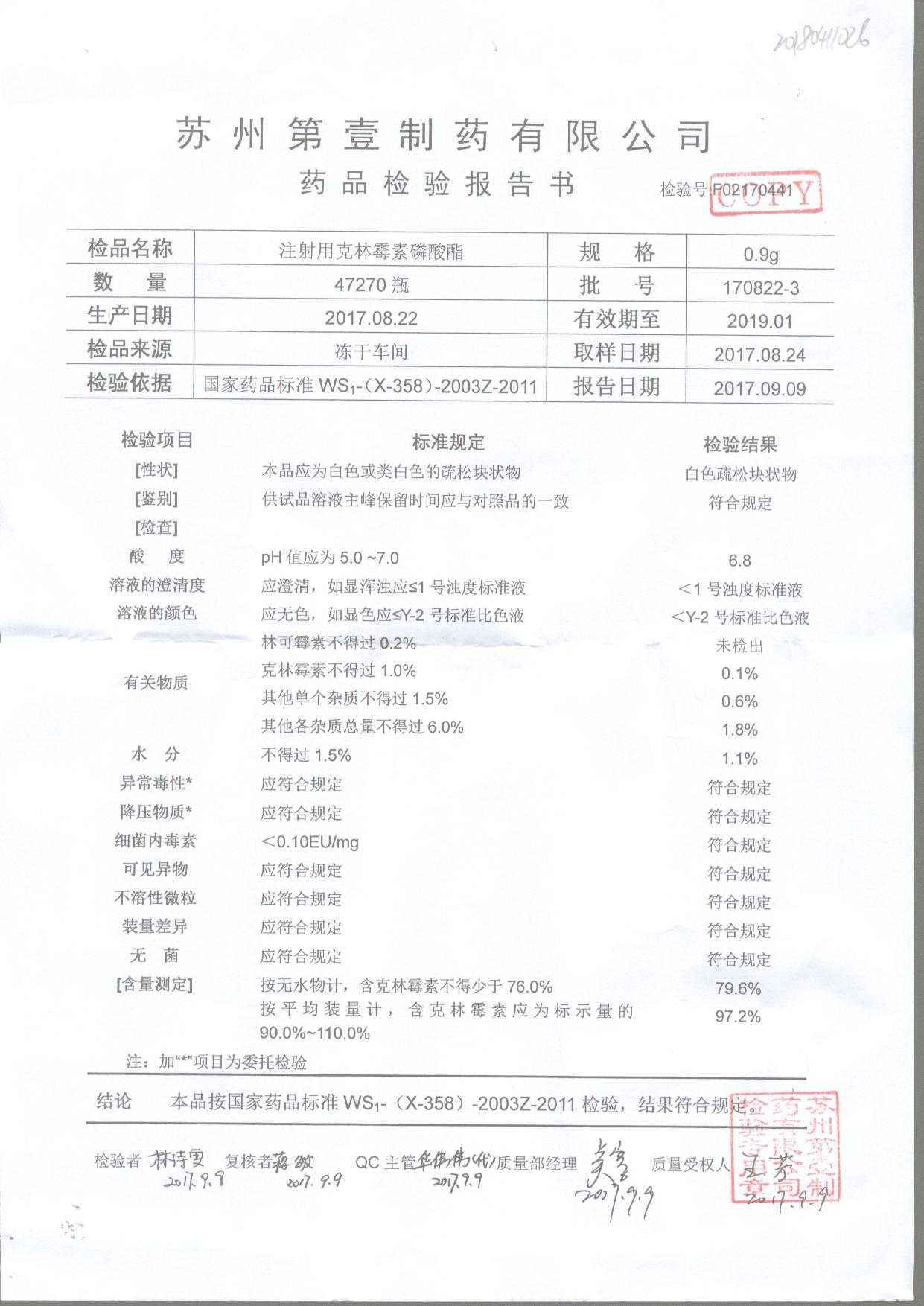 注射用克林霉素磷酸酯 0.9g 170822-3 查看詳情