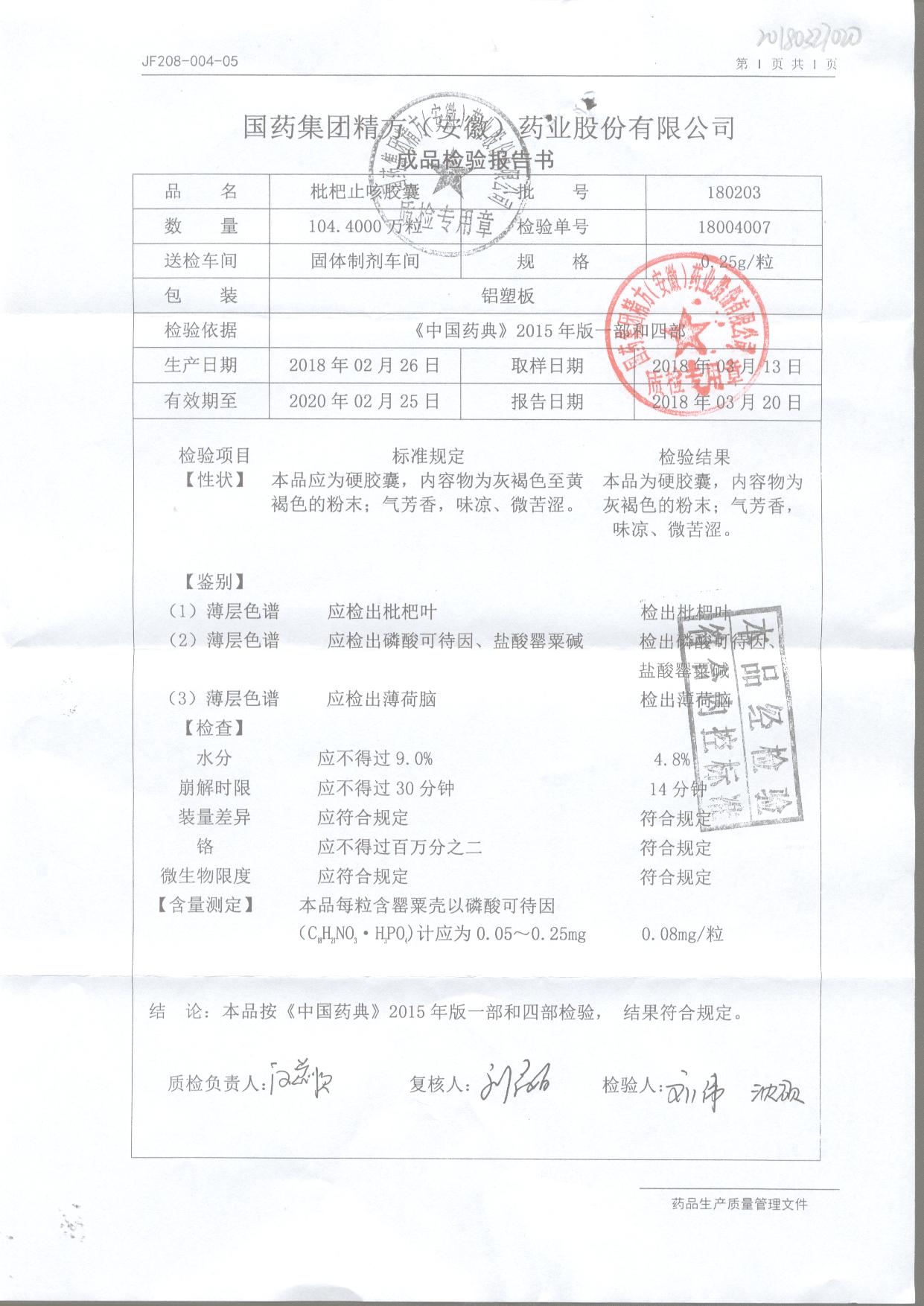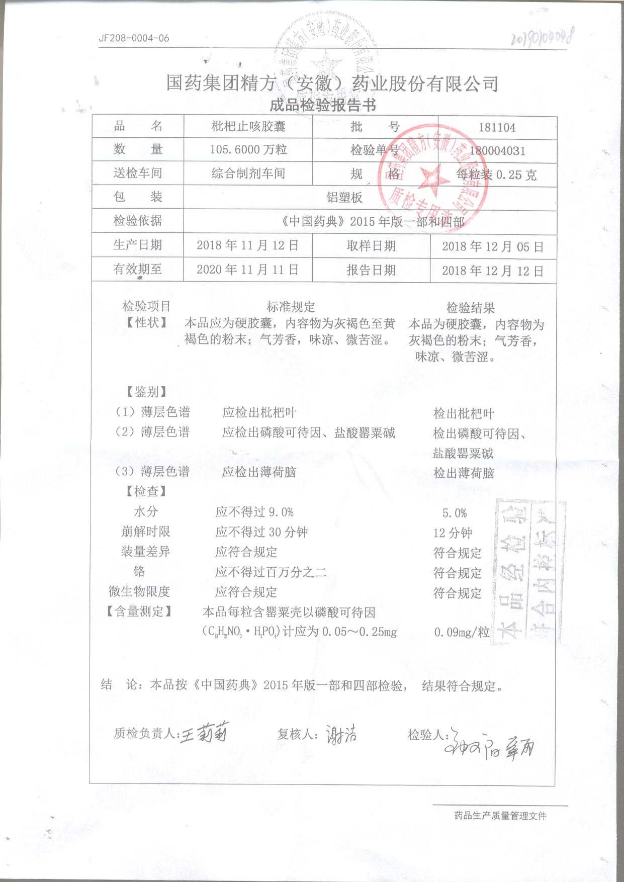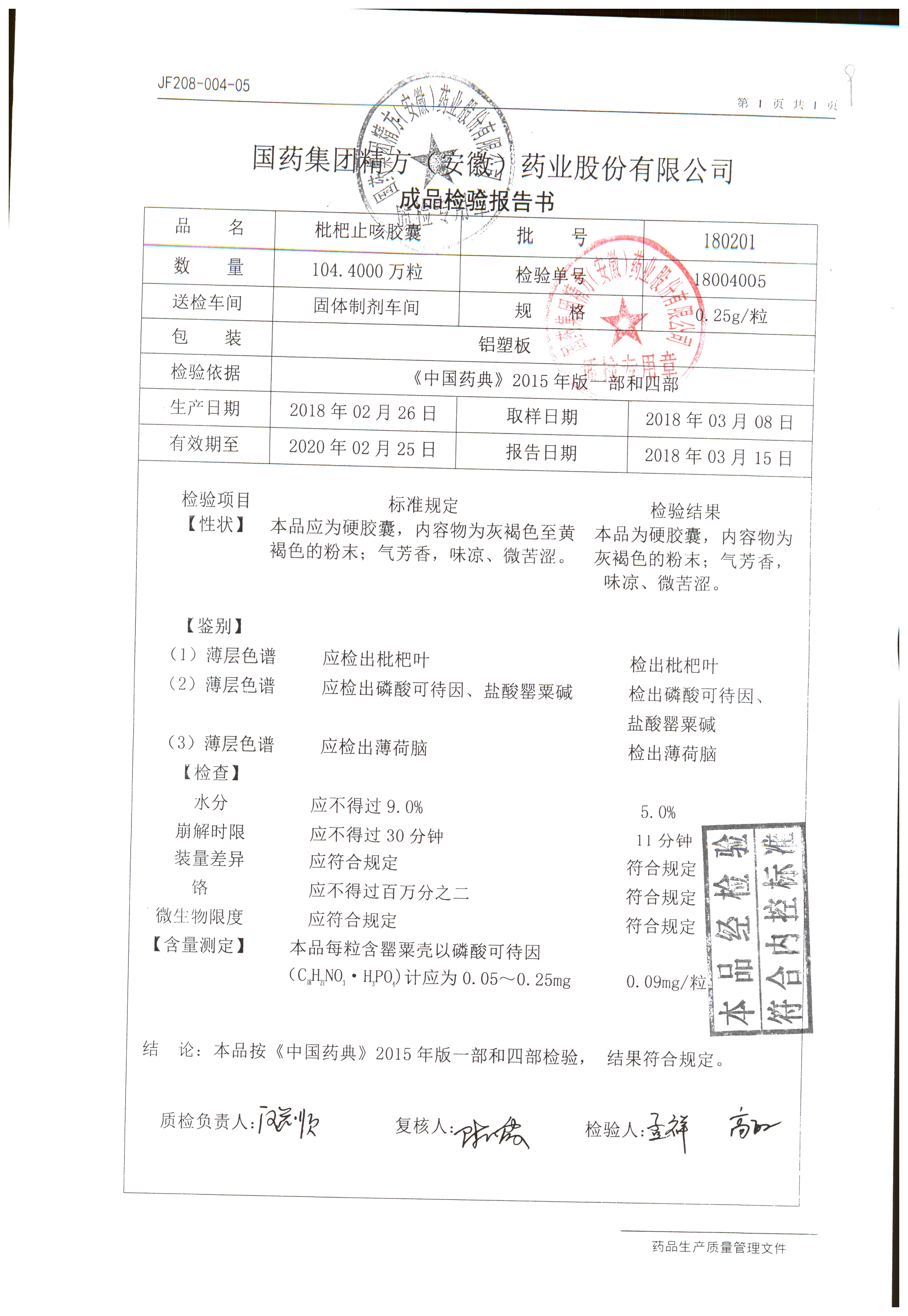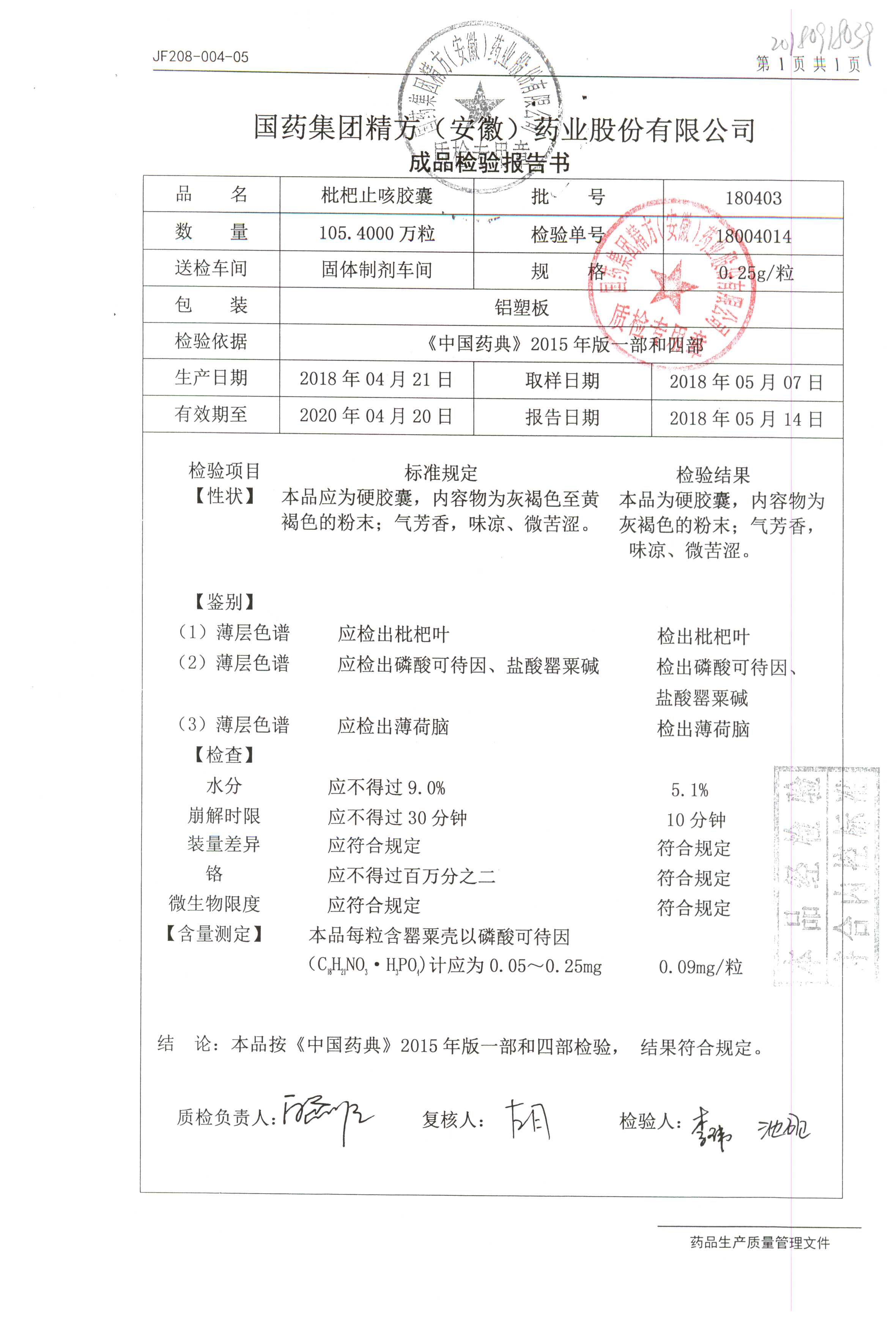 | 枇杷止咳膠囊 | 0.25g | 180404 | 查看詳情 |