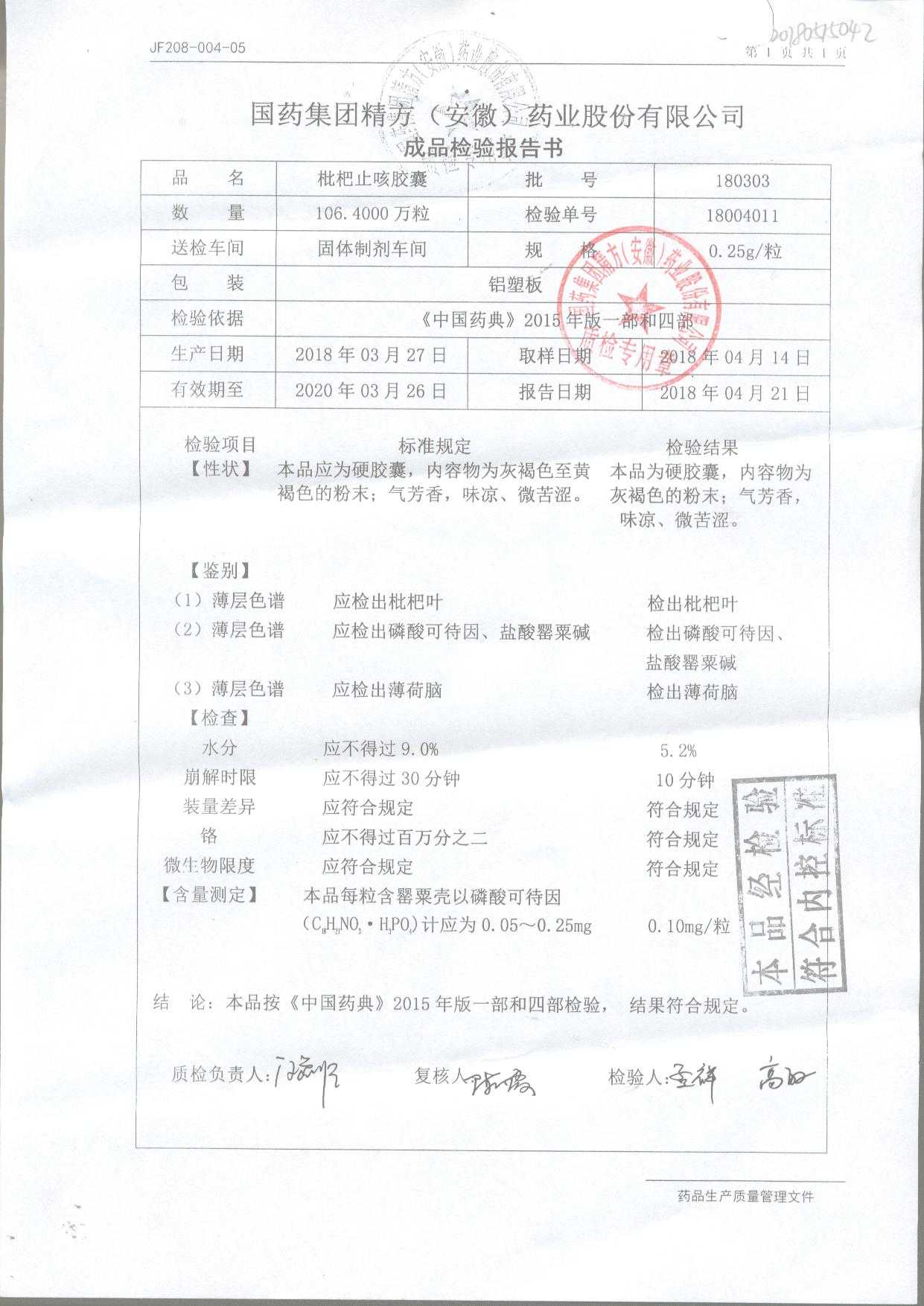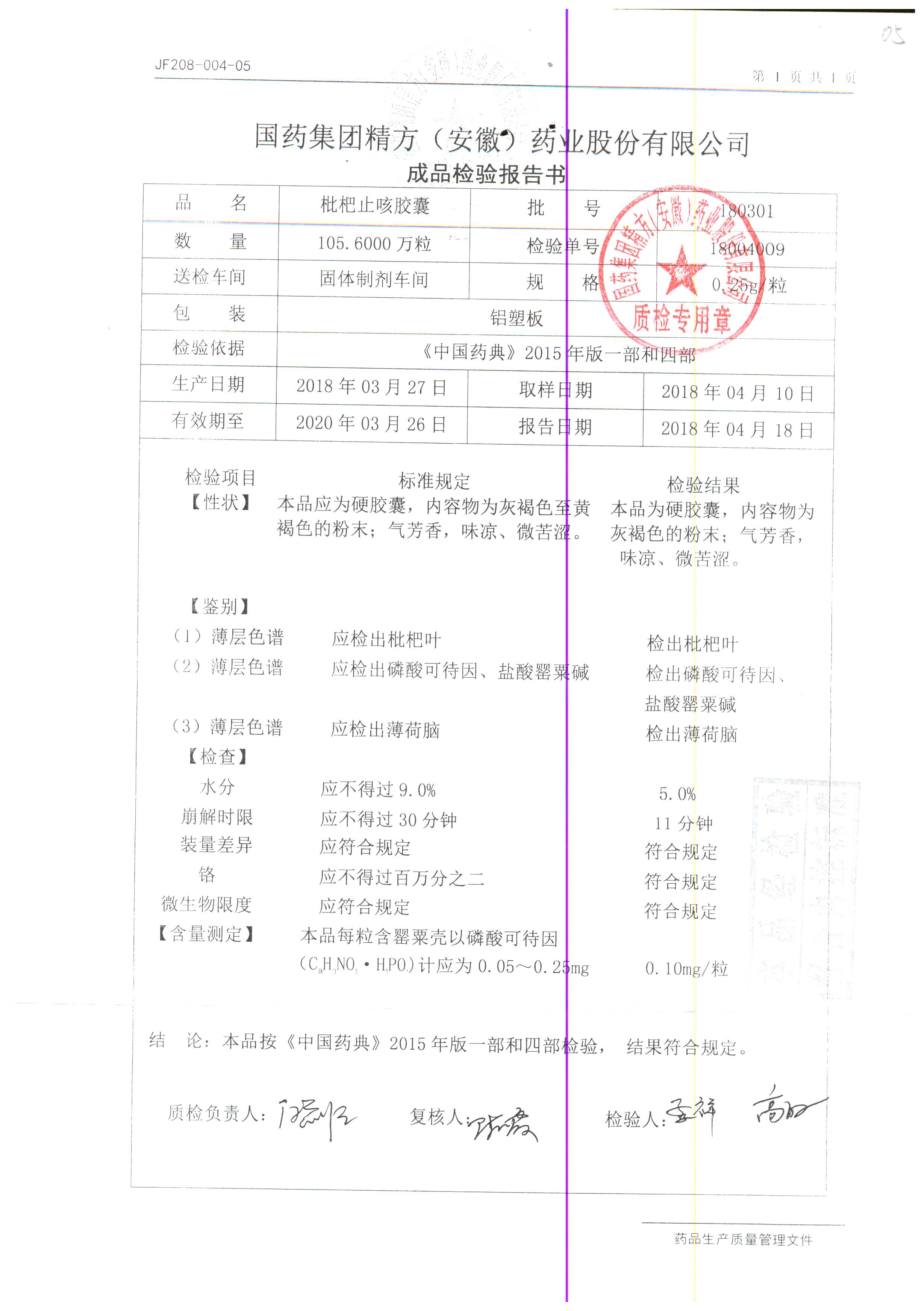 | 枇杷止咳膠囊 | 0.25g | 180403 | 查看詳情 |