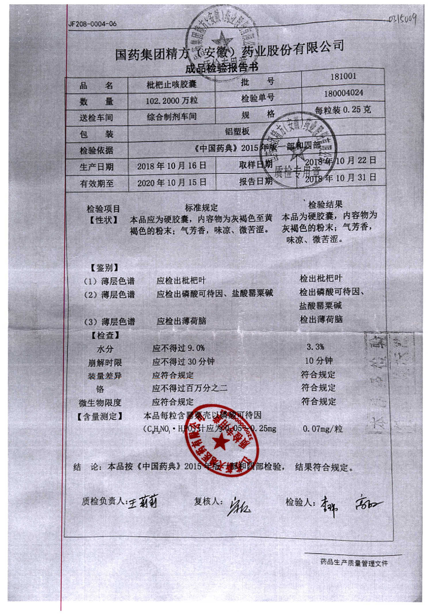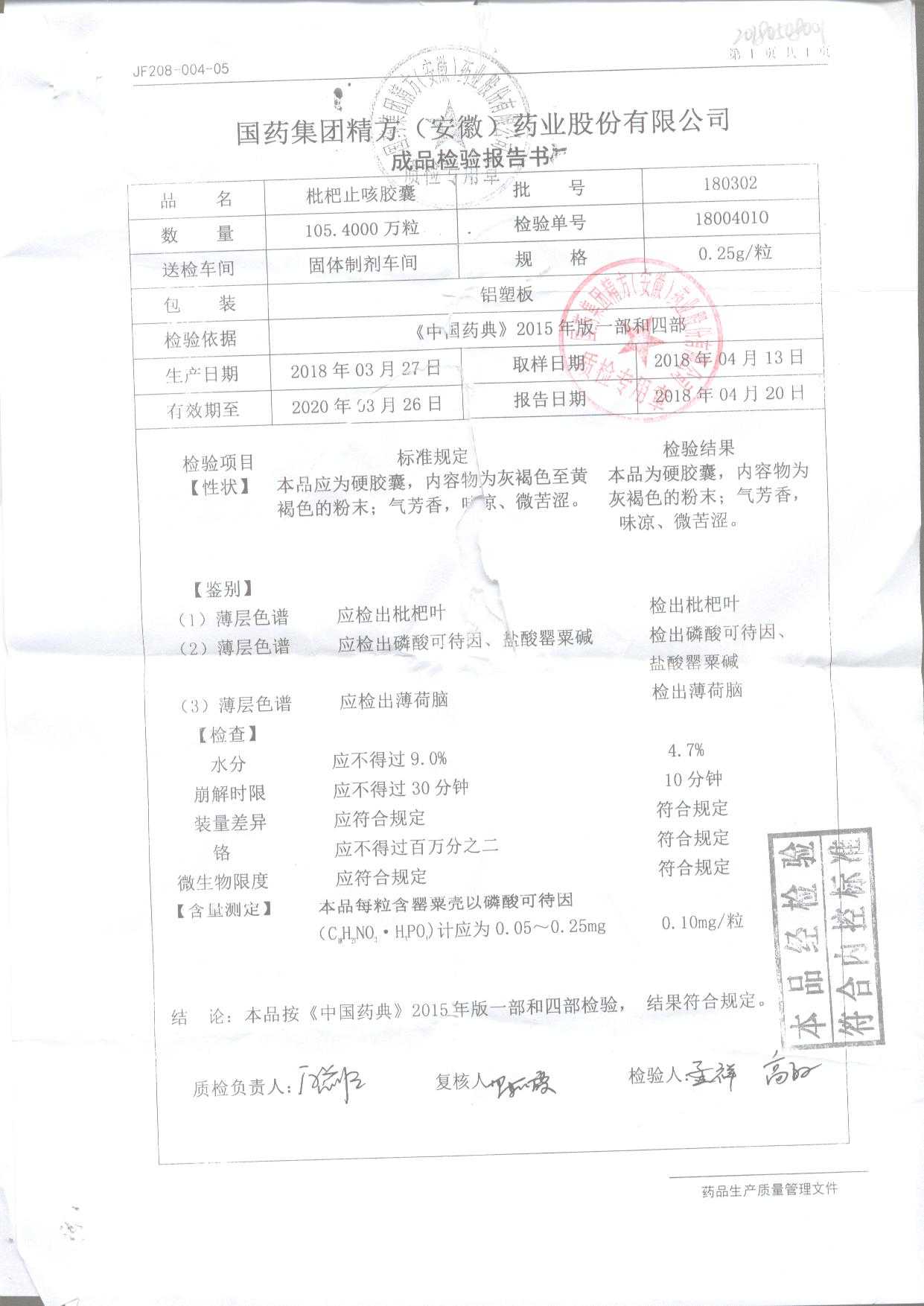 | 名稱 | 規(guī)格 | 批號(hào) | 藥檢報(bào)告 |