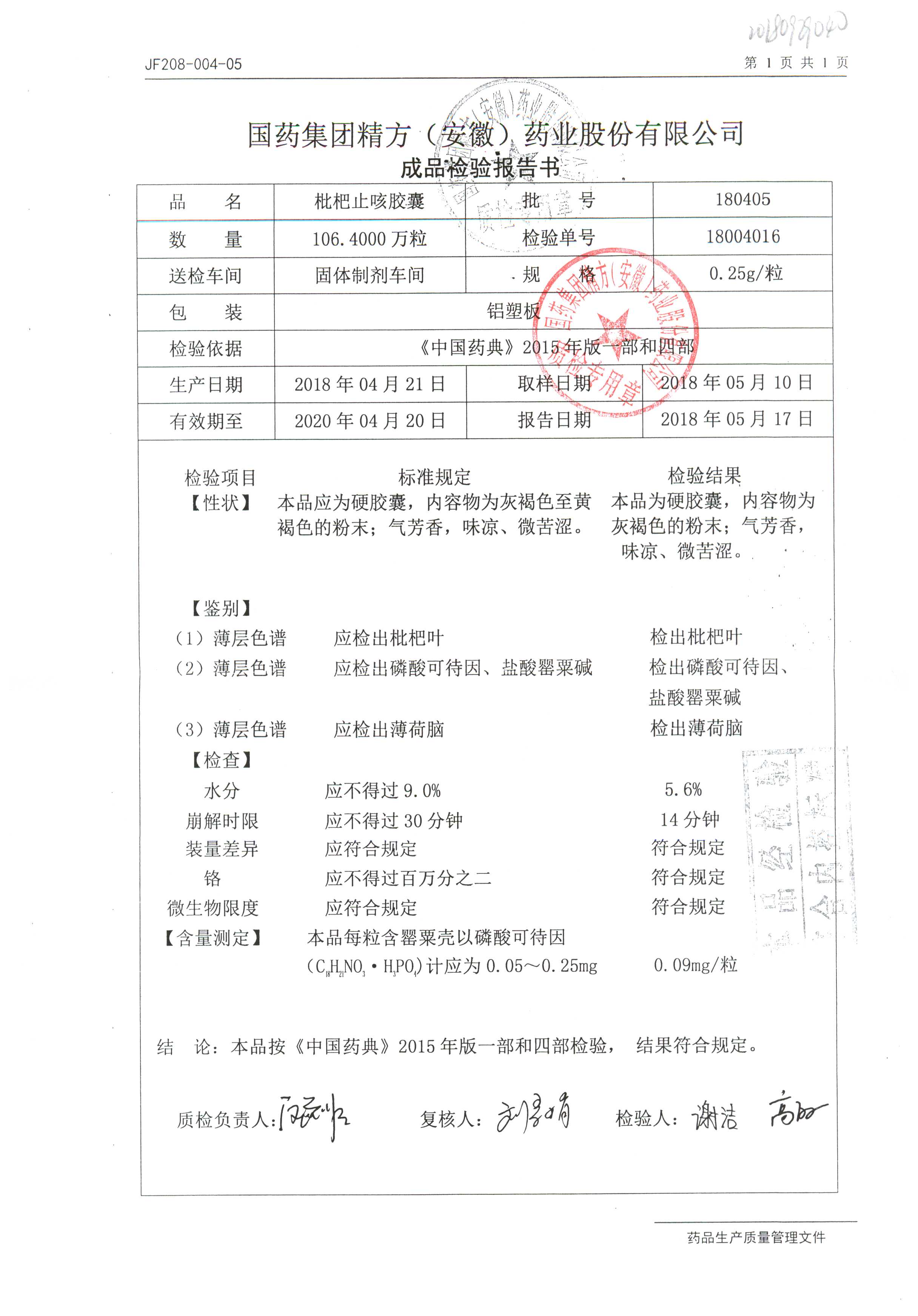 | 枇杷止咳膠囊 | 0.25g | 180405 | 查看詳情 |