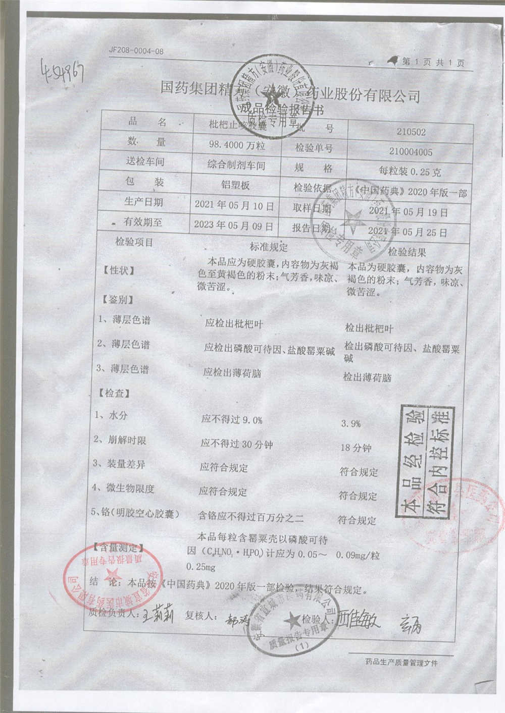 | 枇杷止咳膠囊 | 0.25g | 210504 | 查看詳情 |