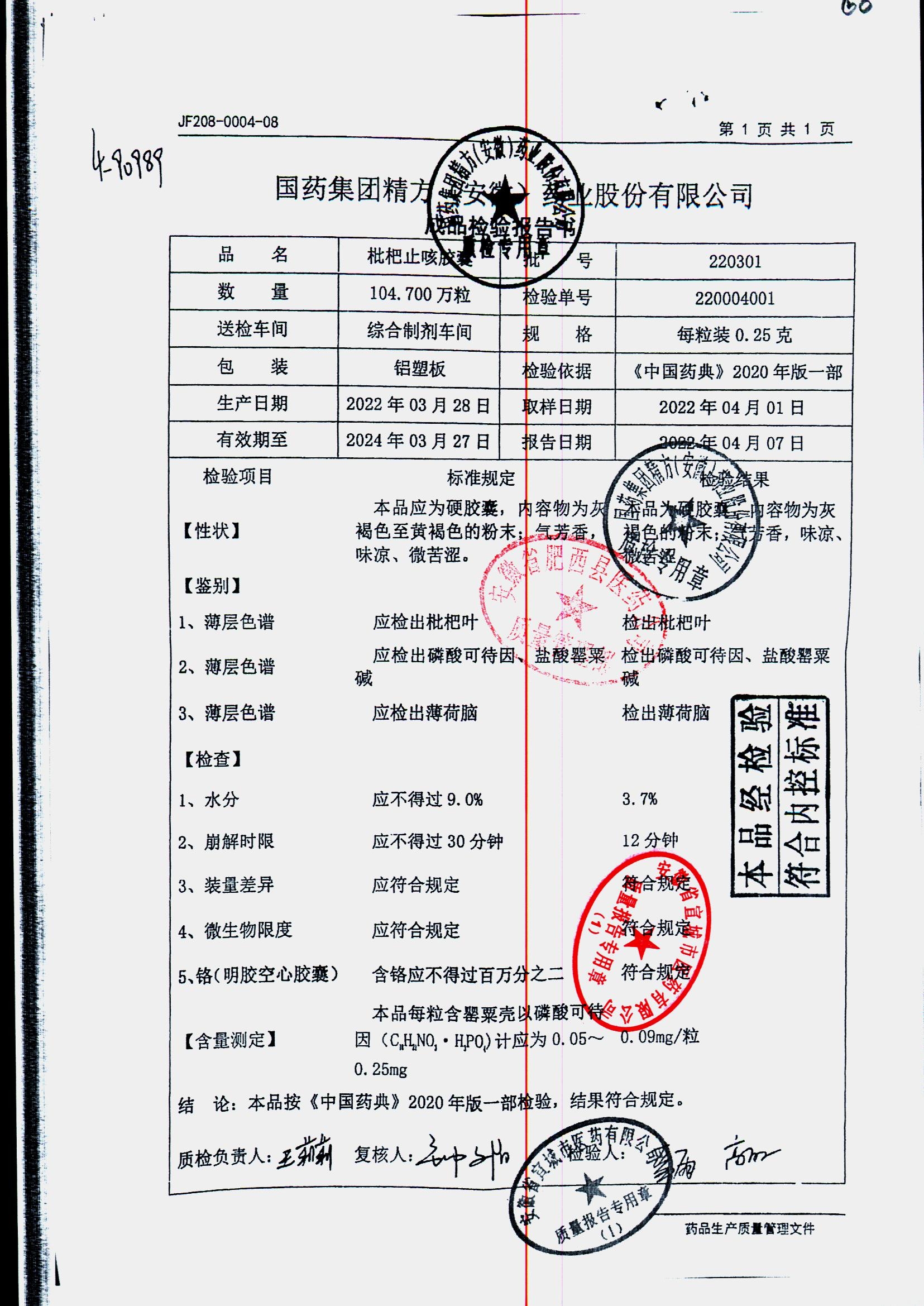 | 枇杷止咳膠囊 | 0.25g | 220301 | 查看詳情 |